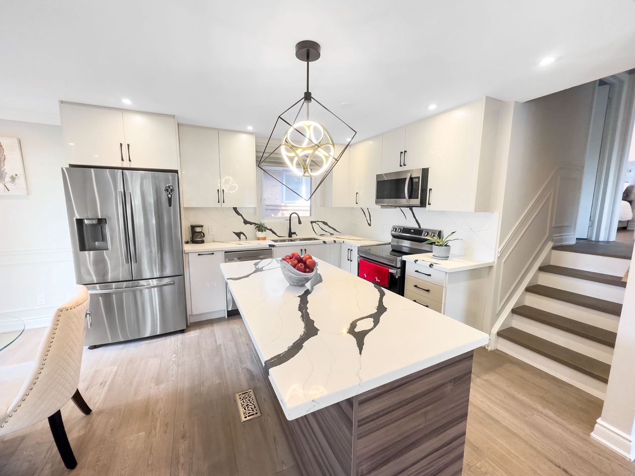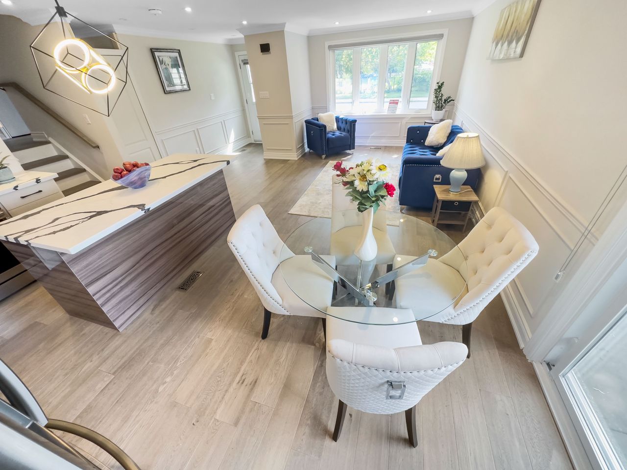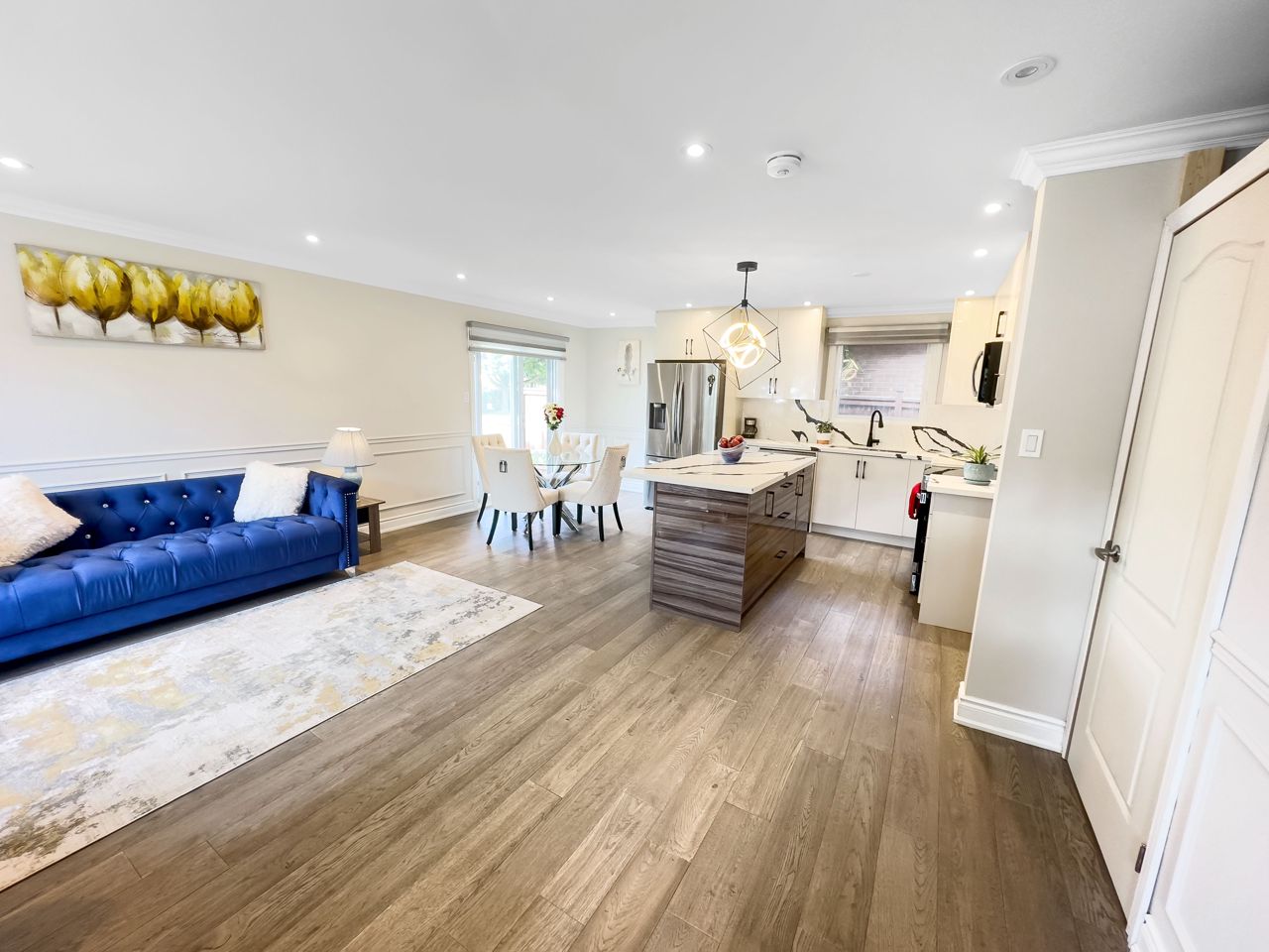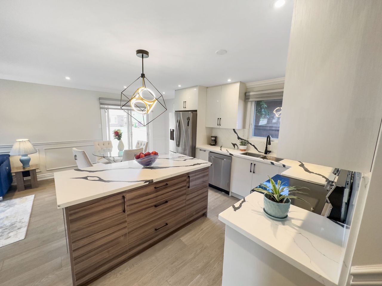 Completely renovated beautiful detached house on a huge rectangular lot in a lovely community of Kentley with 4 bedrooms (3+1)and 2 washrooms.Upgrades of more than 120K with brand new kitchen cabinets with quartz counter.New Fridge, Stove Range, built-in Microwave and Rangehood, and Dishwasher, all installed in 2022.