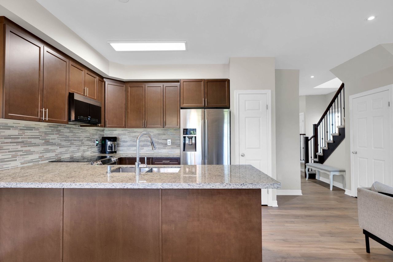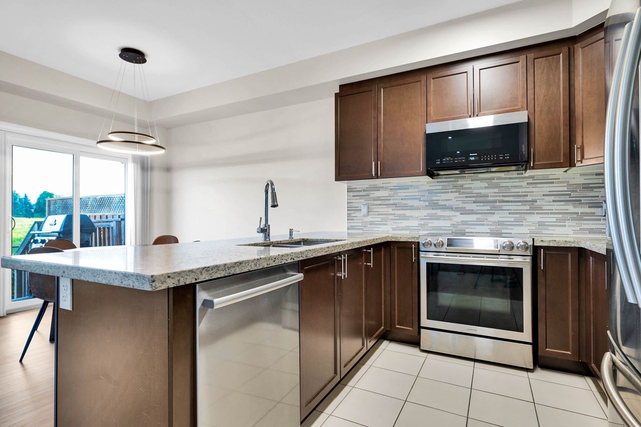Welcome To This Lovely And Bright End Unit Townhouse In A Family Friendly Neighbourhood. Three Bedrooms On The Second Floor With 9 Ft Ceilings, Large Windows And Open Concept On The Main Floor Make This Home Perfect For A Small Family. The Kitchen Is Equipped With Granite Counter Tops, Over The Range Microwave, Pull-Out Faucet And Double Sink. Gas Fireplace, Direct Access To The Garage From The Foyer And Clear View From The Backyard.