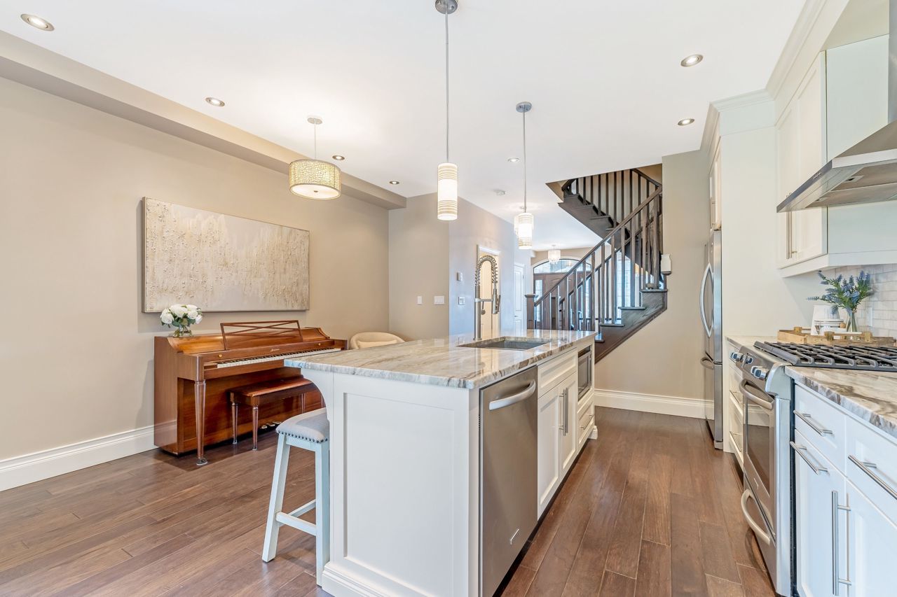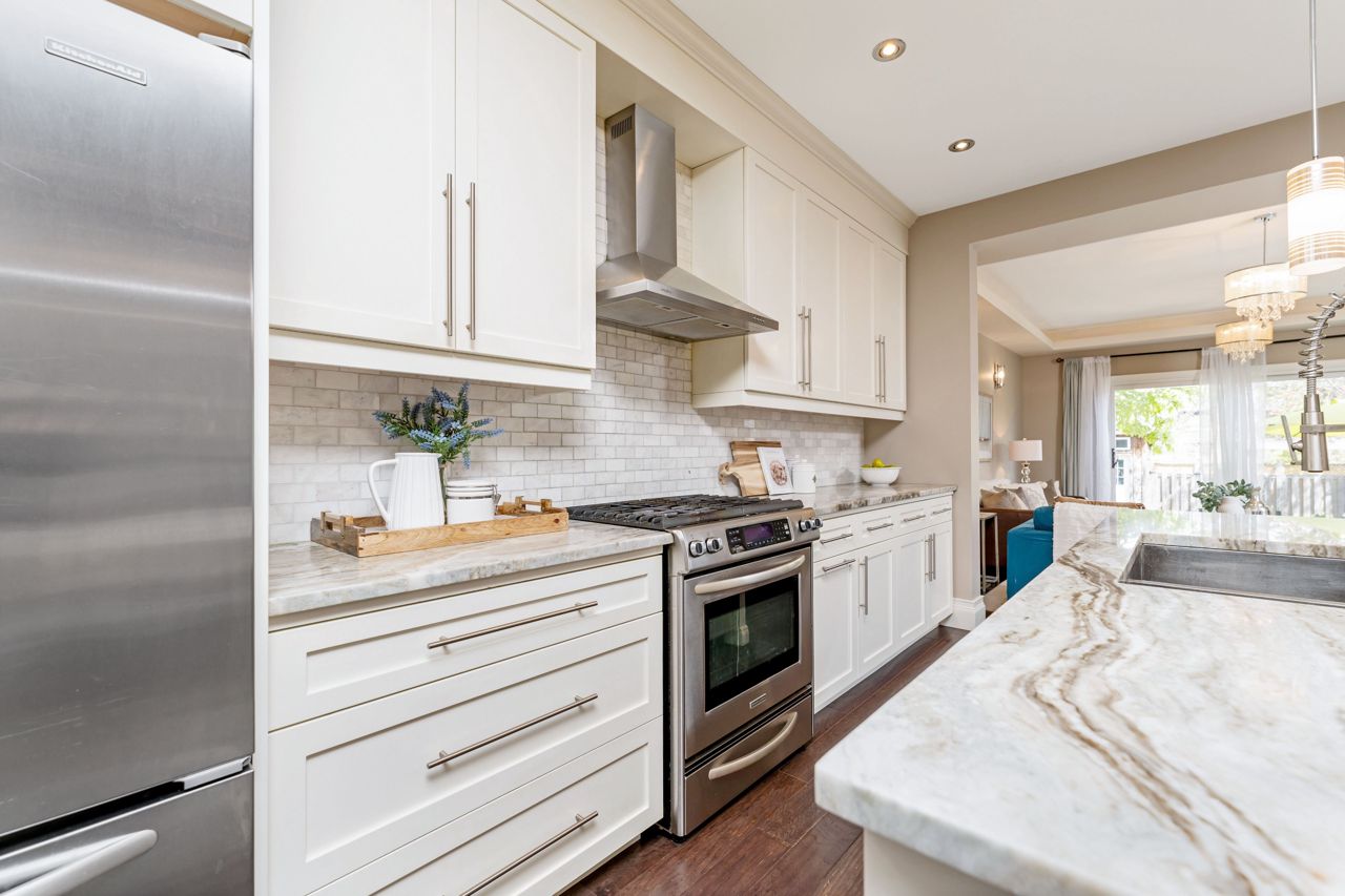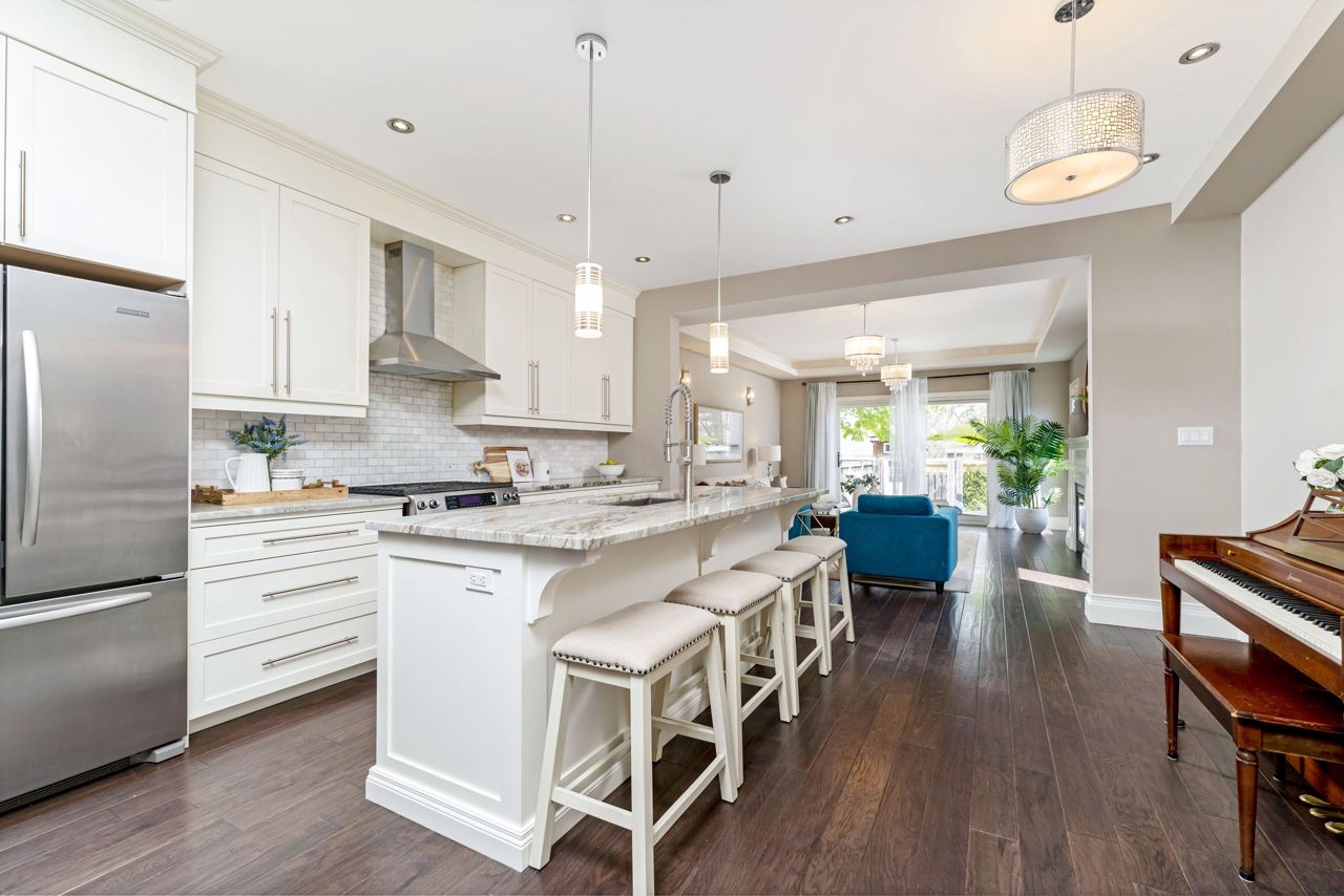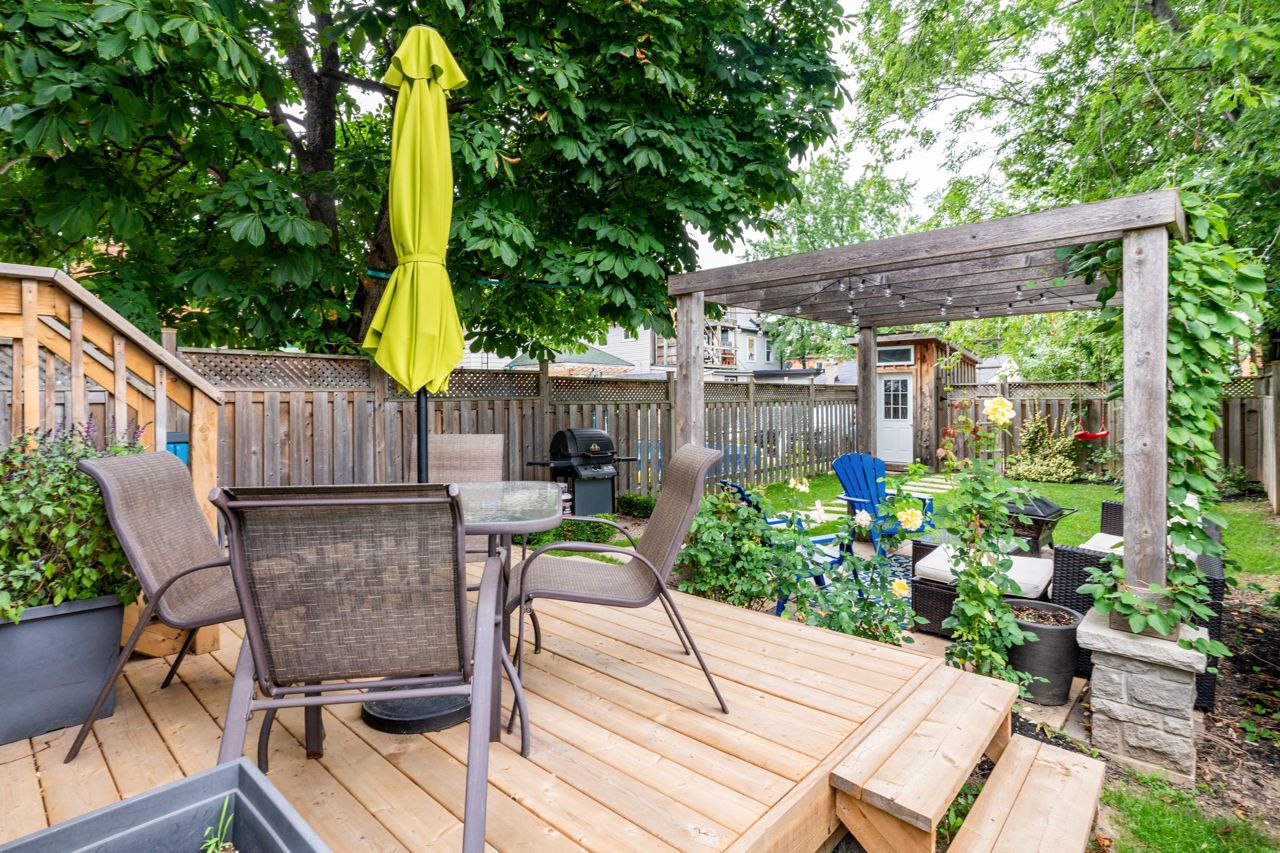 Custom-built home in Hamilton's coveted Locke Street area.Steps to schools, restaurants, parks and trails.Open concept design is bright and spacious with engineered hardwood, the formal dining room leads to the spectacular eat-in kitchen with custom Barzotti maple cabinetry, natural quartzite countertops, and a large island perfect for entertaining guests. Large family room features a cozy gas fireplace and a tray rope-lit ceiling with walk-out to deck and large backyard, perfect for hosting summer barbecues or family gatherings. Just beyond the fence is an additional double driveway Second floor features two large bedrooms and two full bathrooms, breathtaking master suite with a view of the city, walk-in closet, ensuite with an oversized glass shower. Third floor offers two bedrooms, 2pc bathroom, walkout to the amazing rooftop deck.The lower level has a recreation room, office space, plenty of storage, as well as a convenient 2pc bathroom. With no detail overlooked, this exceptional home is the perfect place to entertain family and friends, or simply relax in style.