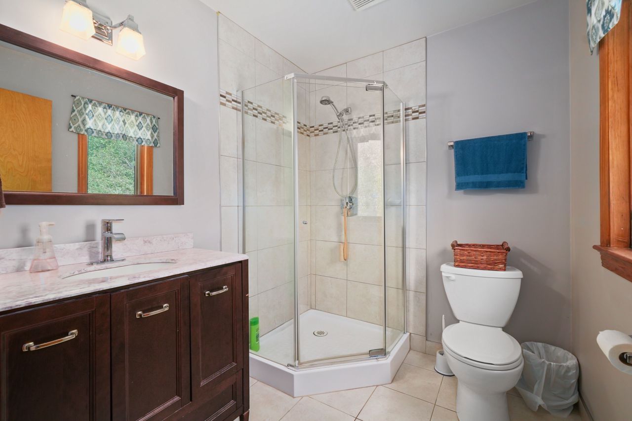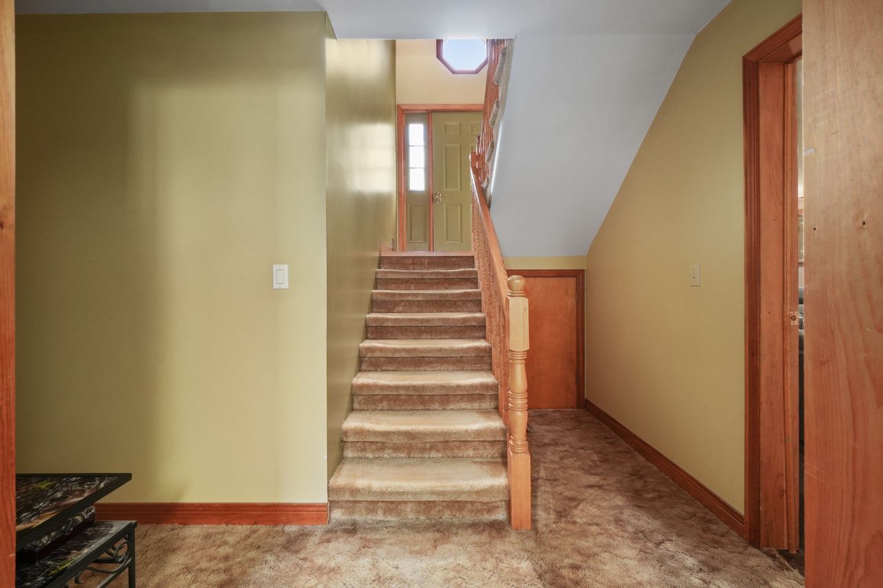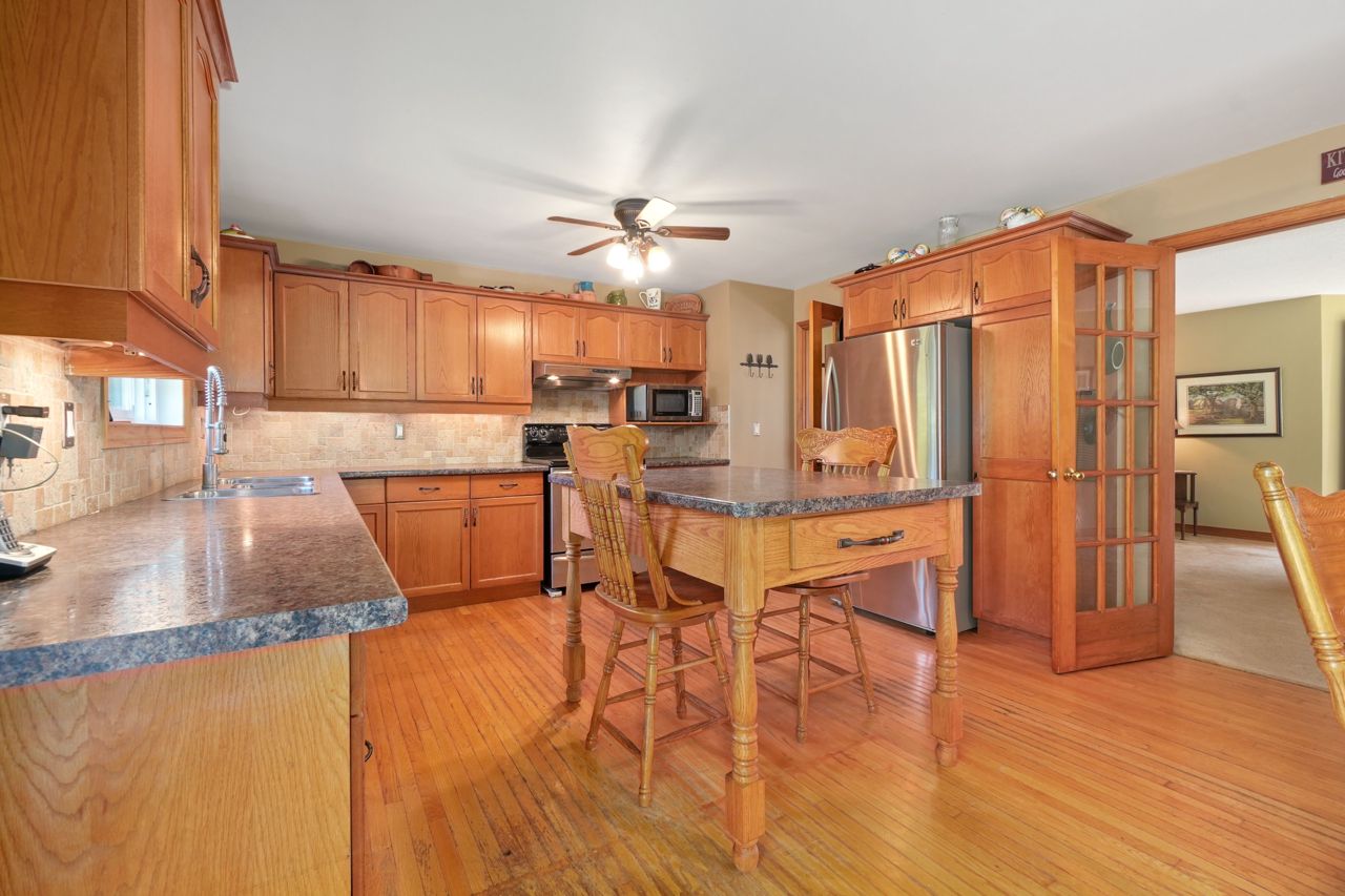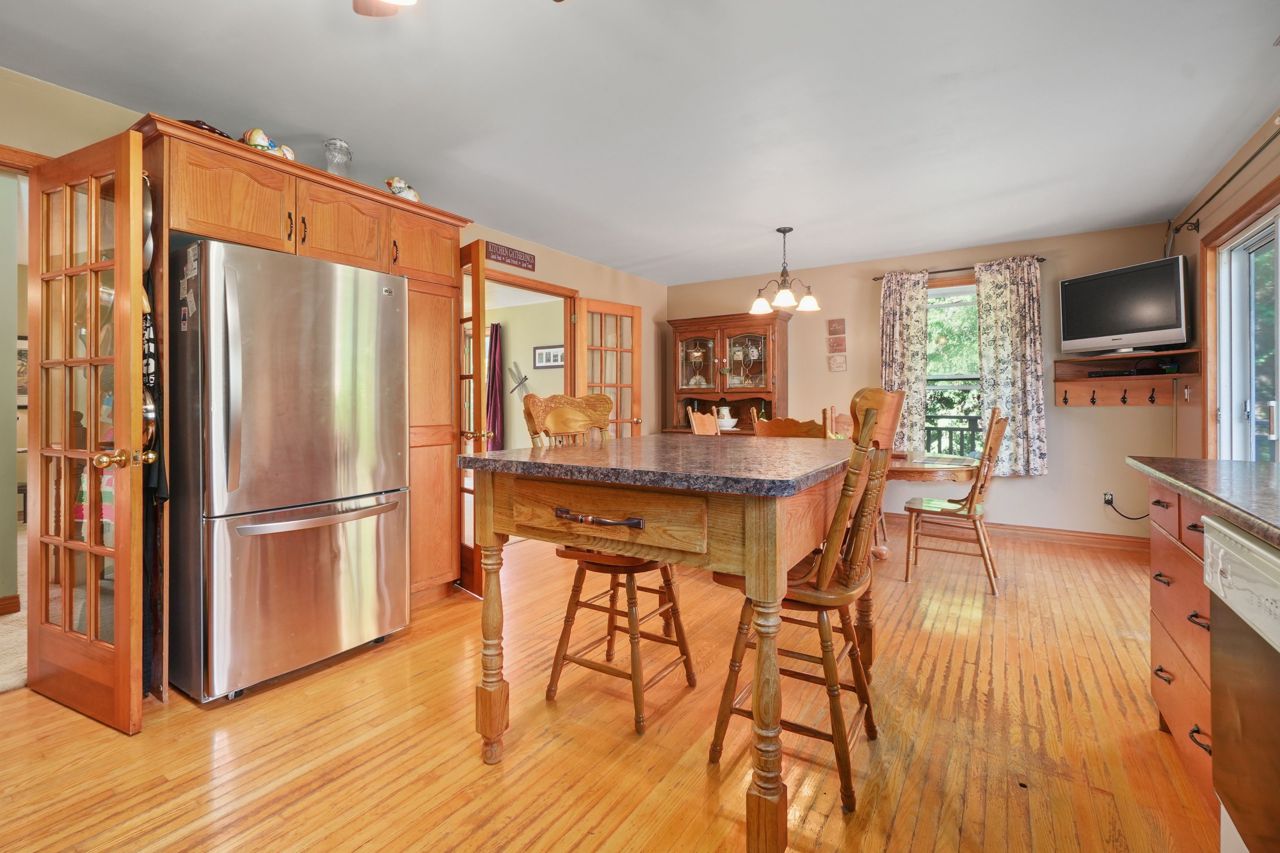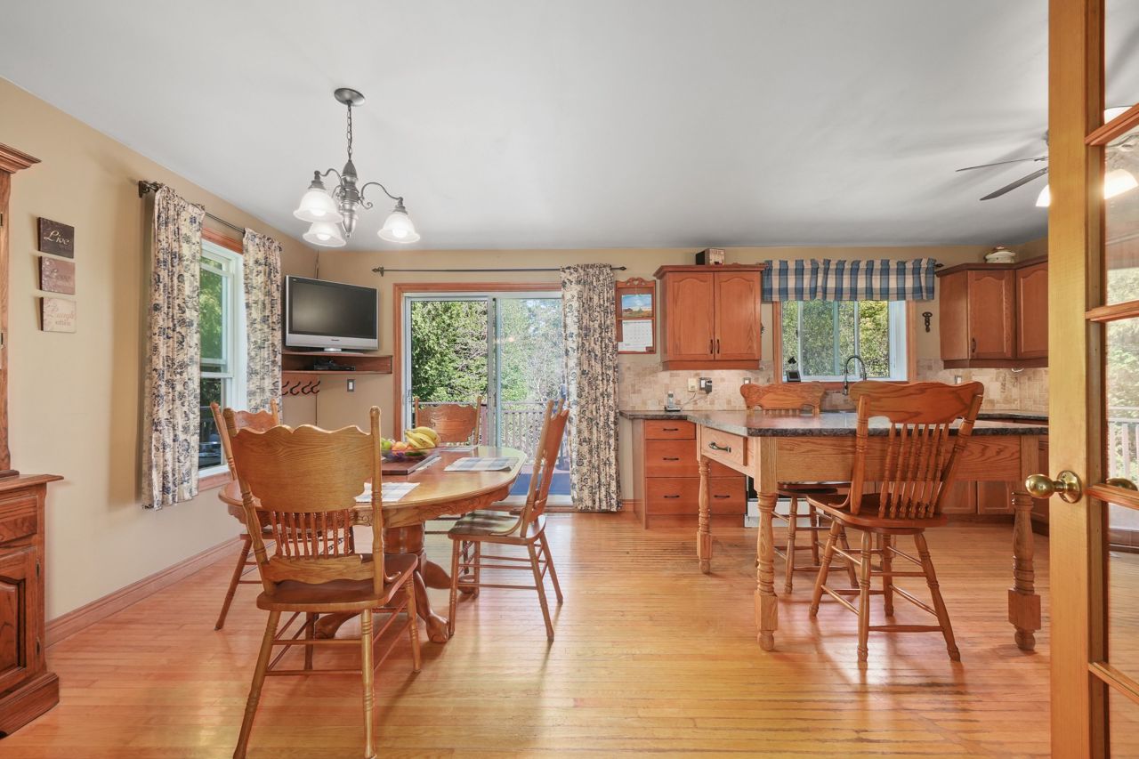 consists of a large eat-in kitchen with a walk out to the deck overlooking the private back yard, living room, 3