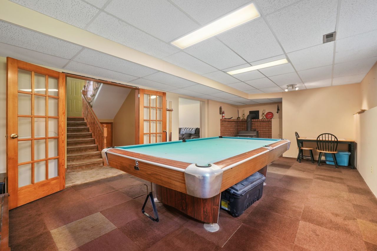 bedroom, 2 baths (1x4pc, 1x3pc) and entrance to the large attached garage (23'10" x 28'8"). The lower level is perfect for entertaining with a family room, rec room with pool table, 4th bedroom as well as laundry room with a 3pc bath. Enjoy the privacy that living in the country has to offer.***Garage is heated with an electric furnace & also has running water***