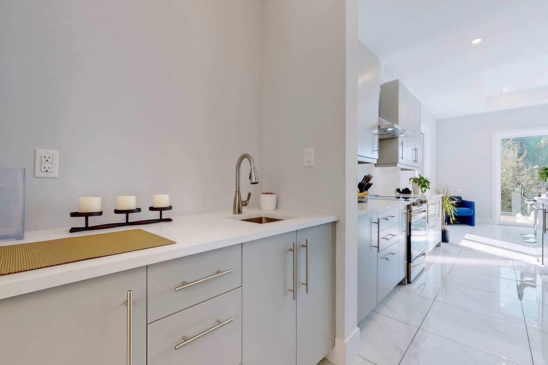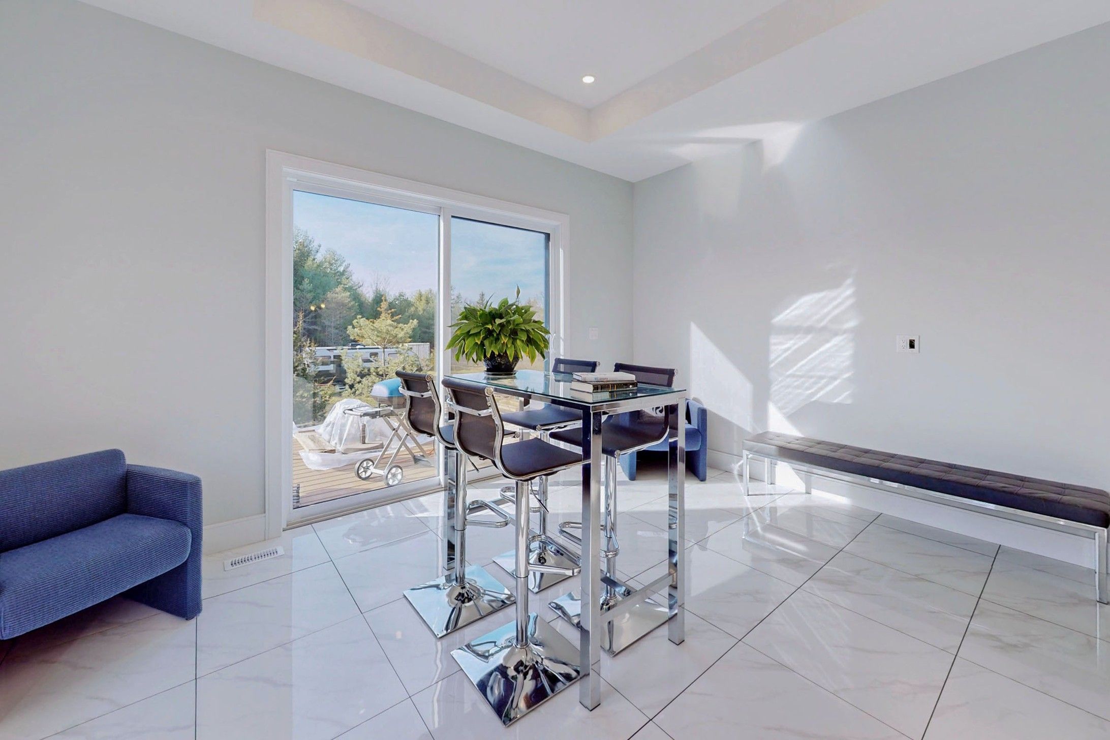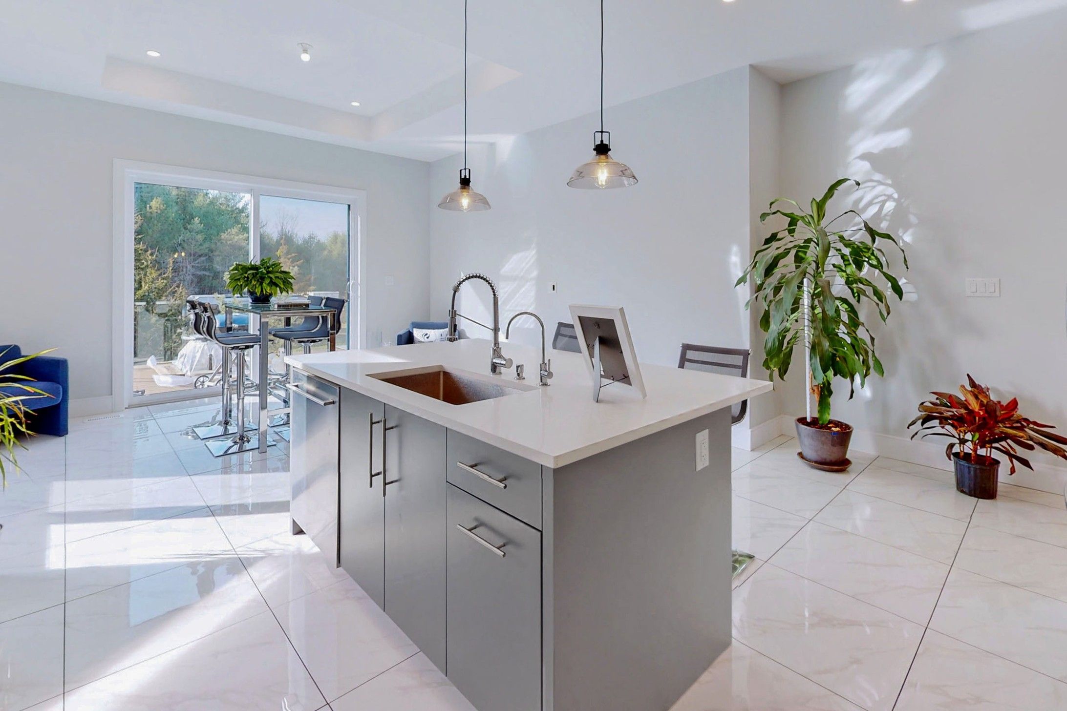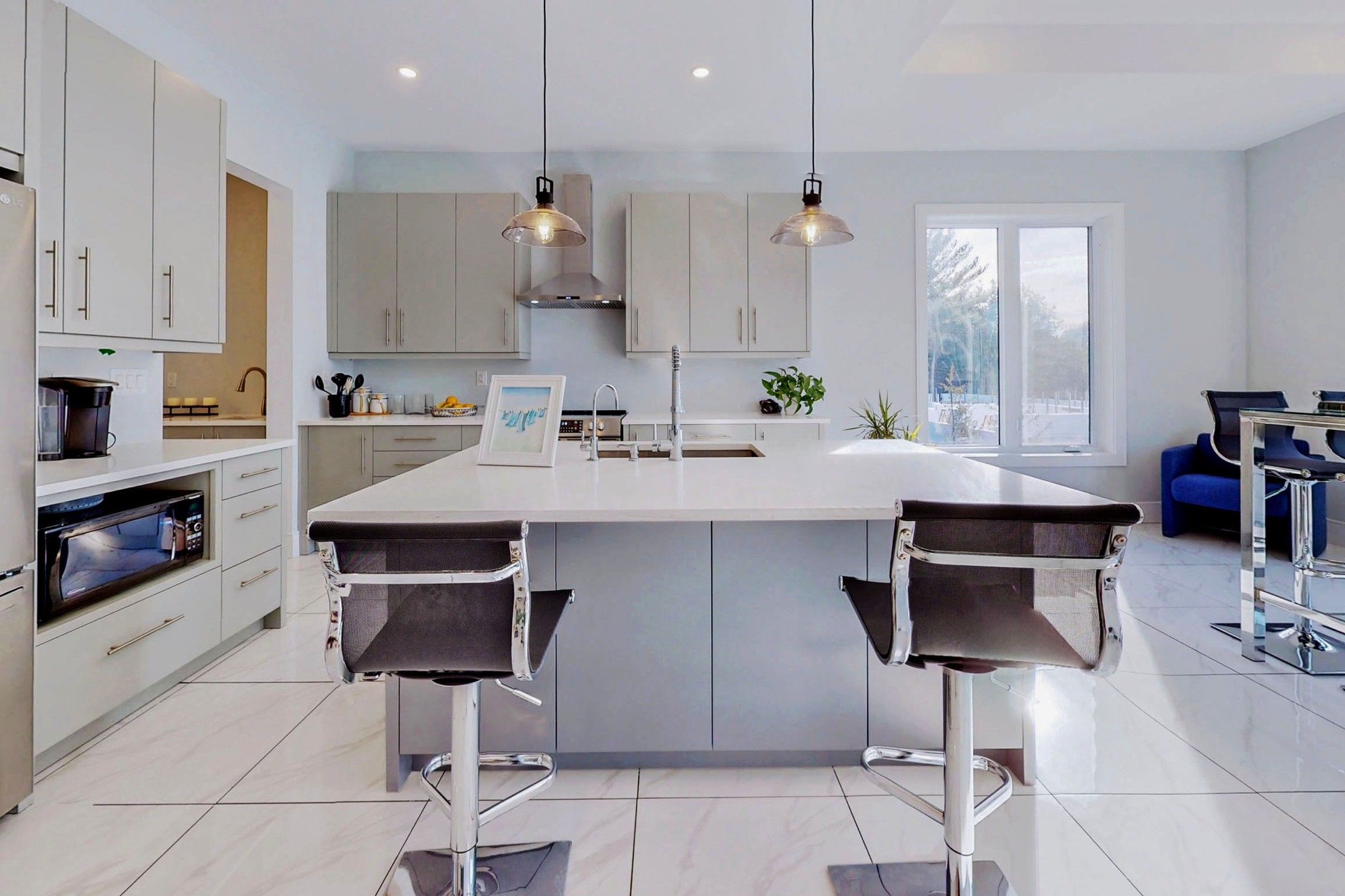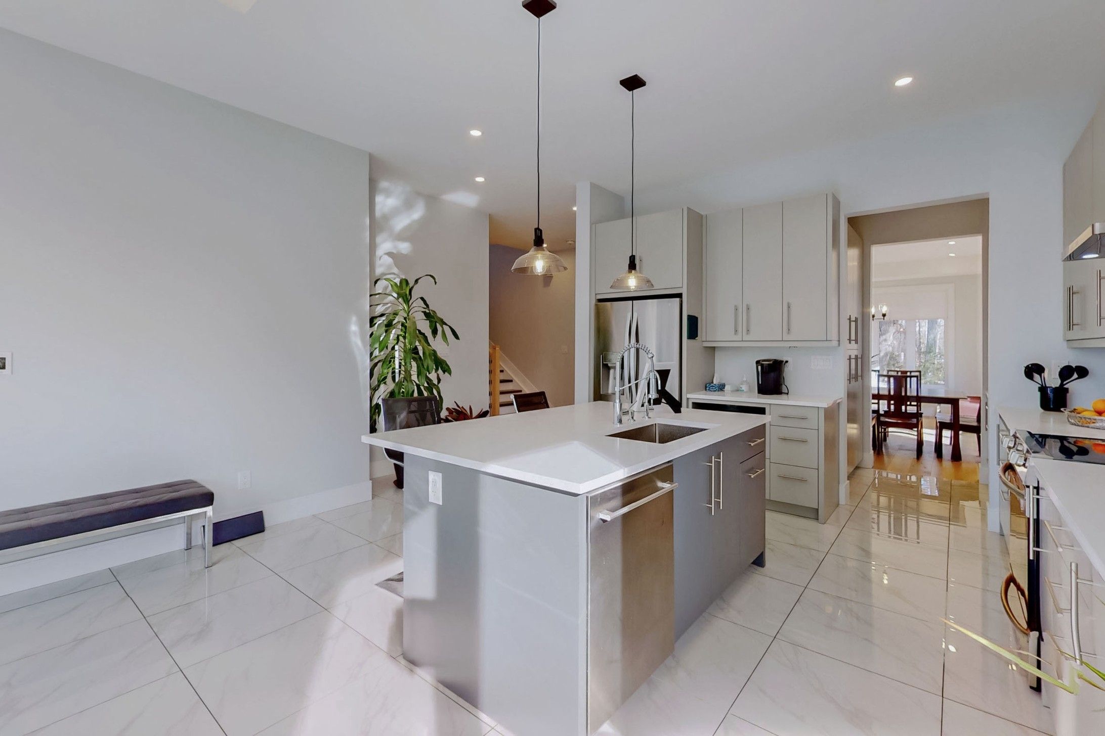 Quartz Counter Pot Lights Breakfast Area