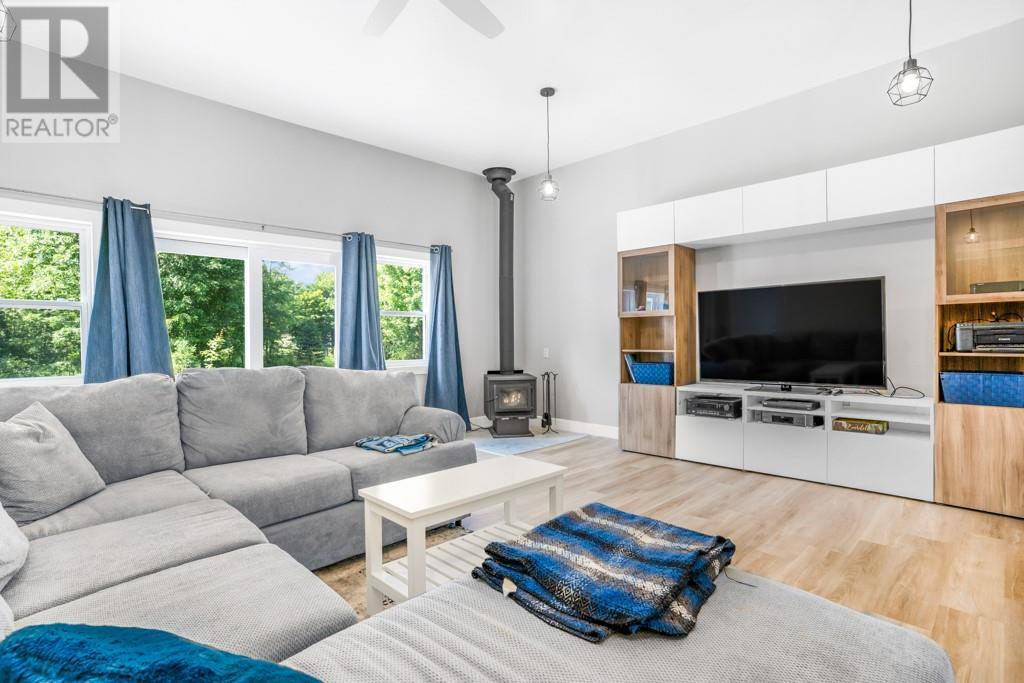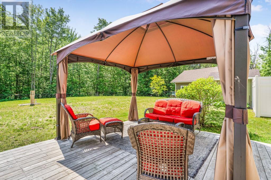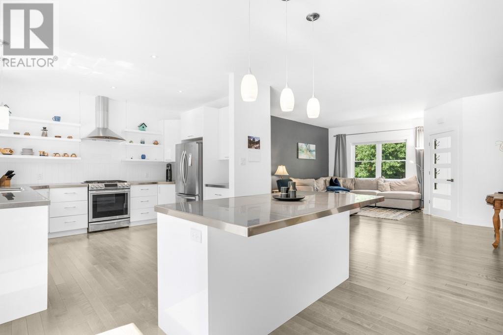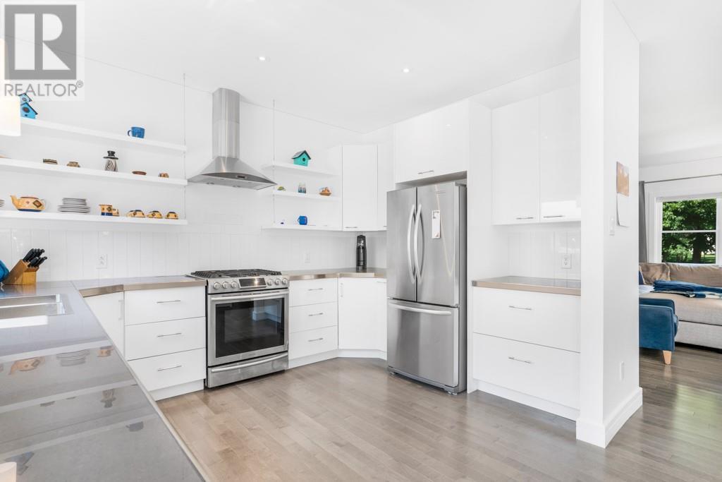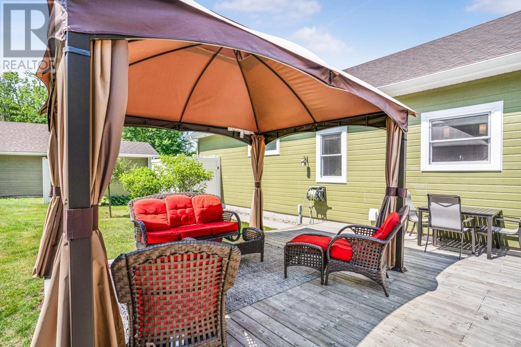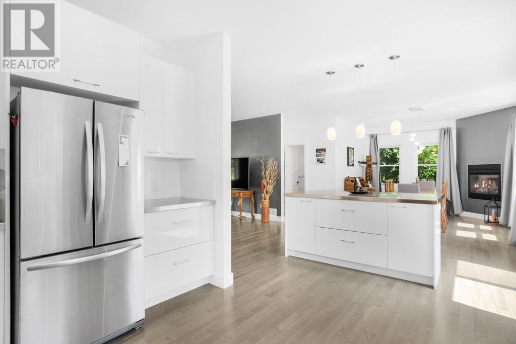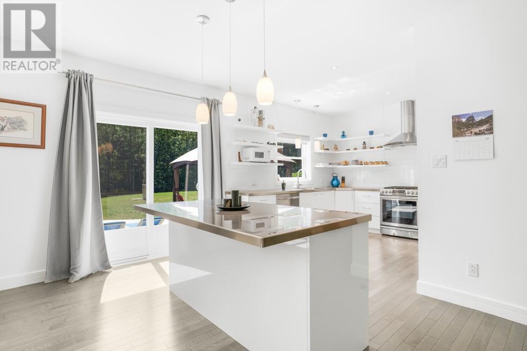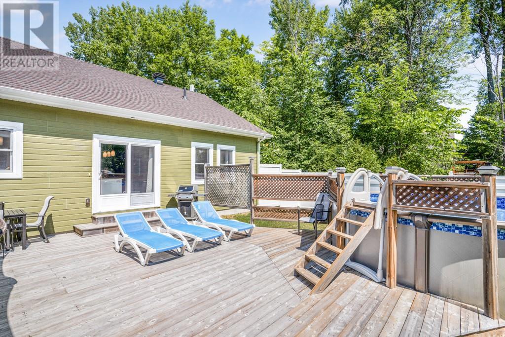 Nestled on a private treed lot is this stunning executive, low maintenance property. A gourmet kitchen with plenty of storage, stainless counters, elegant open shelving, center island with breakfast counter and stainless appliances included. An adjacent dining area with fireplace and cozy living room. Private master suite with walk in closet and 4 piece ensuite with soaker tub and separate shower. Family room with air tight wood stove. A second bedroom, 2nd bath and a laundry room with plenty of storage complete the living space. Patio doors from the kitchen give access to a huge back deck, gazebo and above ground heated pool . A detached 24' x 30' detached garage with 100 amp service. Efficient natural gas heat, central air, tankless hot water. Basement is low used for utility. October possession preferred. Virtual walk through in the multimedia section. (id:22211)