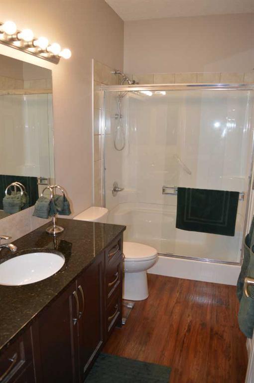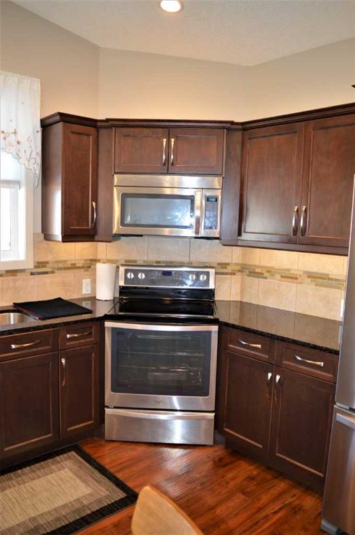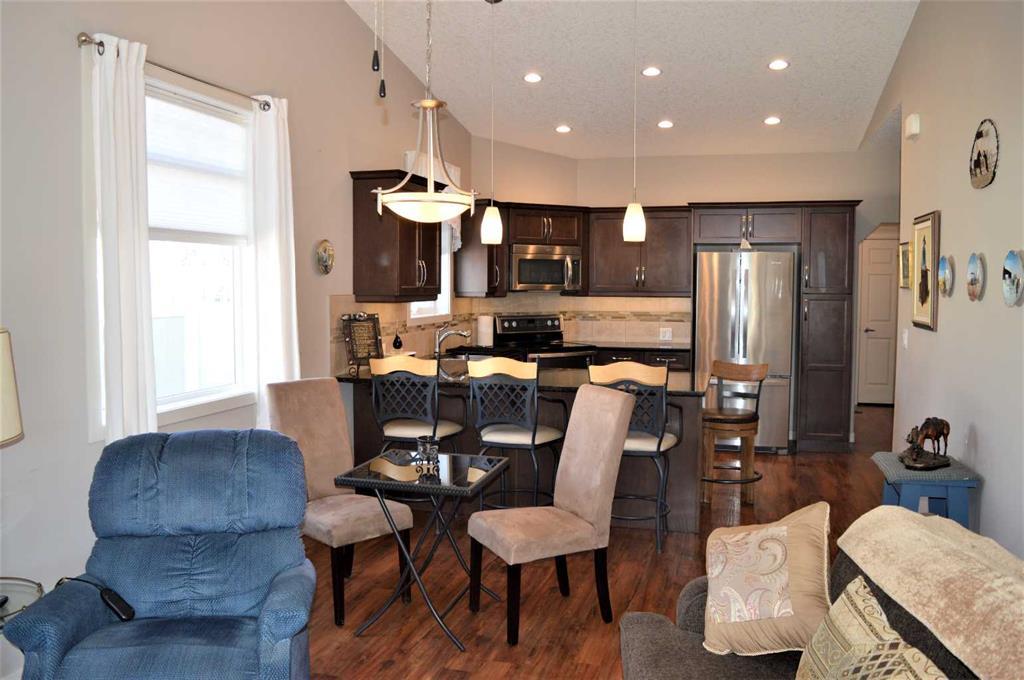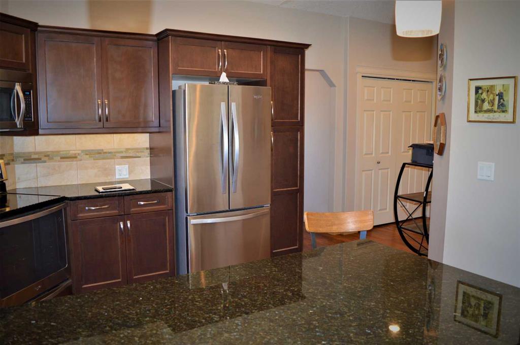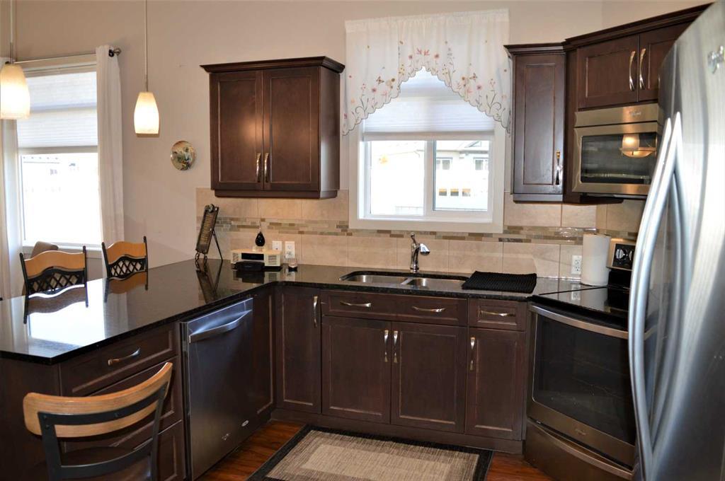 End unit with a VIEW!!! Adult only condo complex, this west end unit is immaculate and "move in ready". Features one bedroom with 3 piece "Jack & Jill" ensuite bathroom, open concept living room, dining room and kitchen. Dark cabinets are accented by rich black granite counters and stainless steel appliances. There is room for a dining table, in addition to the breakfast bar. Flex room just inside the back door....craft room, storage...you decide. Back door leads to patio area for your BBQ and relaxing. Oversize heated single attached garage has room for storing the extras, and no stairs to climb to get into your home. Convenience of in suite laundry. And did I mention the view from your kitchen or dining window?? Don't miss out on this immaculate unit....book your private viewing today!! (id:22211)