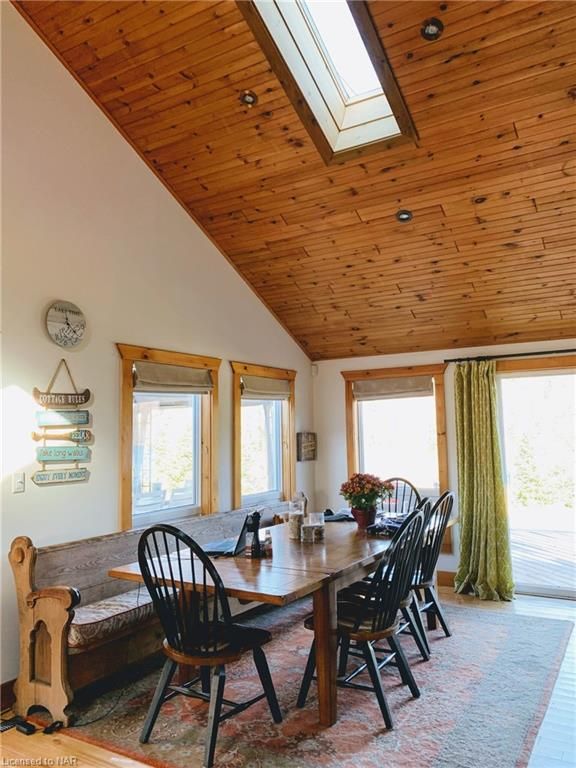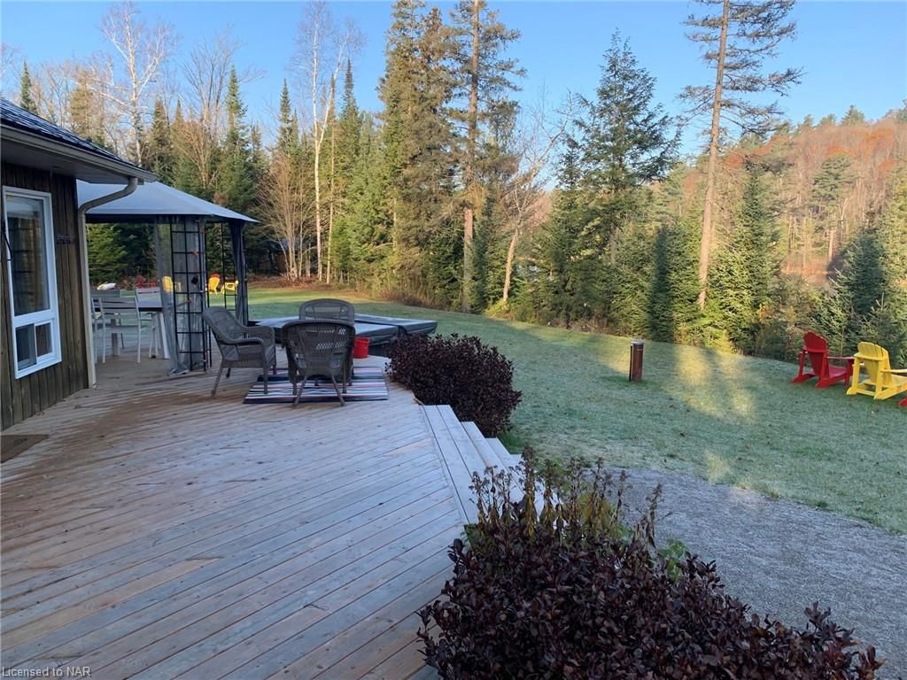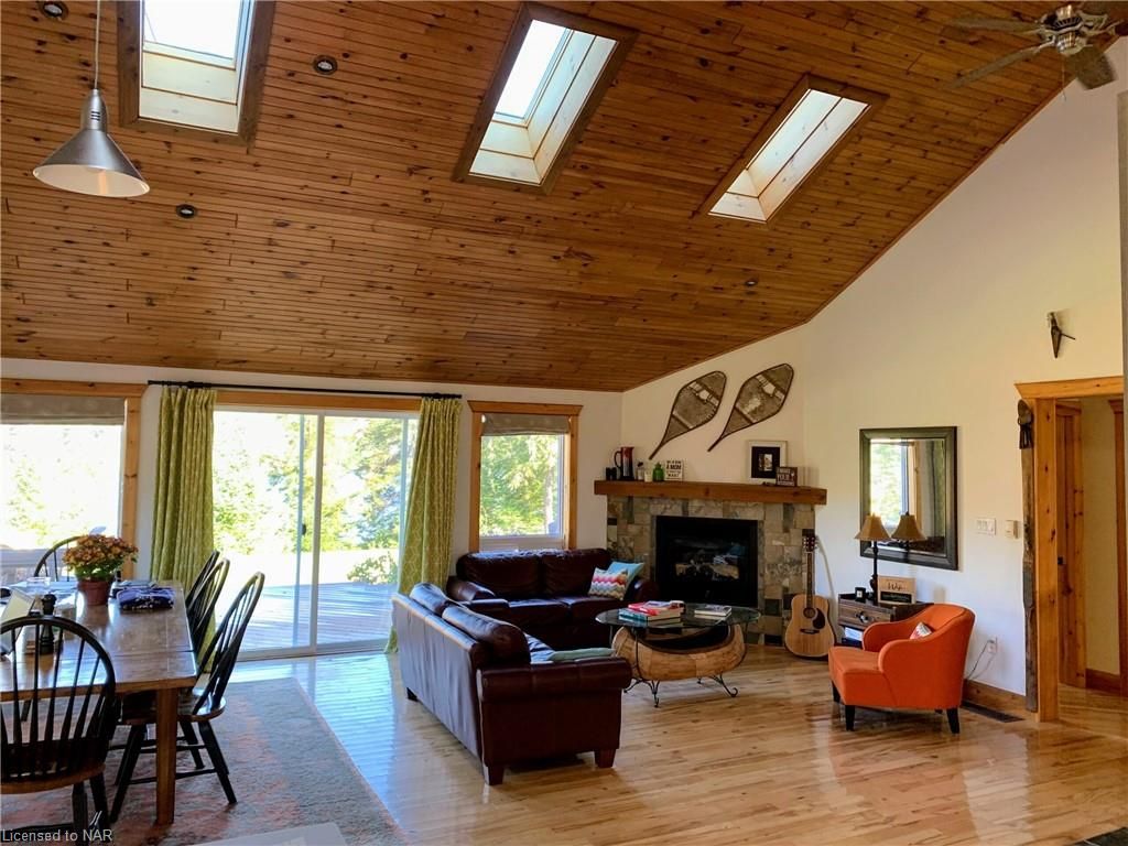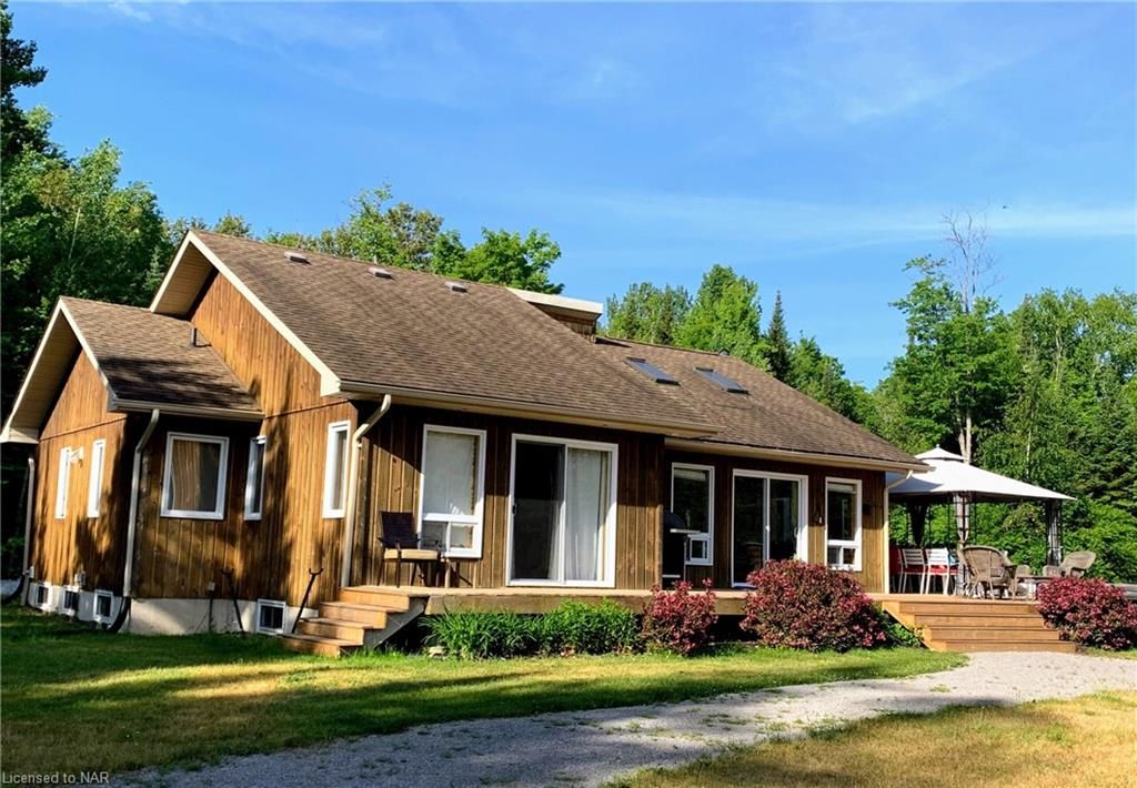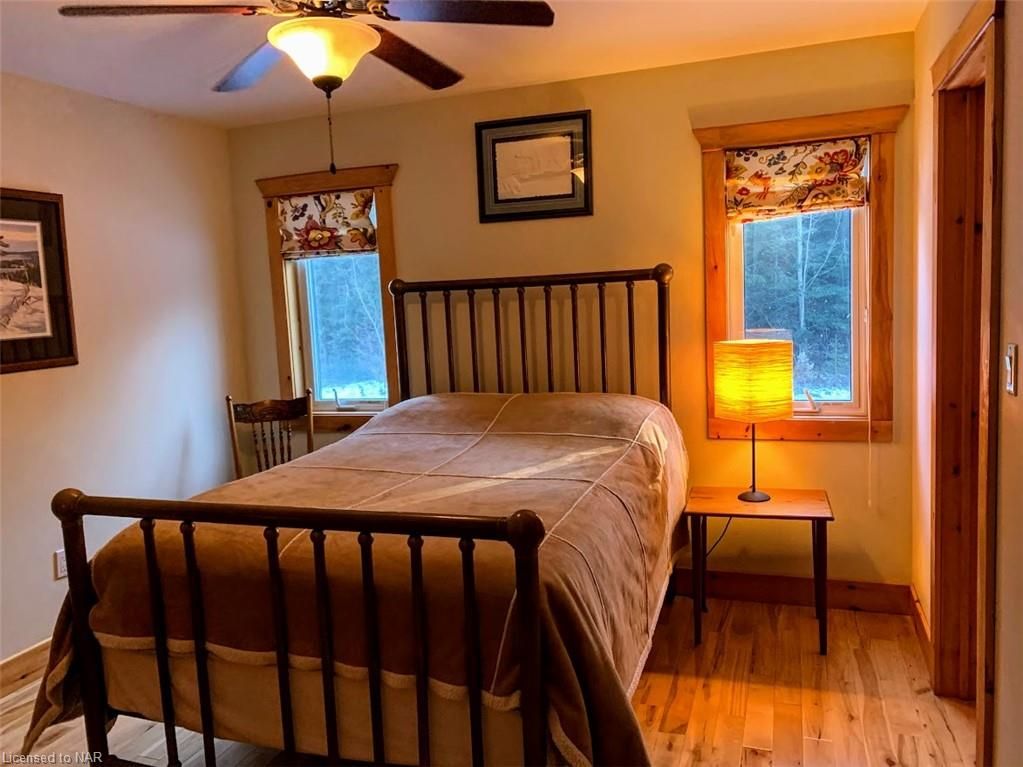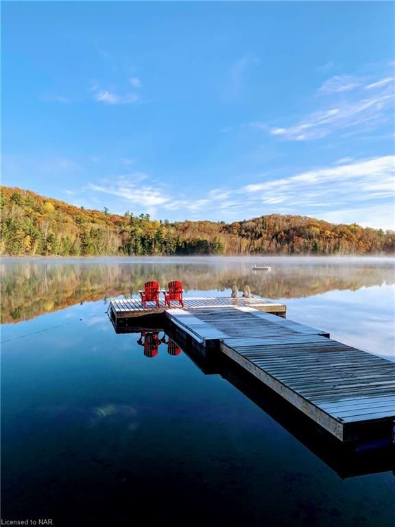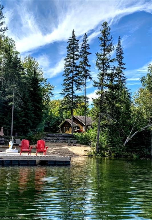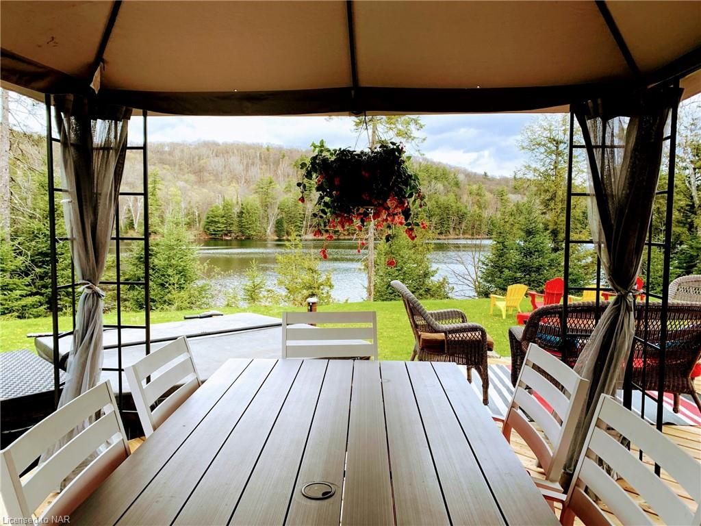 SECLUDED, PEACEFUL, 4 SEASON, 5 BEDROOM (PLUS BUNKIE), 3 WASHROOM HIDEAWAY SITUATED ON LOWER CARDIFF LAKE IN THE HALIBURTON HIGHLANDS. SLEEPS 12. AMPLE PRIVACY AND NORTH WEST EXPOSURE FOR SUNSETS. PERFECT LOCATION FOR FAMILIES WITH A SANDY BEACH AND SHALLOW LAKE. CARDIFF WOODS IS NEWLY RENOVATED, FEATURING MODERN FINISHES, HIGH END STAINLESS STEEEL APPLIANCES INCLUDING GAS RANGE AND STACKABLE WASHER AND DRYER. INCLUDES STARLINK INTERNET, SATELLITE TV, AUTOMATIC BACK-UP GENRATOR, A/C, DISHWASHER, HOT TUB & MORE. THE PROPERTY BOASTS 500+ FEET OF WATERFRONT AND OVER 6 ACRES OF LAND. SERVICED BY A PLOWED 4 SEADON ROAD & BACKS ON TO OFSC & HATVA SNOWMOBILE & ATV TRAILS JUST OUTSIDE THE DRIVEWAY. ONLY 1 IMMEDIATE NEIGHBOUR WHO LIVES OVERSEAS. LOCATED ONLY 5 MINUTES FROM ALL AMENITIES IN WILBERFORCE & 30 MINUTES FROM BANCROFT & HALIBURTON.**INTERBOARD LISTING: NIAGARA REAL ESTATE ASSOCIATION**