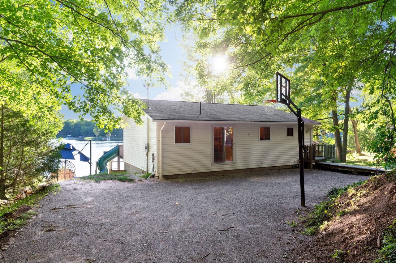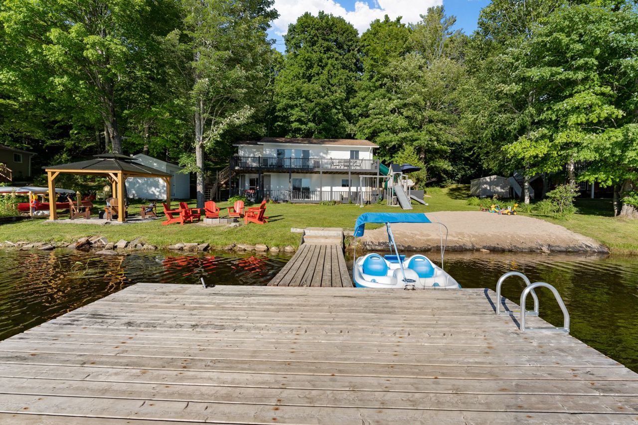 Welcome To Your Own Private Oasis On Greens Lake. This Stunning Four-Season Cottage Offers 1710 Sq.Ft. Of Living Space With Breathtaking Sunset Views Of Tranquil Waters From All Rooms. A Perfect Place For You And Your Family To Make Lasting Memories. With 100 Feet Of Natural Shoreline, A Shallow Beach Entrance, And Deep Water Off The Dock, This Cottage Provides Endless Opportunities For Outdoor Activities Such As Fishing, Swimming, Boating, Canoeing, And Skating In The Winter. This Solid-Built Cottage Boasts A Block Foundation Basement And An Efficient Heating System, Ensuring Comfort Year-Round. The Renovated Lower Level Features A Games Room With Pool And Foosball Tables For Family Fun. With Walkouts On Both Levels, A Slide, Children's Playground And Fire-Pit Lounge Overlooks The Sandy Beach, Making It The Perfect Place To Create Cherished Memories With Loved Ones. The Property Has Been Rented Before With No Issues, Providing Potential Rental Income To Help Offset The Mortgage.Amenities Such As Playground, Pool Table And Canoes, Paddle Boat Can Be Discussed.