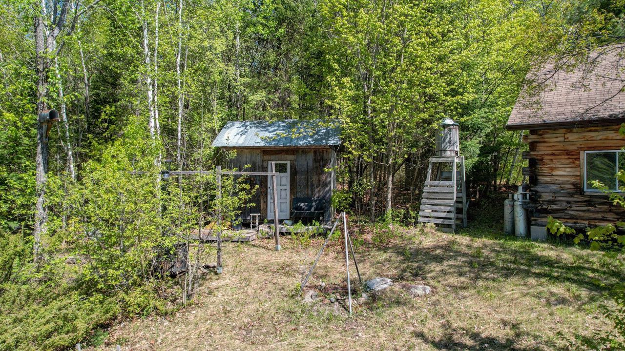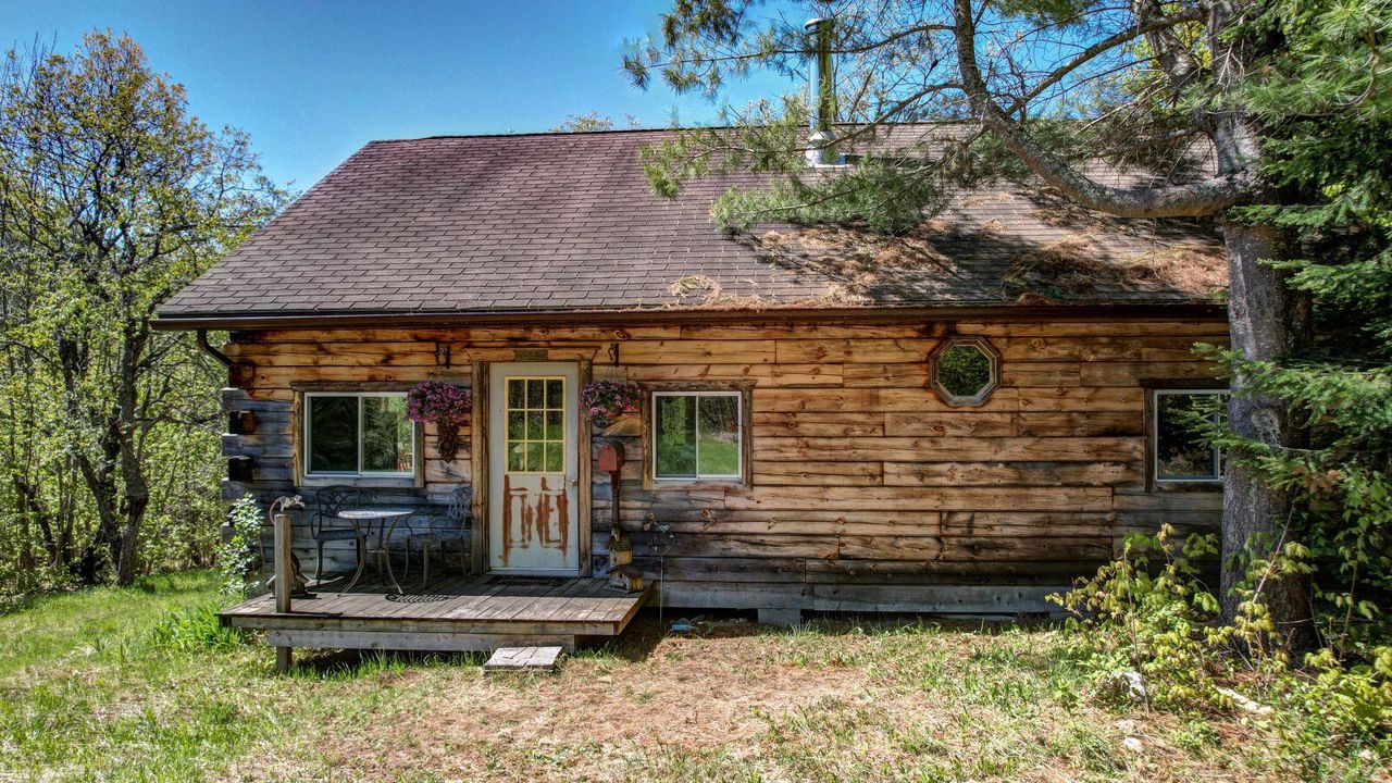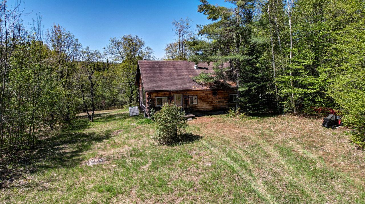 Welcome to almost 10 acres located on Airport Road West, Cardiff! This off grid property is surrounded by nature with complete privacy. With acres of forest to roam and a nice cleared area around the cabin, this property would make a great get away, hunt camp or off grid home. The 2 bedroom log cabin is equipped with a propane fireplace, propane stove/oven, and wood cookstove. Fully wired with easy generator hookup and there is one light inside powered by propane. Drop down ladder to the attic where there is plenty of storage along with a storage shed outside. The property comes with a water tote and outhouse, as there is no well or septic. Airport Road West is maintained year round from Loop Road. For those seeking trails you won't have to go far, Airport Road turns into a trail that leads right to the town of Bancroft. Just awaiting its future buyer's finishing touches!