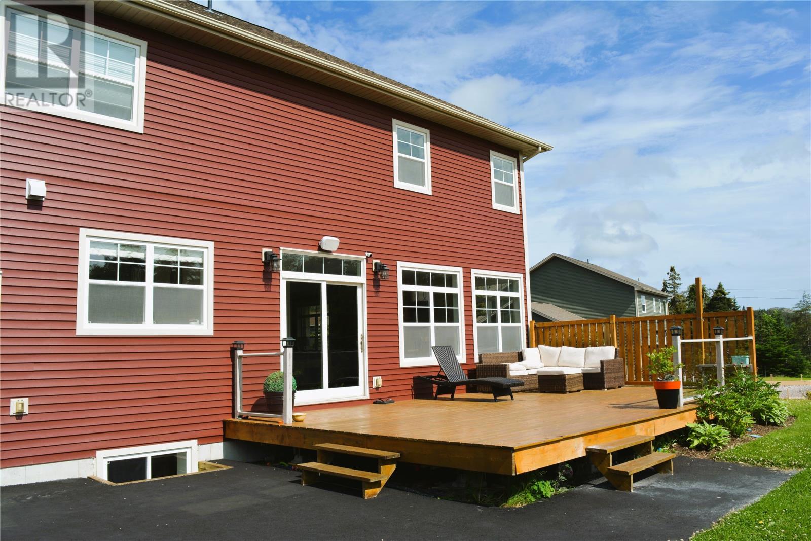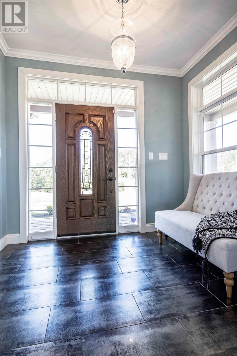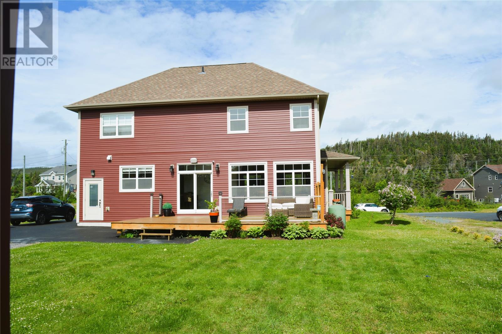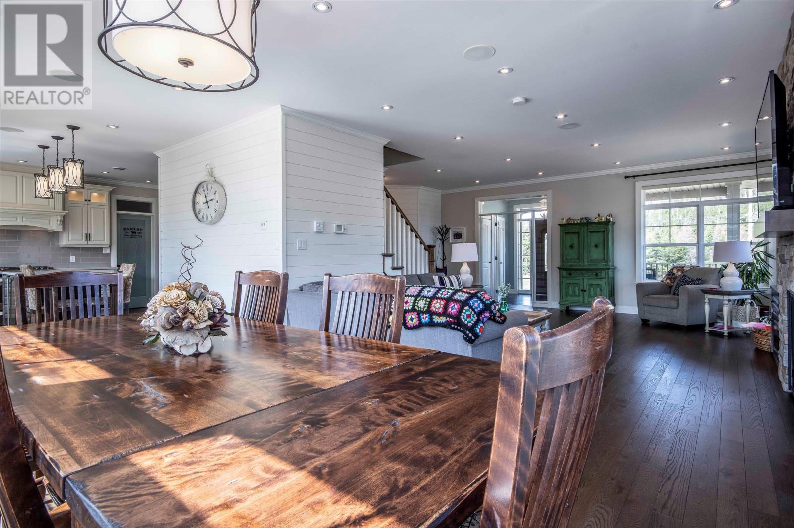 Welcome to 19 Country Path located in the scenic Town of Holyrood. This executive, pristine custom home is situated on an oversized private lot backing directly onto trees and the North Arm River. This spacious home is sure to impress from the moment you enter the picturesque property that shows like new. The property is fully landscaped with ample space to build a garage at the rear. The open concept has beautiful shiplap walls, quality hardwood floors and ceramic tiles, custom lighting and pot lights, spacious walk-in front porch and closet as well as a large area with custom ‘drop zone’ leading to attached garage. The exquisite kitchen and living spaces are designed for family and entertaining with a large granite island, abundance of quality cabinets and large custom walk-in pantry. The living space boasts a beautiful, custom propane fireplace with custom built quality shelving and cabinets. The beauty continues onto the second floor of the home with large windows in each of the three bedrooms and two bathrooms. The large principal suite has a cozy sitting room, beautiful ensuite with custom tile shower with waterfall showerhead, soaker tub and double vanity, and a large walk-in custom closet. There is a sizeable, finished room that is accessible via one bedroom (above the garage) that can be used as an office, playroom or sitting area. The second level is also complemented with a large laundry room that features custom shelving. The basement is fully complete with quality finishes throughout and features one spacious bedroom, full 3-piece bathroom, ample living space and plenty of storage. Located near schools, daycares, playground, soccer, baseball, dog park and, seconds away from the old railbed trail for hiking, ATVs and snowmobiling! 15 minutes to CBS; 25 minutes to St John’s. Other features include built in sound on main floor and rear patio, 400 amp service, lift pump in basement and home security system. (id:22211)