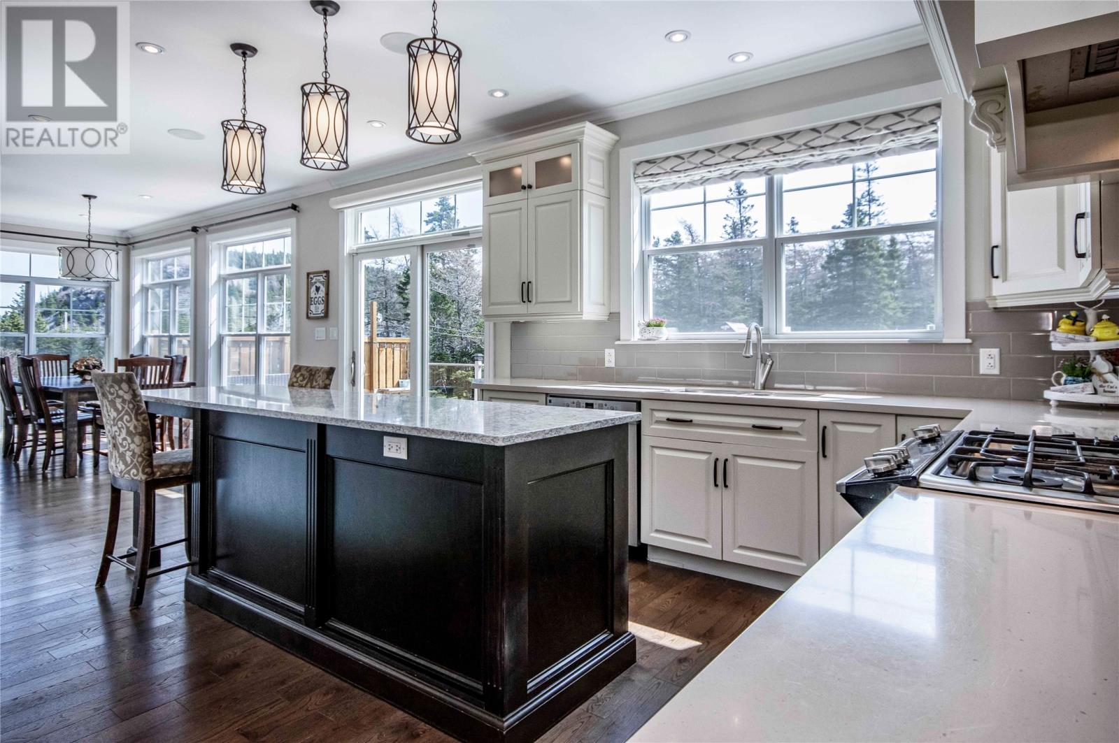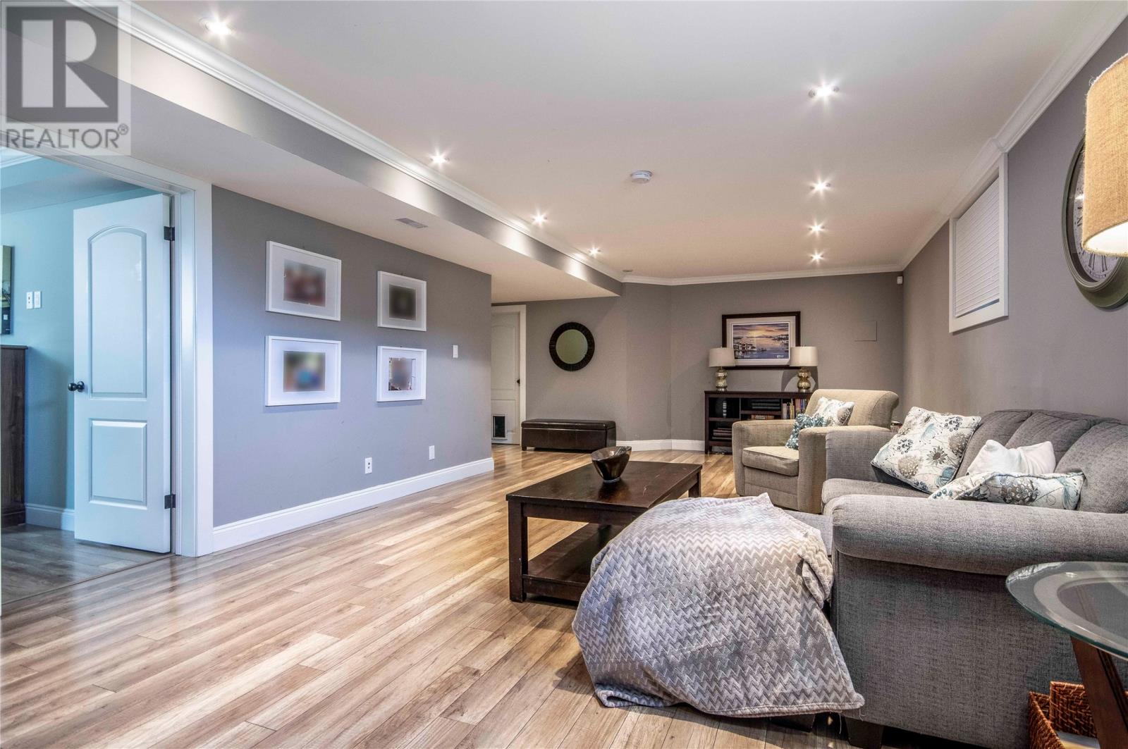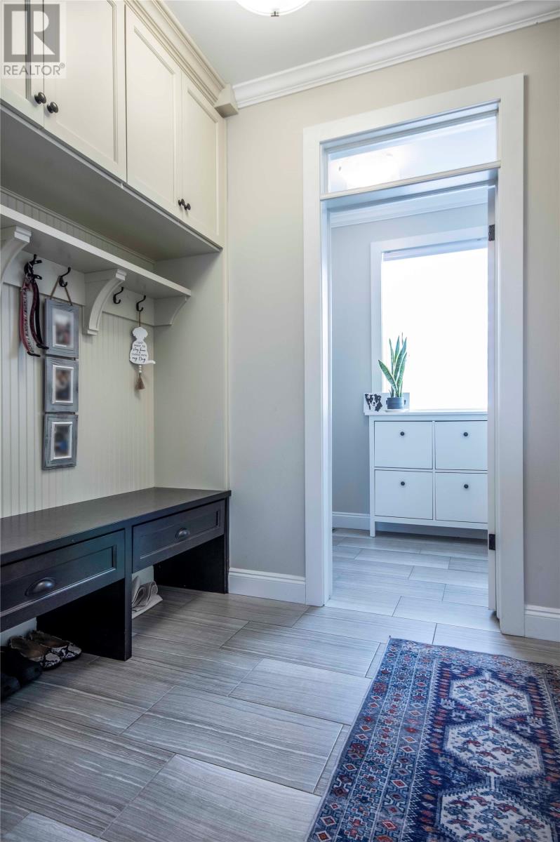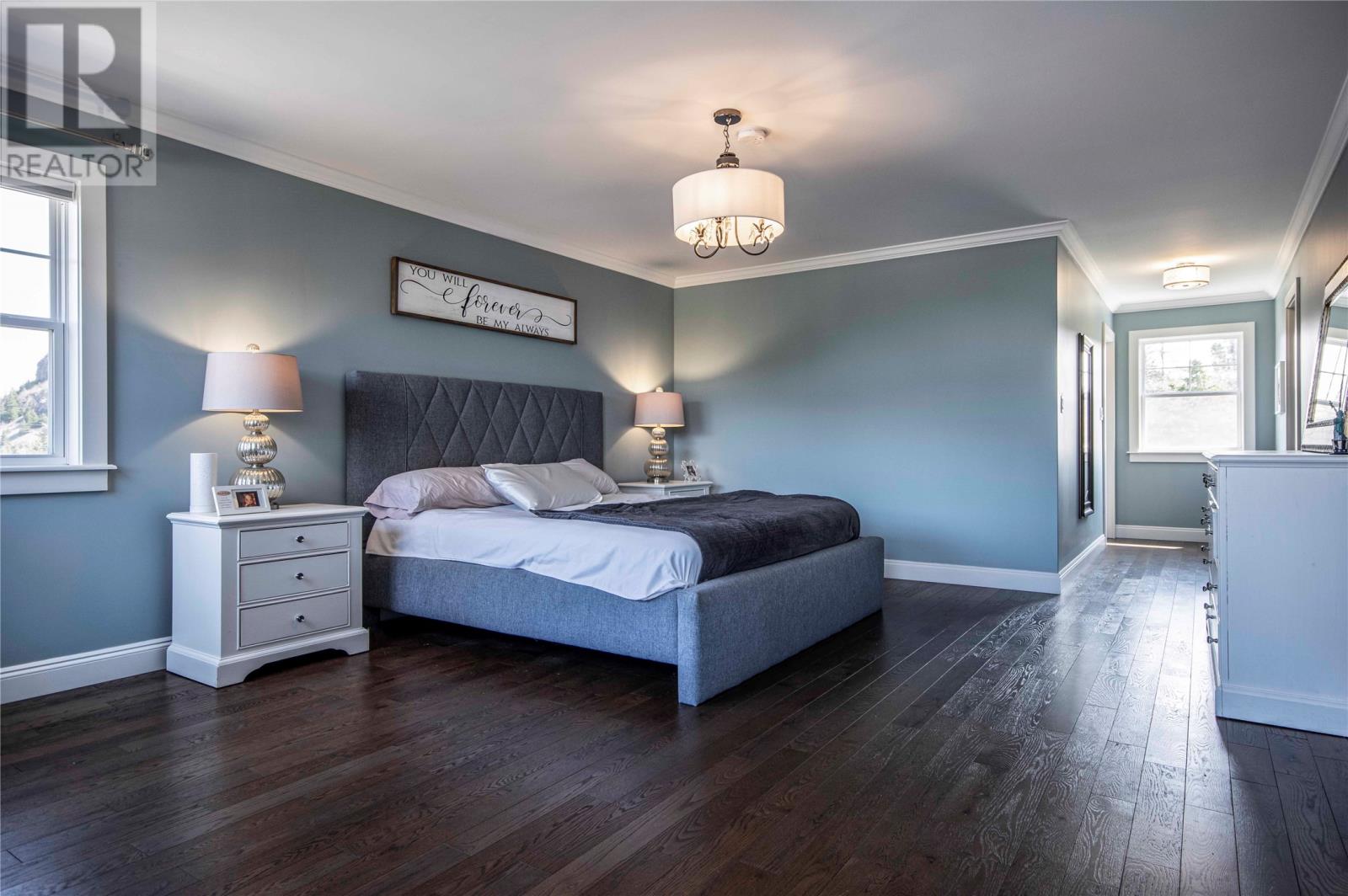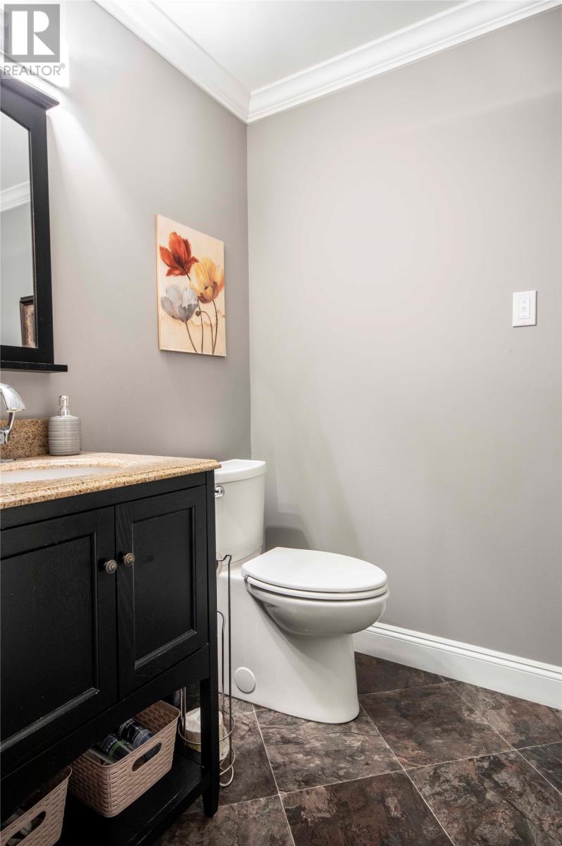 Welcome to 19 Country Path located in the scenic Town of Holyrood. This executive, pristine custom home is situated on an oversized private lot backing directly onto trees and the North Arm River. This spacious home is sure to impress from the moment you enter the picturesque property that shows like new. The property is fully landscaped with ample space to build a garage at the rear. The open concept has beautiful shiplap walls, quality hardwood floors and ceramic tiles, custom lighting and pot lights, spacious walk-in front porch and closet as well as a large area with custom ‘drop zone’ leading to attached garage. The exquisite kitchen and living spaces are designed for family and entertaining with a large granite island, abundance of quality cabinets and large custom walk-in pantry. The living space boasts a beautiful, custom propane fireplace with custom built quality shelving and cabinets. The beauty continues onto the second floor of the home with large windows in each of the three bedrooms and two bathrooms. The large principal suite has a cozy sitting room, beautiful ensuite with custom tile shower with waterfall showerhead, soaker tub and double vanity, and a large walk-in custom closet. There is a sizeable, finished room that is accessible via one bedroom (above the garage) that can be used as an office, playroom or sitting area. The second level is also complemented with a large laundry room that features custom shelving. The basement is fully complete with quality finishes throughout and features one spacious bedroom, full 3-piece bathroom, ample living space and plenty of storage. Located near schools, daycares, playground, soccer, baseball, dog park and, seconds away from the old railbed trail for hiking, ATVs and snowmobiling! 15 minutes to CBS; 25 minutes to St John’s. Other features include built in sound on main floor and rear patio, 400 amp service, lift pump in basement and home security system. (id:22211)
