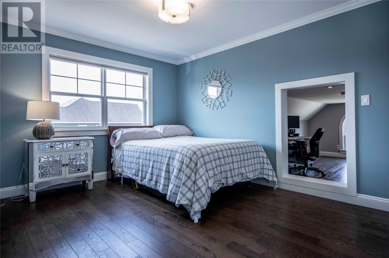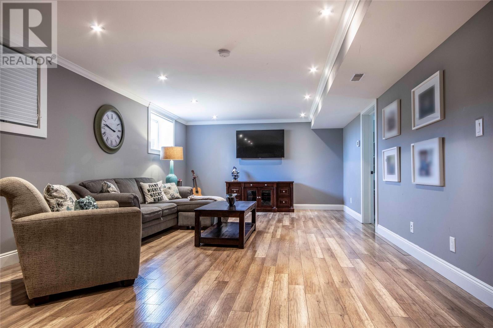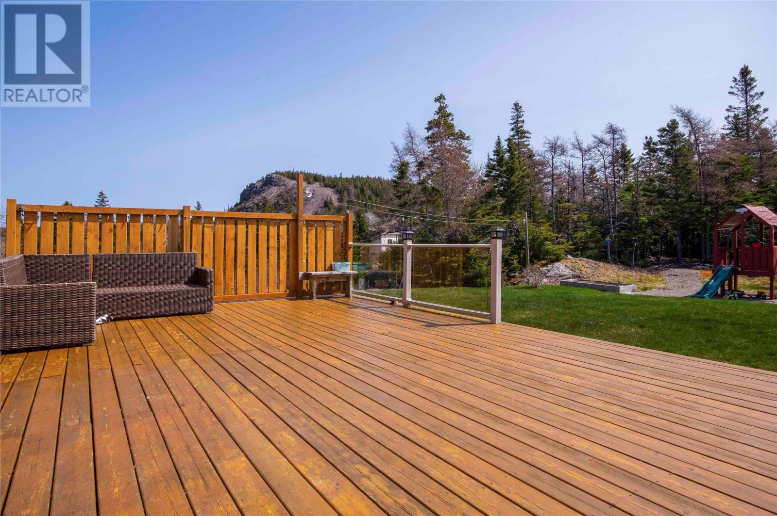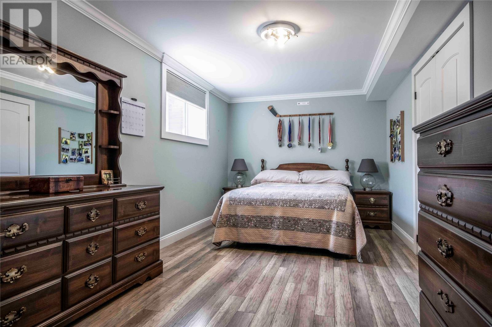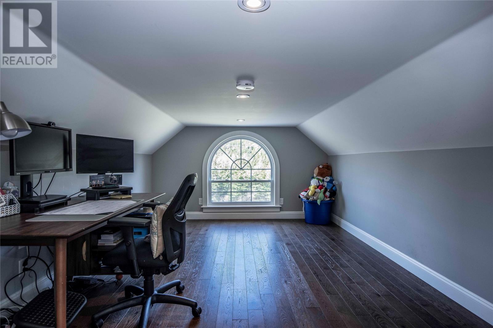 Welcome to 19 Country Path located in the scenic Town of Holyrood. This executive, pristine custom home is situated on an oversized private lot backing directly onto trees and the North Arm River. This spacious home is sure to impress from the moment you enter the picturesque property that shows like new. The property is fully landscaped with ample space to build a garage at the rear. The open concept has beautiful shiplap walls, quality hardwood floors and ceramic tiles, custom lighting and pot lights, spacious walk-in front porch and closet as well as a large area with custom ‘drop zone’ leading to attached garage. The exquisite kitchen and living spaces are designed for family and entertaining with a large granite island, abundance of quality cabinets and large custom walk-in pantry. The living space boasts a beautiful, custom propane fireplace with custom built quality shelving and cabinets. The beauty continues onto the second floor of the home with large windows in each of the three bedrooms and two bathrooms. The large principal suite has a cozy sitting room, beautiful ensuite with custom tile shower with waterfall showerhead, soaker tub and double vanity, and a large walk-in custom closet. There is a sizeable, finished room that is accessible via one bedroom (above the garage) that can be used as an office, playroom or sitting area. The second level is also complemented with a large laundry room that features custom shelving. The basement is fully complete with quality finishes throughout and features one spacious bedroom, full 3-piece bathroom, ample living space and plenty of storage. Located near schools, daycares, playground, soccer, baseball, dog park and, seconds away from the old railbed trail for hiking, ATVs and snowmobiling! 15 minutes to CBS; 25 minutes to St John’s. Other features include built in sound on main floor and rear patio, 400 amp service, lift pump in basement and home security system. (id:22211)