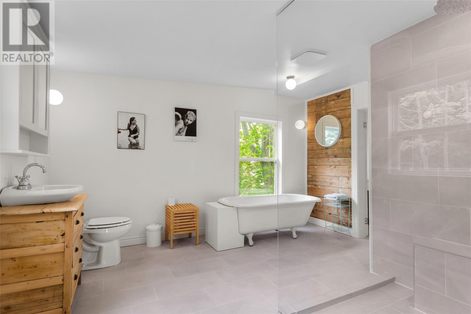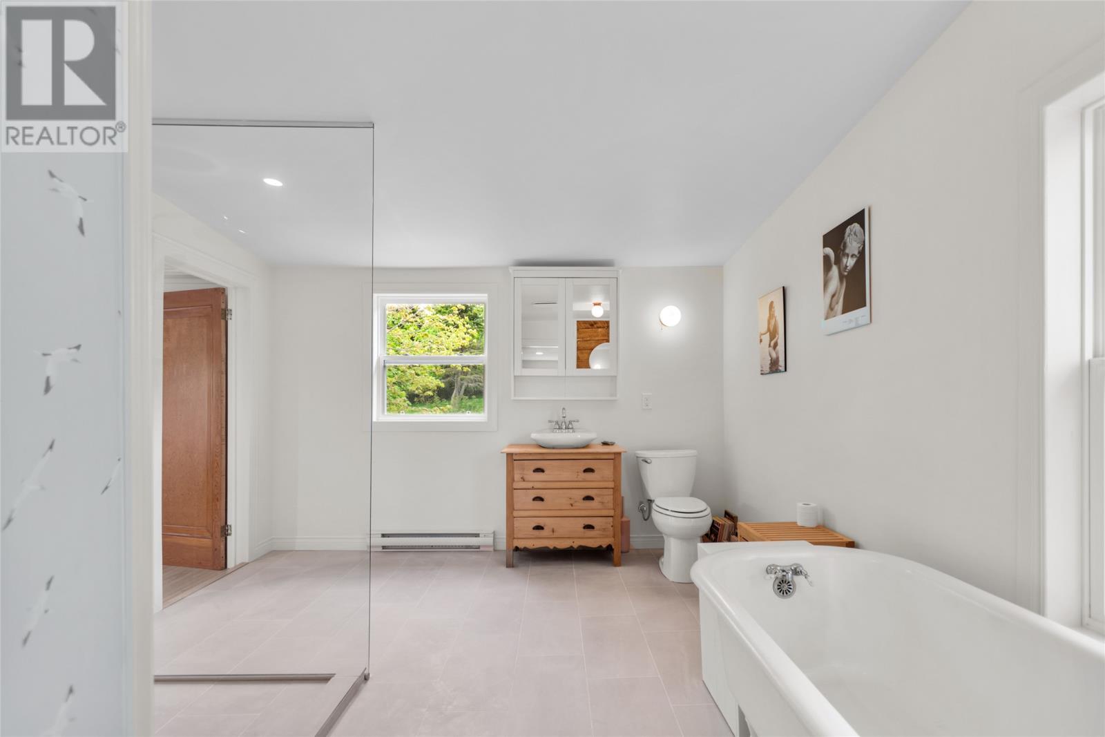 Let the warmth of the ocean surround you in this vibrant, fully restored, historic newfoundland home. Perched just across from the Boardwalk, overlooking the calming waters of the popular Holyrood Harbour, spend your evenings fireside at the beach, listening to the waves gently roll ashore, or in your backyard under a canopy of mature trees. Savor your coffee on the front terrace watching as the morning haze lifts off the water and marvel in the golden sunsets over the horizon. Holyrood Harbour is alive with activity. A popular destination for whale watching, catching caplin, cod and squid, a pleasure crafters haven and the perfect little inlet for some kayaking. Inside, a complete renovation has brought this beachfront retreat back to life and creates the perfect blend of old and new. Enter through the front door featuring the original stain glass encasing and marvel in the open and airy new concepts, while taking a moment to appreciate the history and character that was thoughtfully revived to its original glory. Panoramic views greet you from large windows that flood the kitchen, dining room, and living room with natural light. With a newly adapted layout, the main floor living spaces all flow into each other with ease, making entertaining a pleasure and a tranquil Sunroom leads you out to a quiet backyard oasis. Upstairs, 3 well appointed bedrooms offer plenty of room for you and your guests, and the original long clawfoot tub is a showstopper in the full bathroom. With an abundance of natural recreation at your fingertips, take a stroll along the boardwalk and graze the beach for treasures that have washed ashore from days gone by, launch your boat from the Marina, just across the way or jump on your atv and explore the great outdoors from your doorstep. A beautiful 9 hole golf course and popular fresh water swimming pool are within walking distance and there are hiking trails galore, this property is proof Real Estate dreams really do come true! (id:22211)