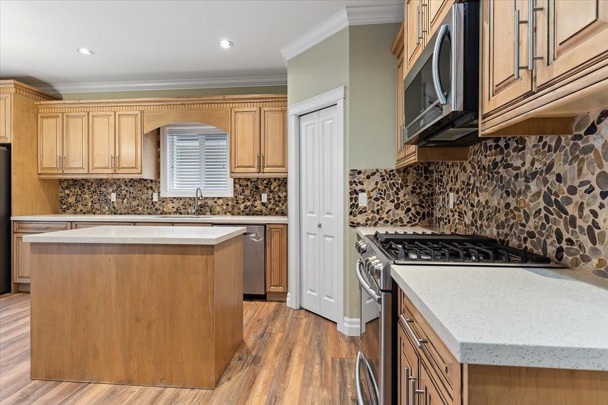 Beautiful 3-bed, 2-bath home boasts stunning mountain views & is conveniently located near a school, perfect for families. Fully fenced backyard with various fruit trees, patio, & gas hook-up, + a 2-car garage. Open-concept design seamlessly blends the kitchen, dining, & living areas, with radiant heat & natural gas hot water on demand. LED pot lights throughout, S/S appliances, garburator, pantry, & soft-close cabinets in the kitchen. The laundry room includes top-of-the-line washer/dryer with steam function. The master and second bedrooms both have walk-in closets, while the master bath features a luxurious jet tub. Laminate floors throughout with tiled bathrooms and laundry. This gated community is secure, non-age-restricted, with low monthly fees. Call today to view!