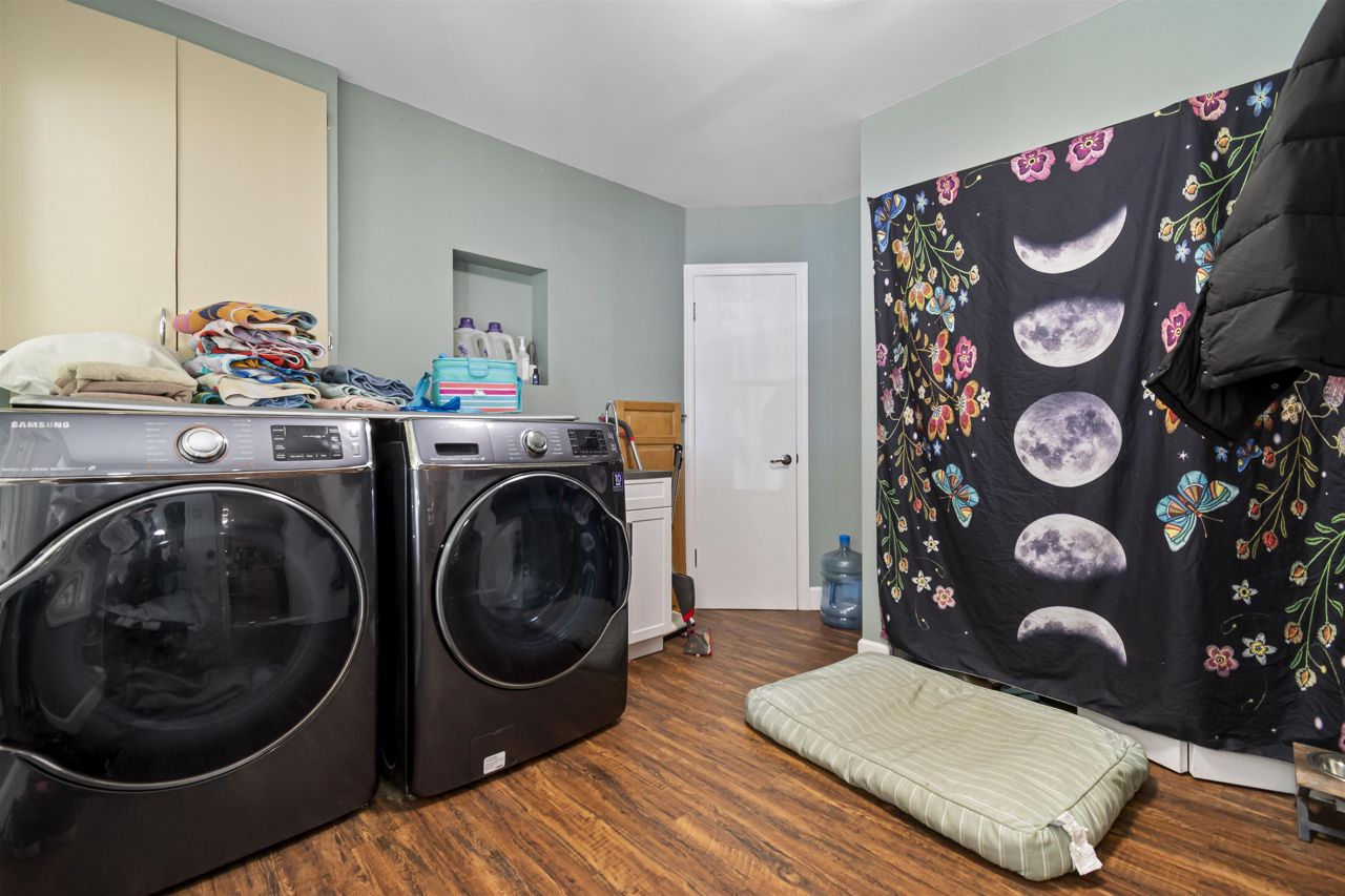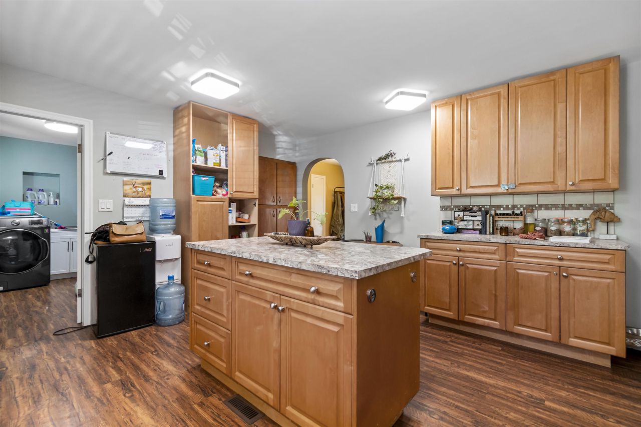 Well built, nicely renovated rancher with full basement on large 115' X 116' in town lot. Investor alert: Lot subdivision preliminary approval granted. Perfect for future build or in-law home. Home is currently rented for $4500/month. Great tenants. Almost 4000 square feet of living space. 3 bedrooms 2 bathrooms up. 2 bedrooms 2 bathroom basement suite below. Upgrades to kitchens, bathrooms, roof, windows, electrical, plumbing, heat pump and insulation. Old style hardwood flooring with dark wood inlays, oversized rooms, quality appliances and more. Large, nicely landscaped, fully fenced yard. Lots of parking and room for toys. Sunny location close to schools, shopping and recreation. Excellent opportunity for investors, active retirees or first time buyers.