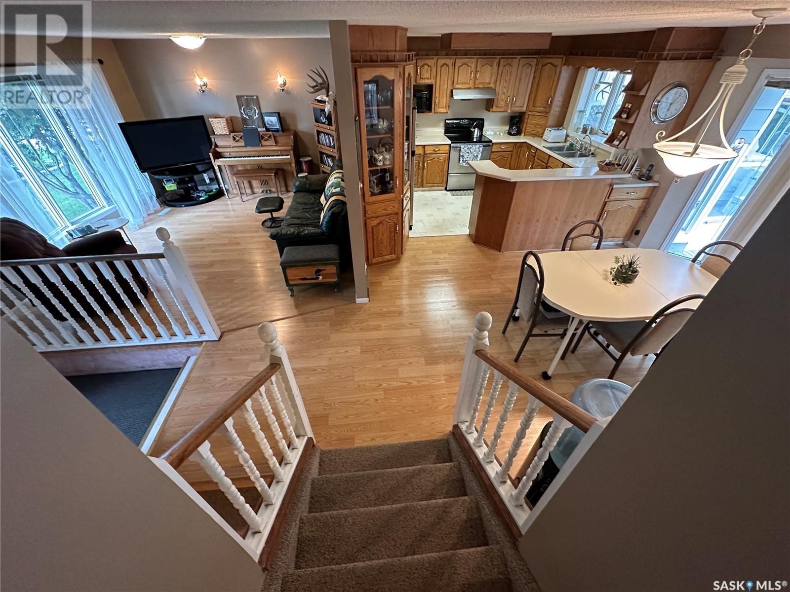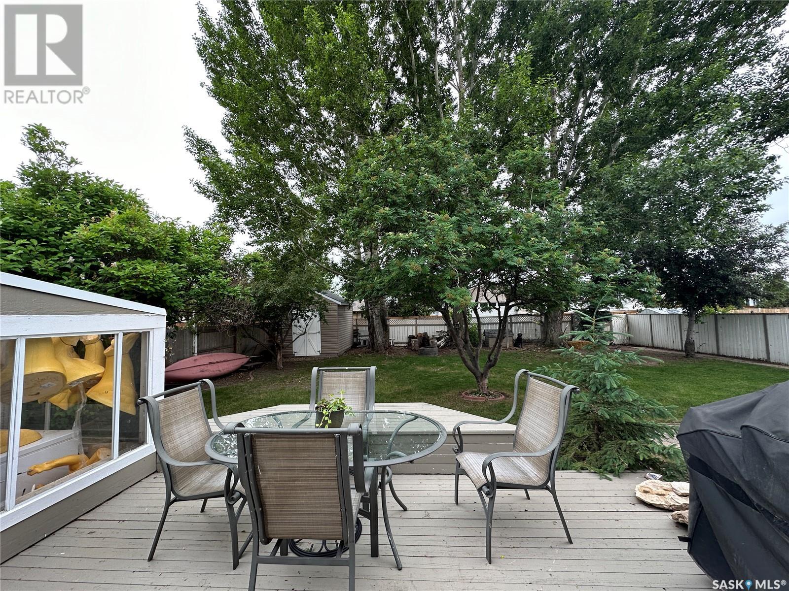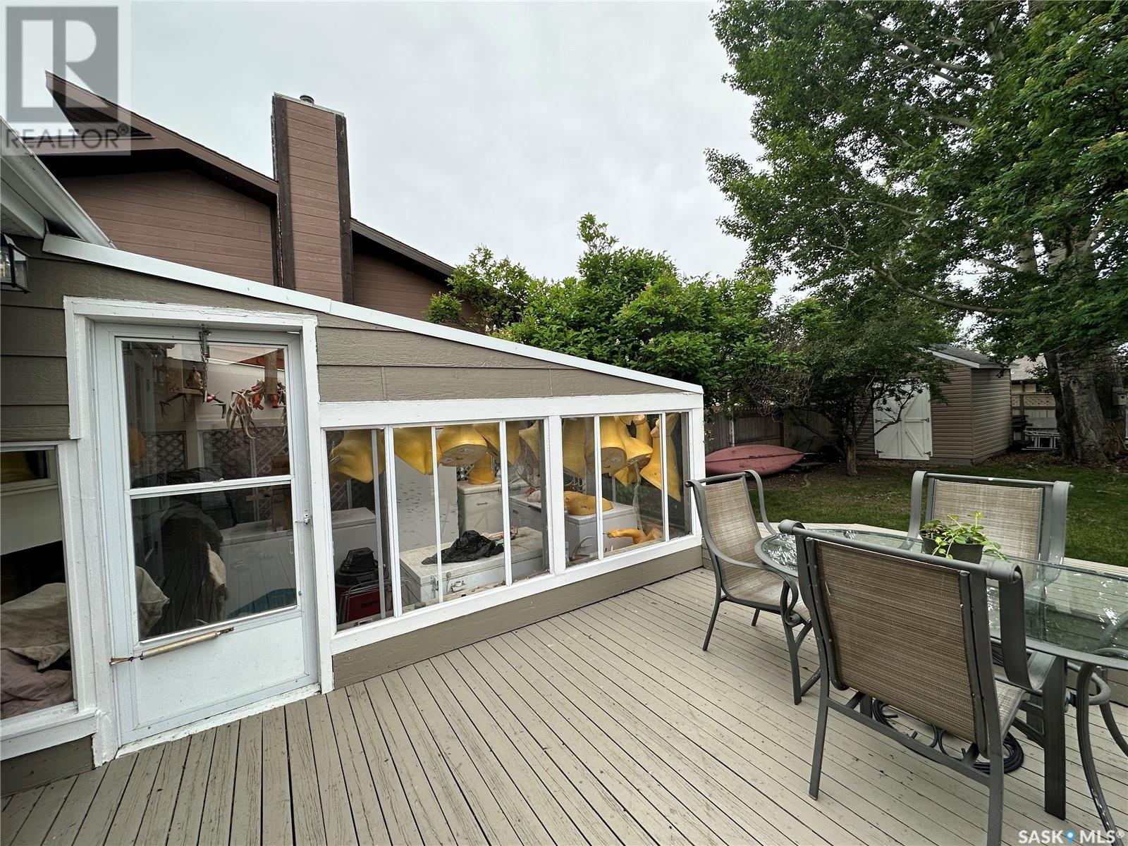 Welcome to 10 Thompson Dr in the City of Humboldt! Situated in a highly desirable area, this property boasts a generous 64 x 120 lot, offering ample space for outdoor activities. Step inside and be greeted by a warm and inviting atmosphere. The main level showcases a spacious living room, a well-appointed kitchen, and an adjacent dining area perfect for hosting gatherings. The dining area also features garden doors leading to a large deck, where you can unwind and enjoy the beauty of your surroundings. Additionally, an enclosed sunroom provides a tranquil space to relax and bask in the natural light. Upstairs, has 3 bedrooms, and a 4-piece bathroom. The third level of this home offers versatility and practicality. Here, you'll find a convenient 3-piece bathroom/laundry room combination. The family room on this level provides an ideal space for kids. In the basement, you'll find a fantastic games room and a utility storage room that offers ample space for organizing your belongings. The single attached garage has been thoughtfully converted into a workshop, providing the perfect setting for pursuing hobbies or working on projects. Should you desire a garage space, the option to revert it back to its original form is easily achievable. Furthermore, an attached workshop is in the back of the garage. Outside, the backyard is a tranquil oasis with beautiful, mature trees that provide shade and privacy. The fenced yard ensures a safe and secure space for children or pets to play freely, while a charming patio area invites you to savor outdoor dining or relaxation. New shingles will be put on soon. Call today for a showing. (id:22211)