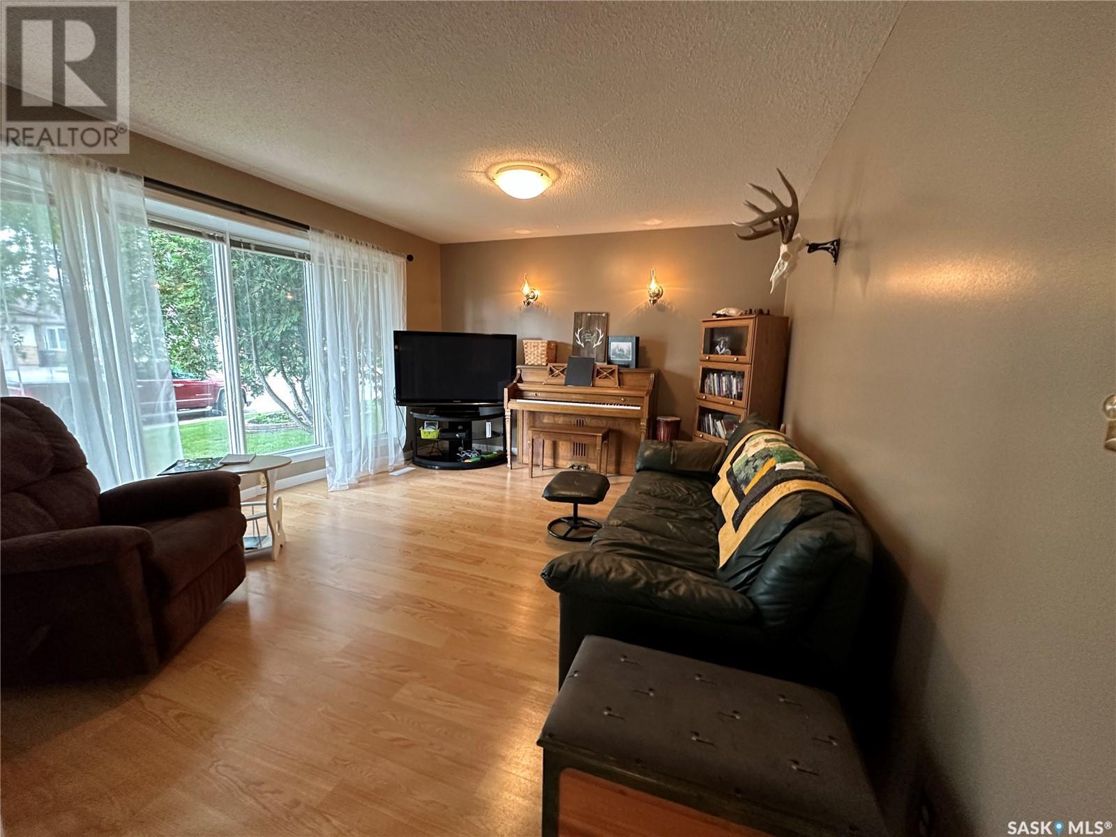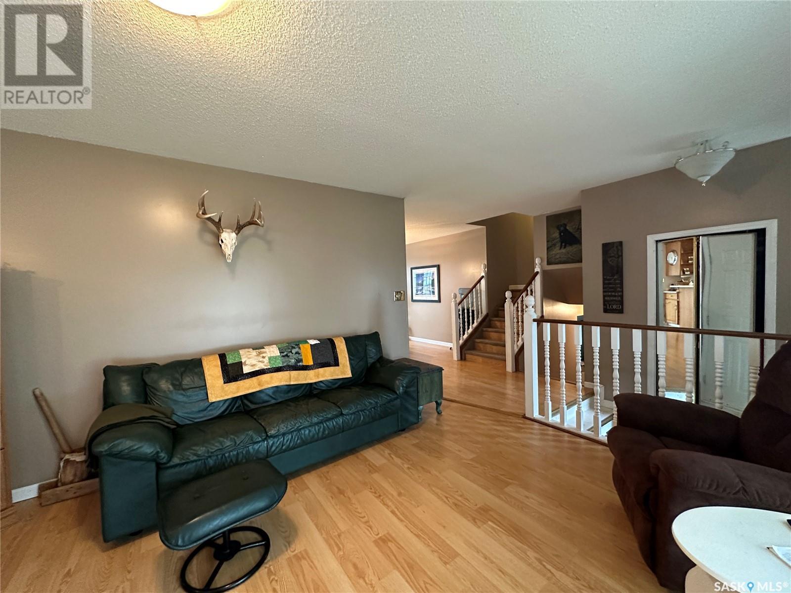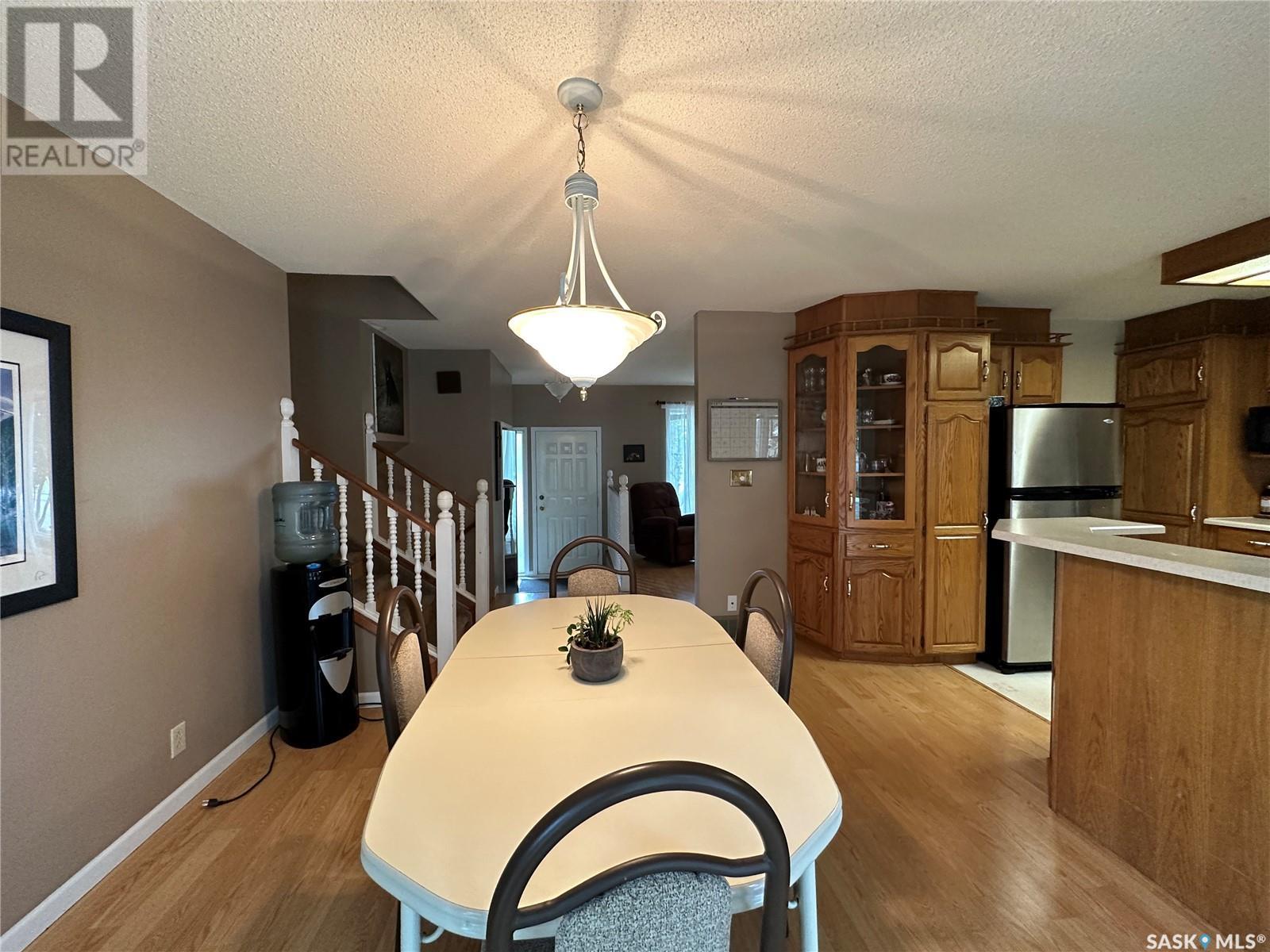 Welcome to 10 Thompson Dr in the City of Humboldt! Situated in a highly desirable area, this property boasts a generous 64 x 120 lot, offering ample space for outdoor activities. Step inside and be greeted by a warm and inviting atmosphere. The main level showcases a spacious living room, a well-appointed kitchen, and an adjacent dining area perfect for hosting gatherings. The dining area also features garden doors leading to a large deck, where you can unwind and enjoy the beauty of your surroundings. Additionally, an enclosed sunroom provides a tranquil space to relax and bask in the natural light. Upstairs, has 3 bedrooms, and a 4-piece bathroom. The third level of this home offers versatility and practicality. Here, you'll find a convenient 3-piece bathroom/laundry room combination. The family room on this level provides an ideal space for kids. In the basement, you'll find a fantastic games room and a utility storage room that offers ample space for organizing your belongings. The single attached garage has been thoughtfully converted into a workshop, providing the perfect setting for pursuing hobbies or working on projects. Should you desire a garage space, the option to revert it back to its original form is easily achievable. Furthermore, an attached workshop is in the back of the garage. Outside, the backyard is a tranquil oasis with beautiful, mature trees that provide shade and privacy. The fenced yard ensures a safe and secure space for children or pets to play freely, while a charming patio area invites you to savor outdoor dining or relaxation. New shingles will be put on soon. Call today for a showing. (id:22211)