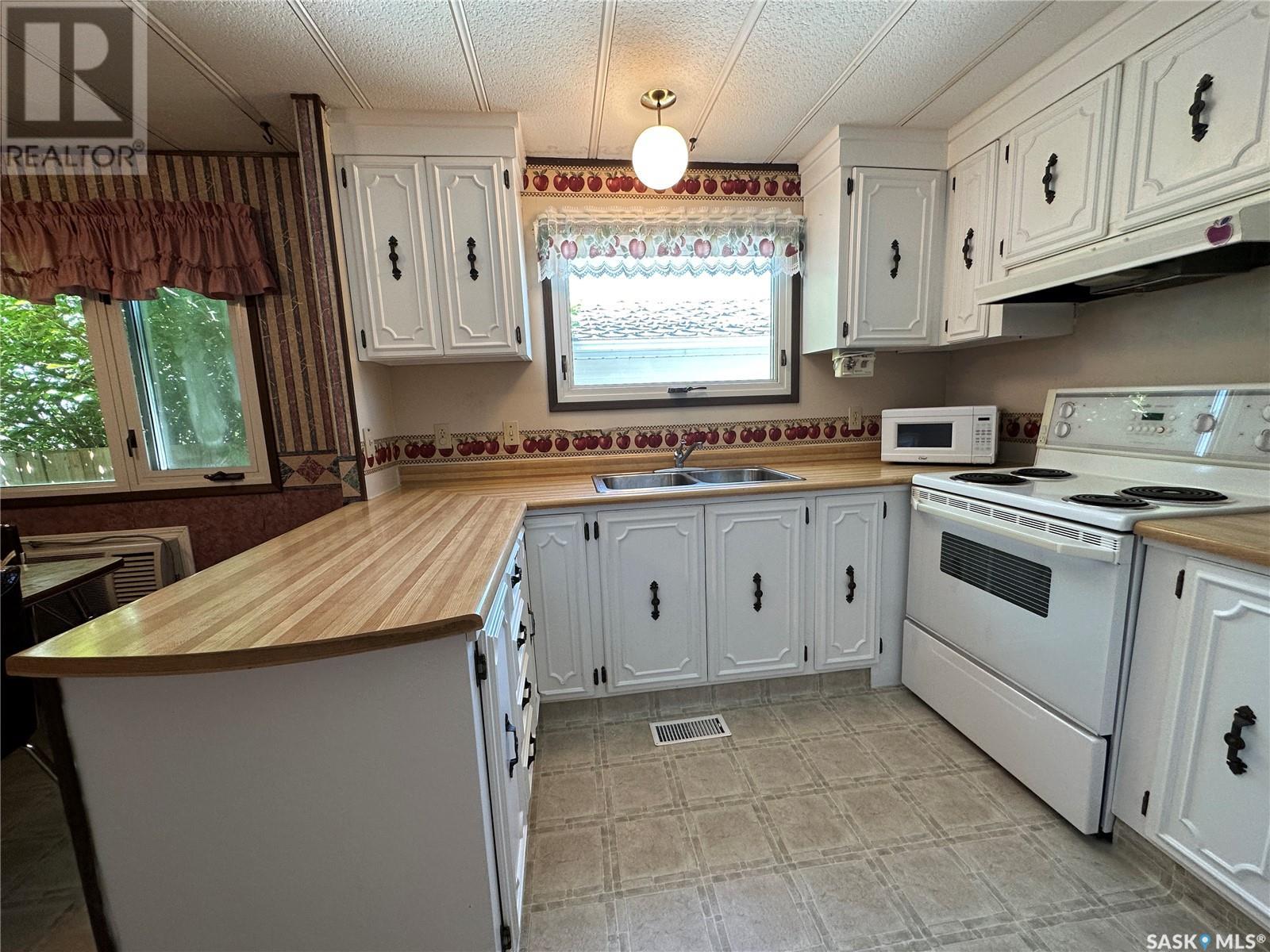 Attention Investors or first-time Home Buyers, there is an opportunity at 107 12th St. in the City of Humboldt. This maintained mobile home is nestled on its very own owned lot. Upon arrival, you'll immediately notice the addition of a porch and den which is not heated but consists of a lot of extra space. You are greeted by a spacious living room that offers a view of the front yard. The kitchen and dining area have ample room for a family. This home has three bedrooms. Additionally, four-piece bathroom and a laundry area in the hallway. Outside, the property features a convenient shed for all your storage needs, as well as a charming garden area that beckons you to unleash your green thumb. Investors and first-time home buyers alike will appreciate the affordability and potential that this property holds. Don't miss out on the chance to make this house your own and take advantage of everything it has to offer. For more information or to schedule a private viewing, call today! (id:22211)