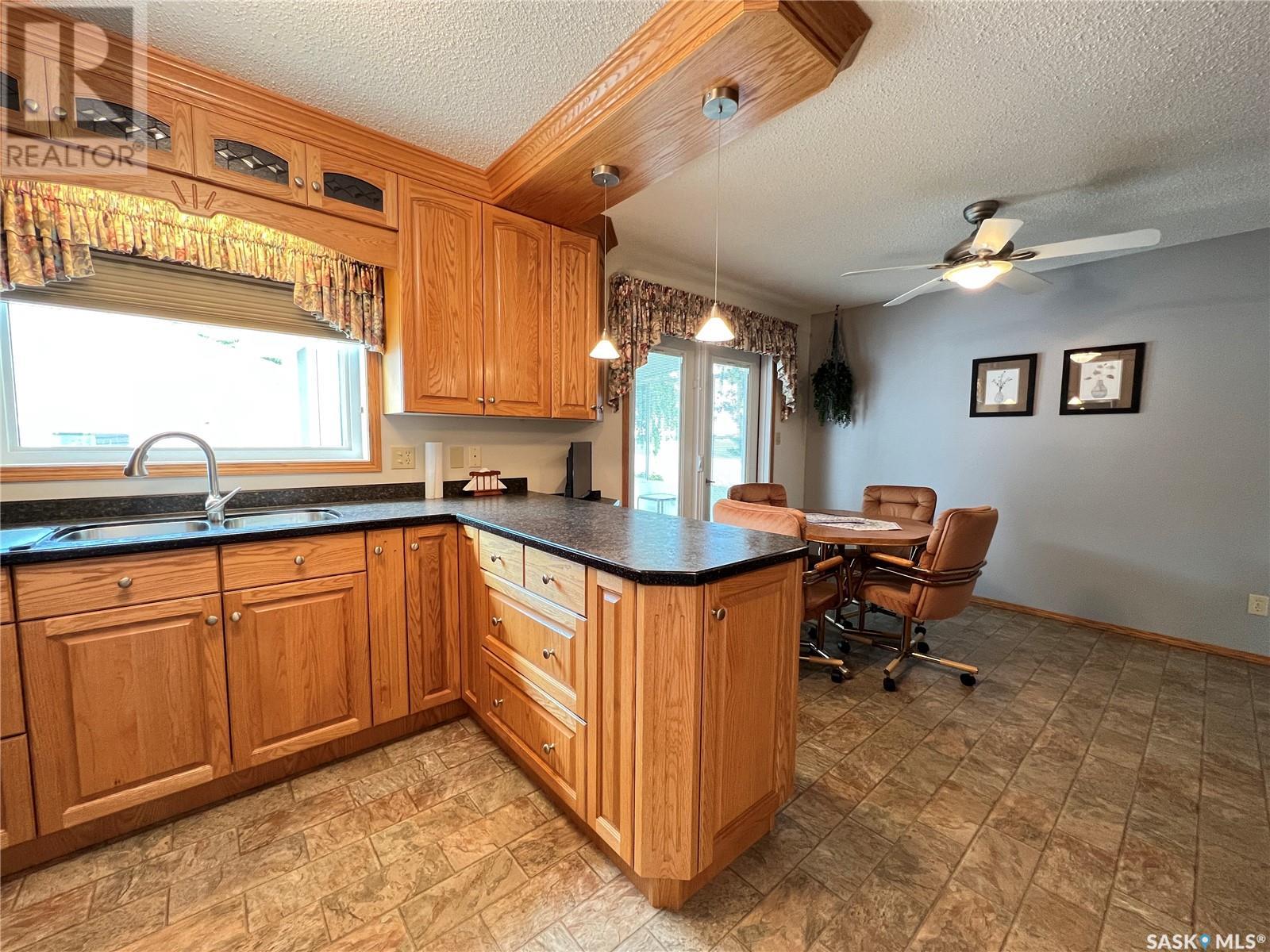 Original owner of this well kept 3 bedroom home with wonderful prairie views to the North, a 3 season sun room to enjoy the views and many updates over the years. Side entry to the home leads you to an oak kitchen package with abundance of cabinetry and built-in cabinetry in the dining area. Great access from dining to the 3 season sun room with spectacular views of the yard and fields. Spacious living room, hallway to 3 large bedrooms, 4 pc. bath and 3 pc. ensuite to the master bedroom. Side entry also leads you to a finished basement with open entertaining space, bar area, bedroom, large 3 pc. bathroom, storage, cold storage and utility area. Double detached garage, large garden space and plenty of greenspace. If your looking for a well kept home with scenic farming views, don't miss out on this home. Buyer to verify all measurements. Call to view todayt!! (id:22211)