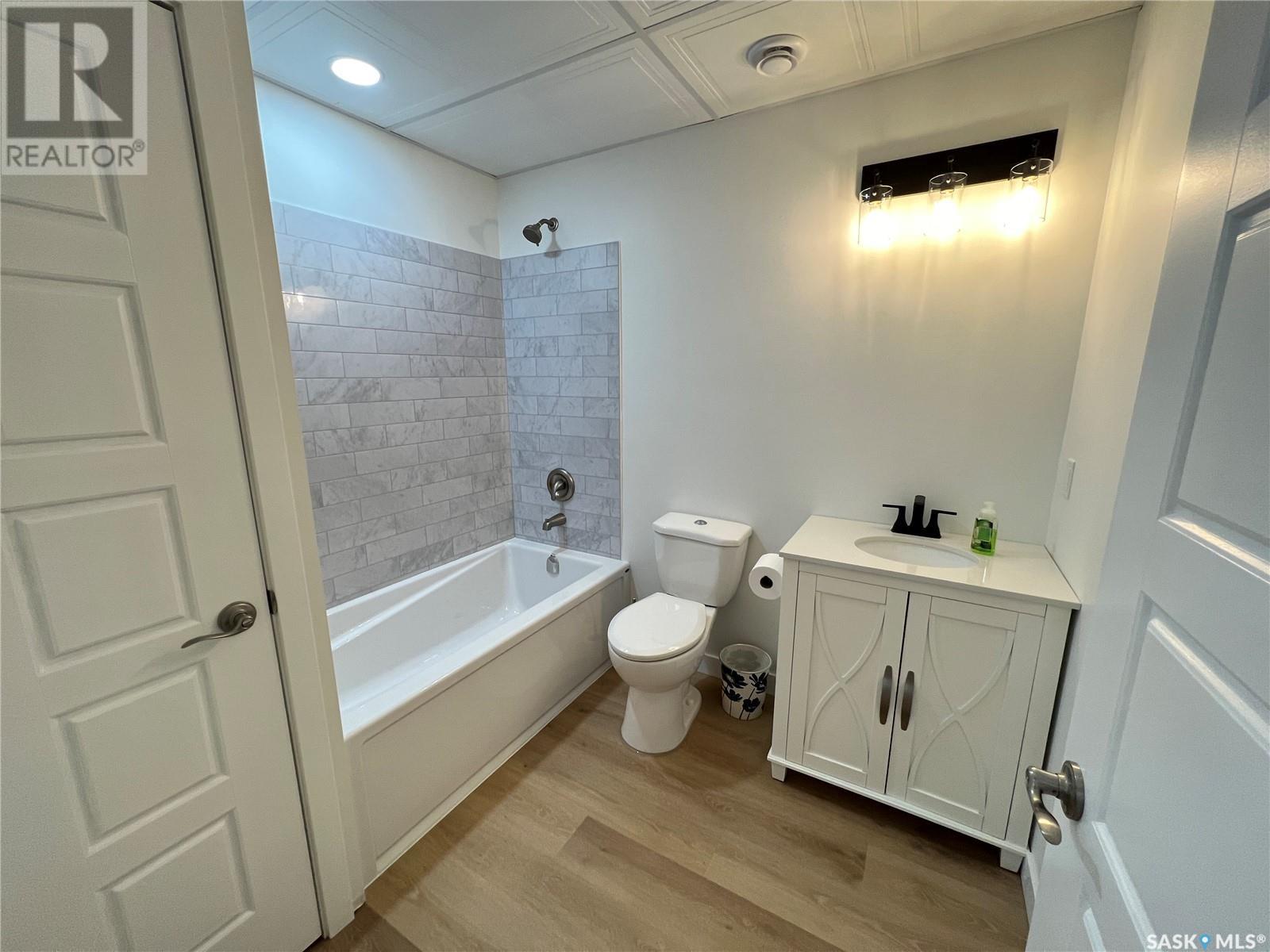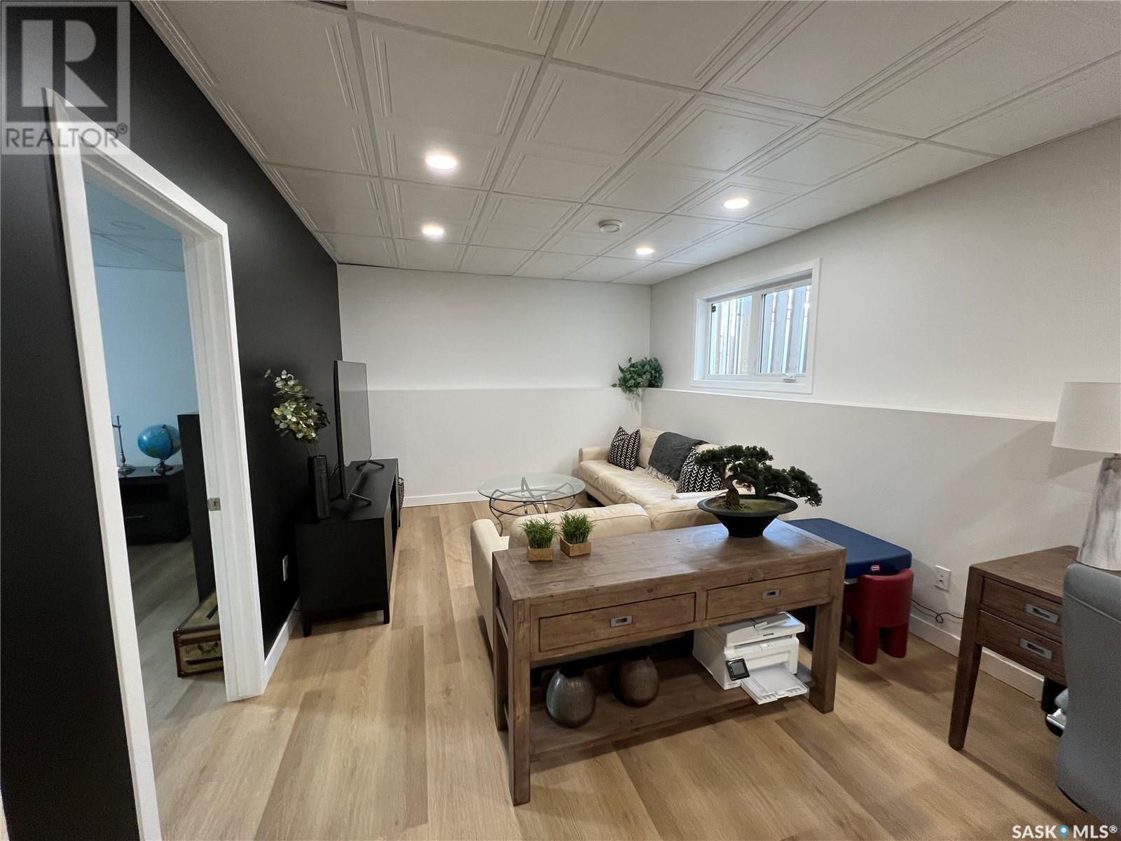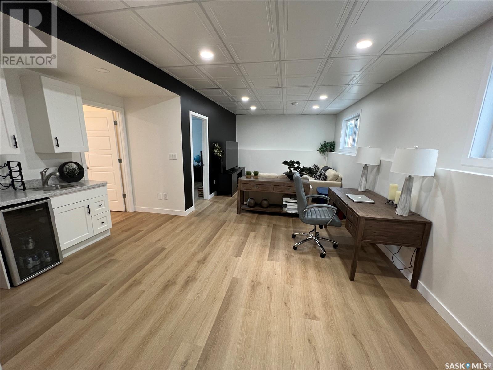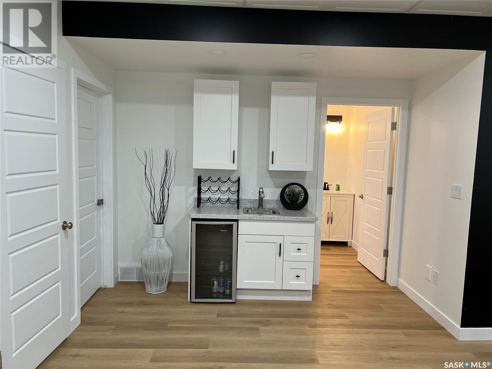 Fantastic modified bi-level 3+1 bedroom home located on a quiet crescent in newly developed area in Humboldt, Sask. This home shows like new and will check off all the boxes - 3 bedrooms, modern decor, easy to maintain flooring throughout, three 4 pc. bathrooms, open concept, vaulted ceilings, double attached garage, and beautifully landscaped yard. Great street appeal with double concrete drive and extra gravel spot for extra parking. Door from dining/kitchen area leads you to a 2 tier deck overlooking a gorgeous yard to views of open field space and nightly sunsets. Air conditioning, all appliances, wet bar in basement (mini fridge included), central vac, storage space under the deck and a home that can be shown with pride. Seller has enough vinyl plank and baseboard to match basement to put throughout main floor! Buyer to install. IT WON'T LAST LONG - SO BOOK YOUR SHOWING!! Buyer to verify all measurements. (id:22211)