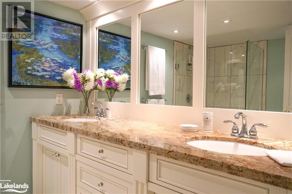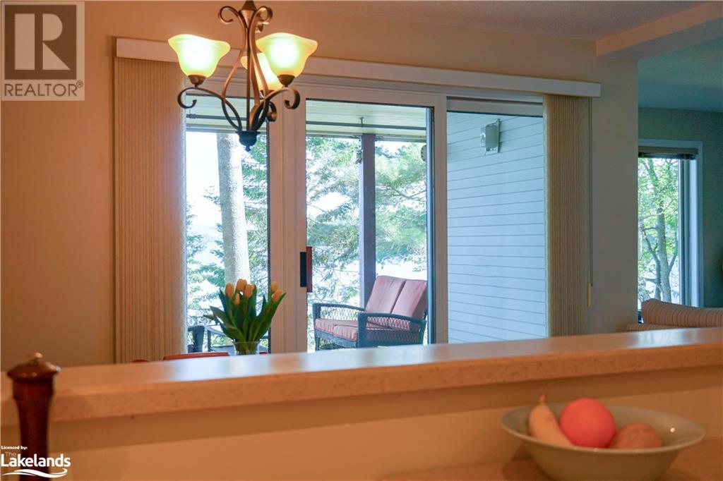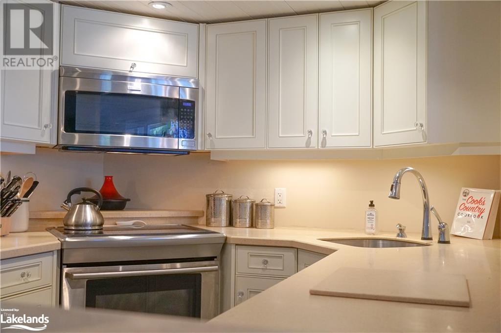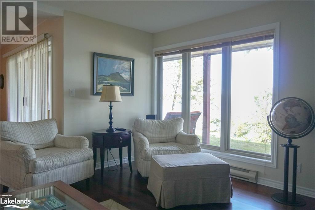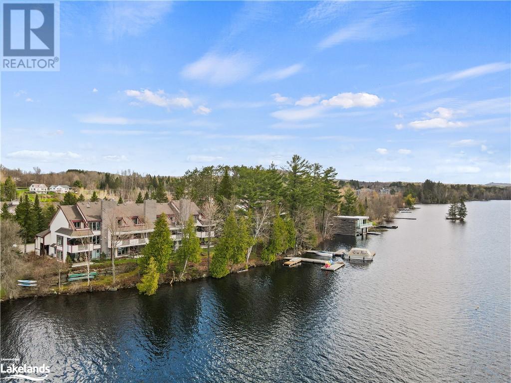 SOLD FIRM. WAITING FOR DEPOSIT. Million dollar southwest views of Fairy Lake! Experience the peace and tranquility of Muskoka with all the comforts of home in this impeccably maintained ground floor waterfront condo at Rogers Cove. With over 1,200 sqft of living space, this condo features 2 bedrooms, 2 bathrooms, spacious living and dining areas, custom kitchen and walk-out access to a large deck overlooking the lake. There is never a shortage of activities in any season with 40 miles of boating access to 4 lakes, nearby golf courses, pickleball and tennis courts, hiking trails, cross-country and downhill skiing and just minutes away from the vibrant Huntsville town centre where restaurants and local artisan shops are plentiful. If you are in the condo market, this is a must see! (id:22211)