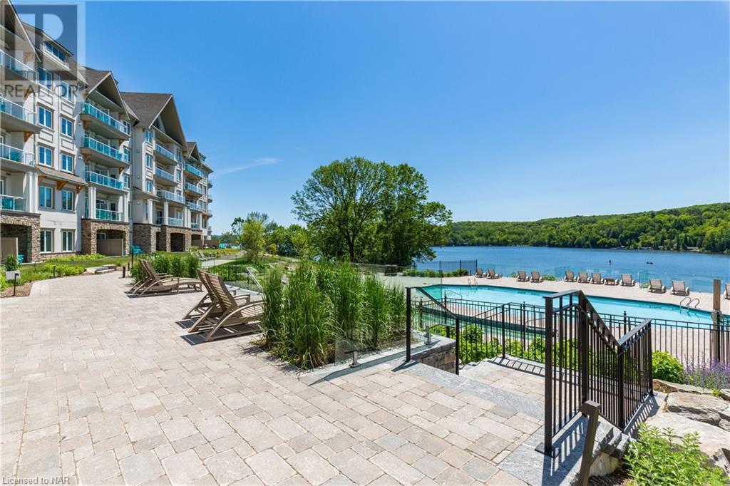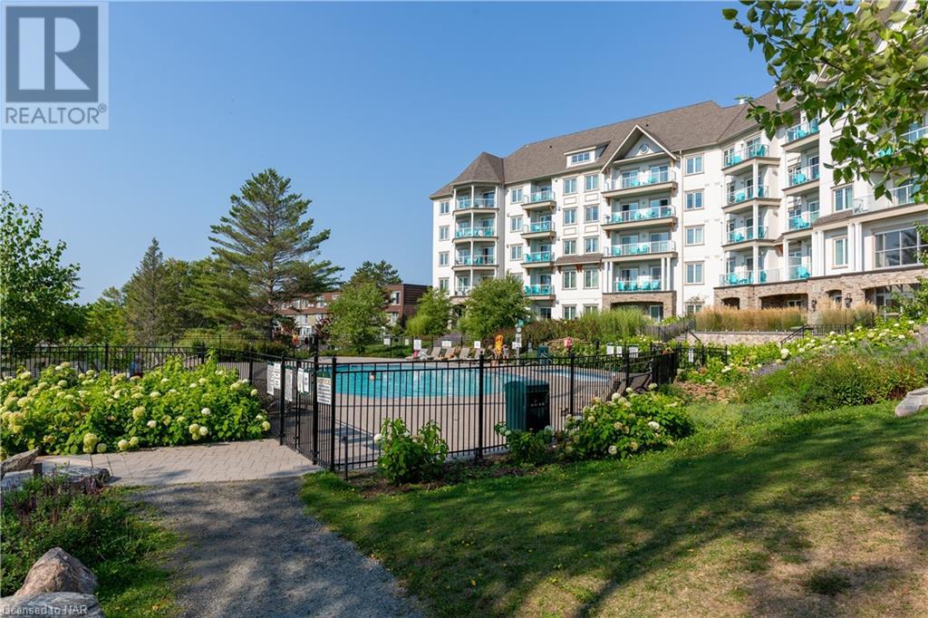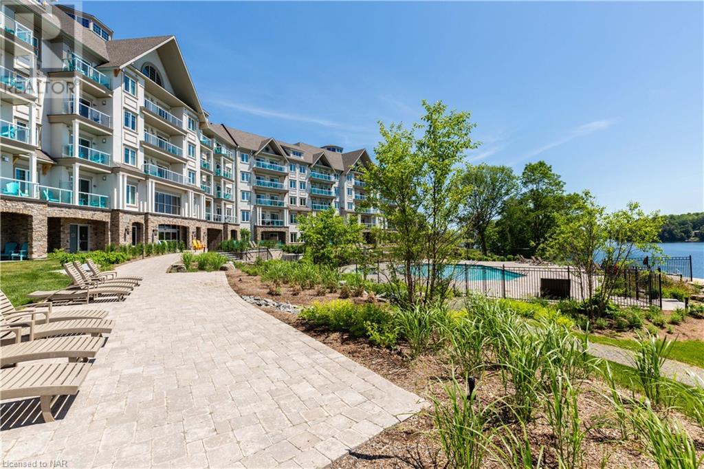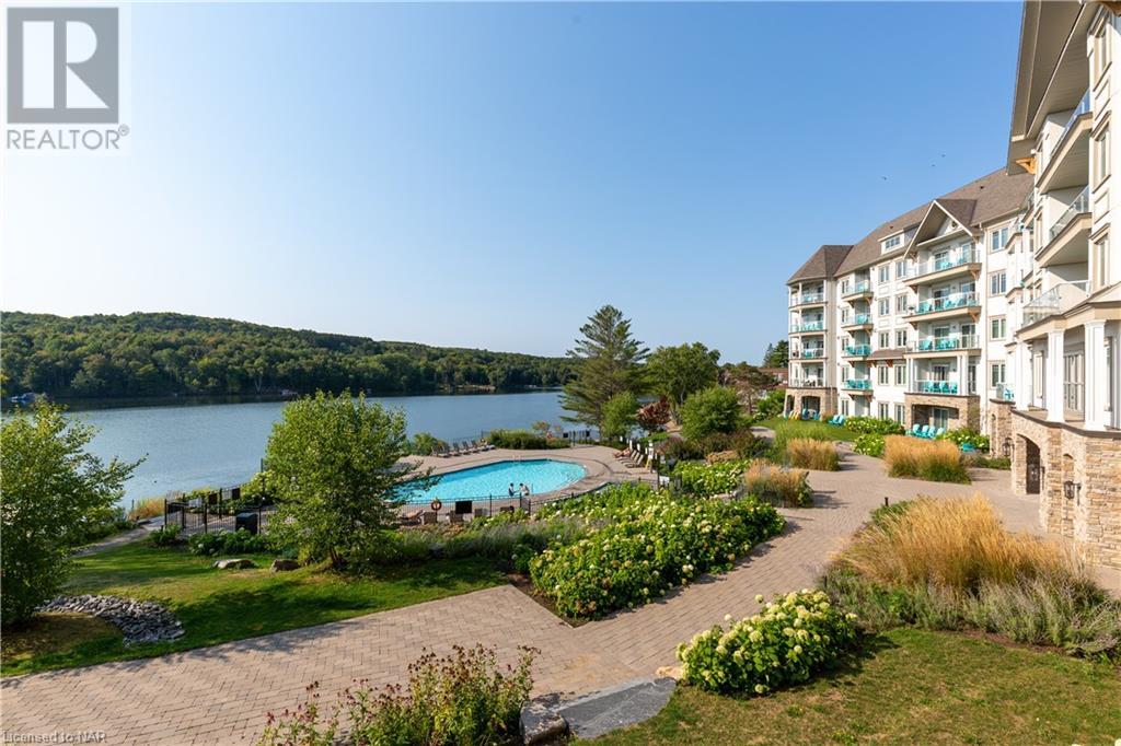 Own a piece of Muskoka paradise with the added bonus of rental income! This immaculately maintained, 2 bed 2 bath terrace condo is located within the newly constructed Deerhurst Resort and is your rare opportunity to enjoy the Muskoka life without worrying about upkeep. This south-facing unit gives you a million dollar view of the Peninsula Lake and surrounding nature, all while being just a few steps from the resort's massive swimming pool. Inside of this luxurious unit you will love the modern yet functional layout which boasts soaring ceilings, vinyl plank flooring, stone counters, a gas fireplace in the family room, 3 piece ensuite bath plus hidden in-unit laundry. This fabulous location offers endless activities to enjoy year-round including over 40 miles of boating on 4 lake chain system, world class lakeside golf course, spa, excellent dining options, Hidden Valley Ski Resort, Treetop Trekking, short drive to Algonquin Park plus easy access to Highway 60 and Downtown Huntsville. All that's left to do is move in - come see for yourself! (id:22211)