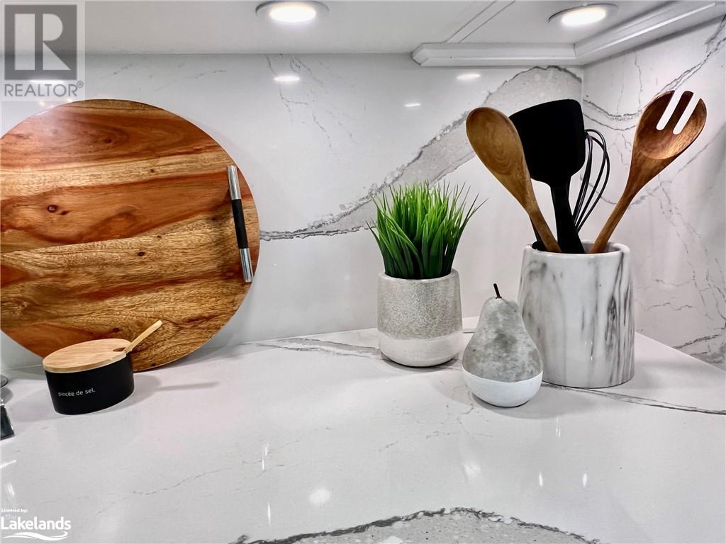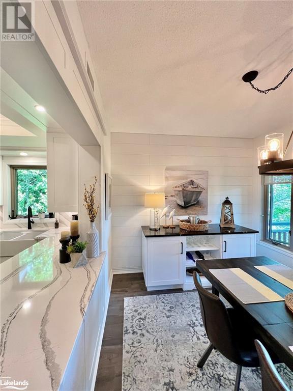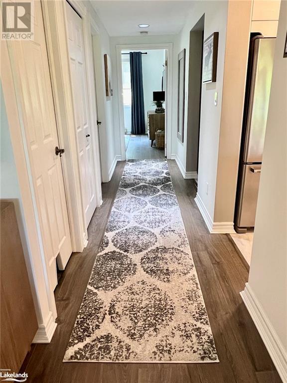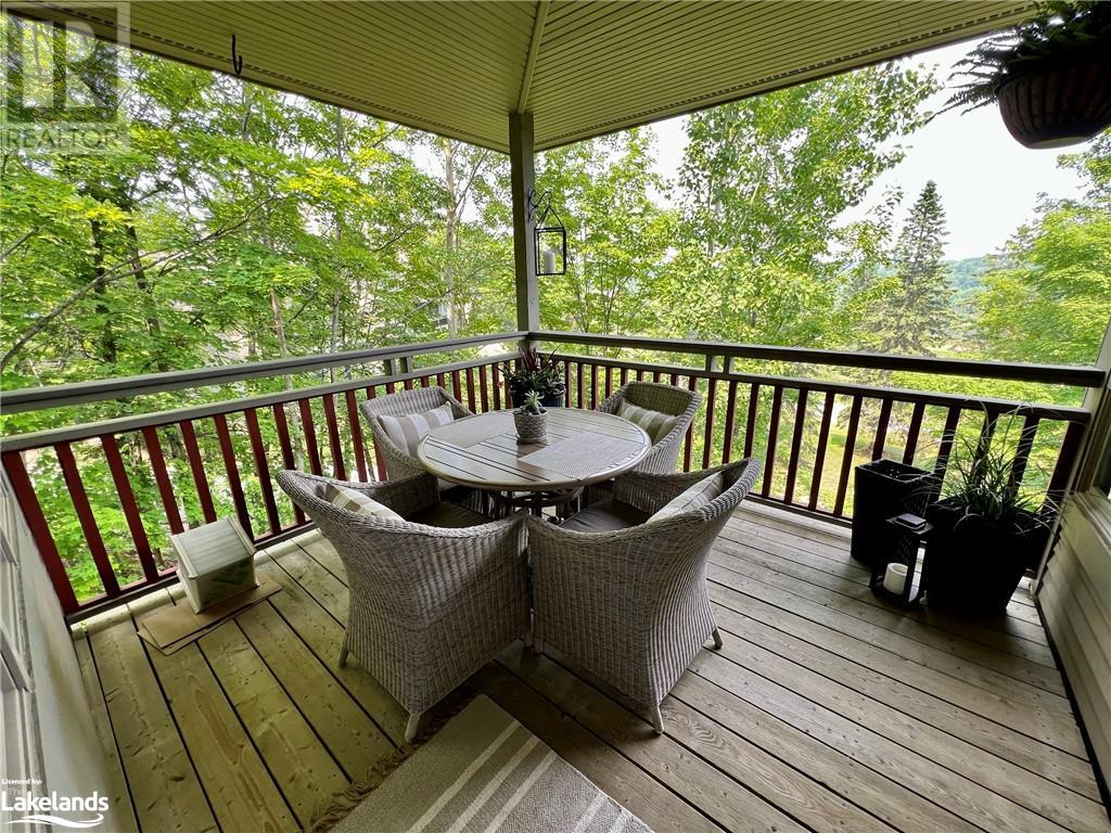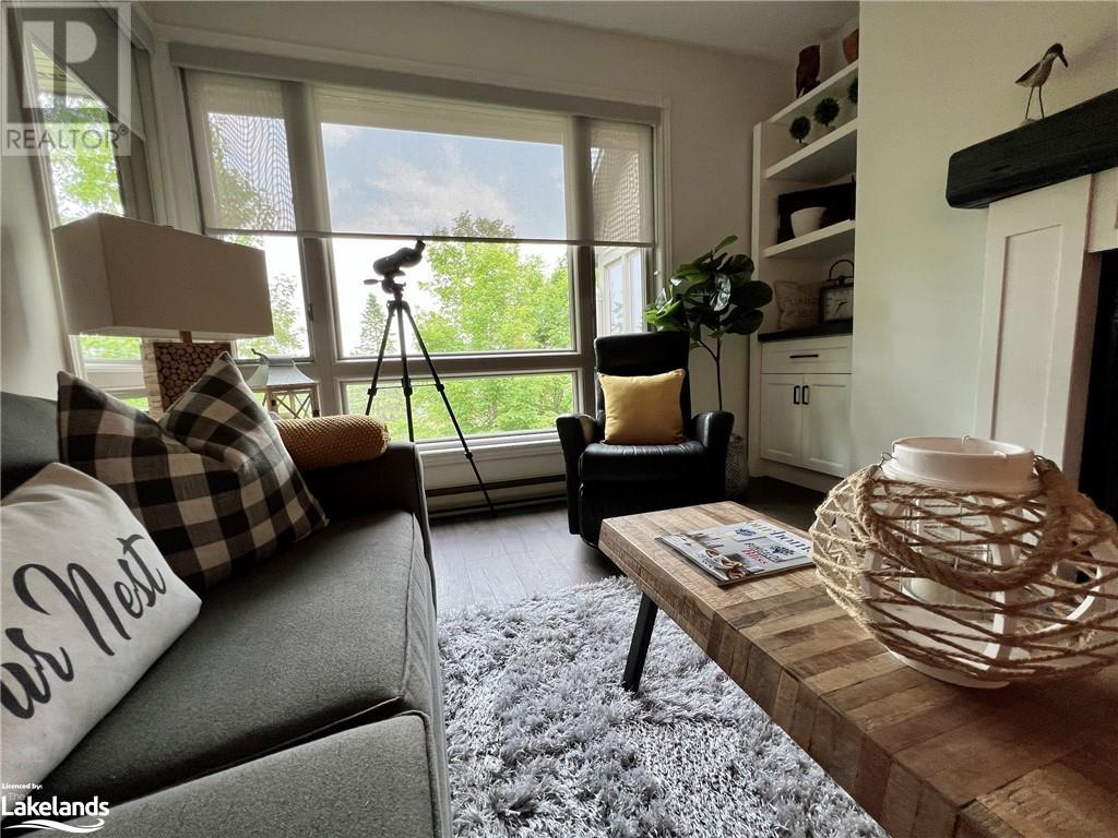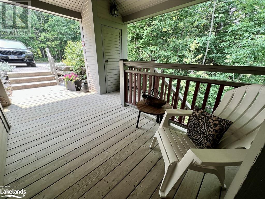 Grandview condo with NO STAIRS. Walk in ground level entrance makes this a desirable location but wait until you get inside! This is a very special condo that has been renovated sparing no expense. High end kitchen with Cambrian quartz countertops & back splash. The cabinets are extra large with all the added features of a high end gourmet kitchen. Frankie Farmhouse sink with Riobel faucets. Totally renovated with European plank flooring, built in book shelf in living room, built in bedroom closet system & cabinet in dining room with wine rack, deep drawers & quartz top. There is an bonus Bunkie style bedroom for sleepovers. Private patio with forest views & a front door sitting area. Gas furnace with warranty until 2027. Wood burning fireplace for that real Muskoka ambience. End unit with big bright windows. Just a short walk down to the swim dock. Lots of walking trails just outside your door. Close to town with all the amenities but yet far enough away to feel like country living. Pet friendly, people friendly community. Close to Algonquin Park, Arrowhead & Limberlost. 4 Season's of fun in Muskoka! No work - just enjoy. Perfect for snowbirds as a home or a get away from the city. Meticulously clean & well maintained. Low condo fees of $456/month. You gotta see this one! (id:22211)