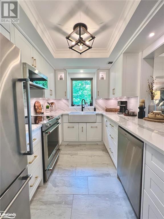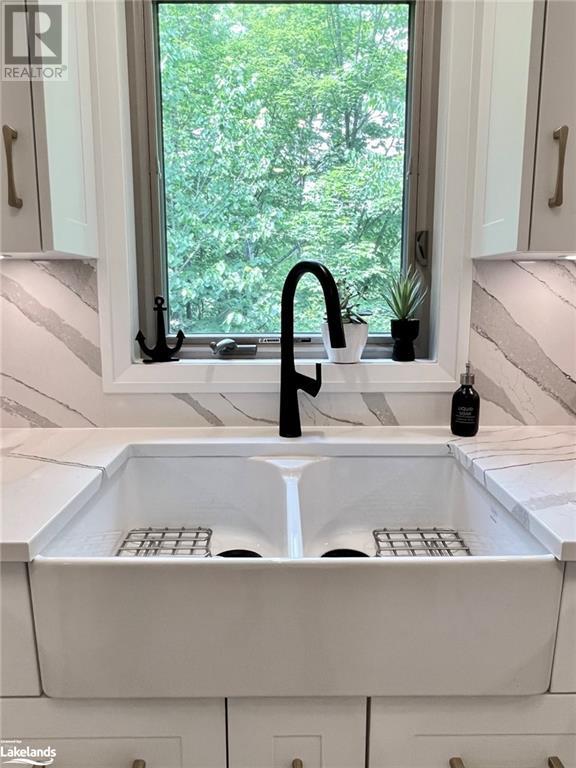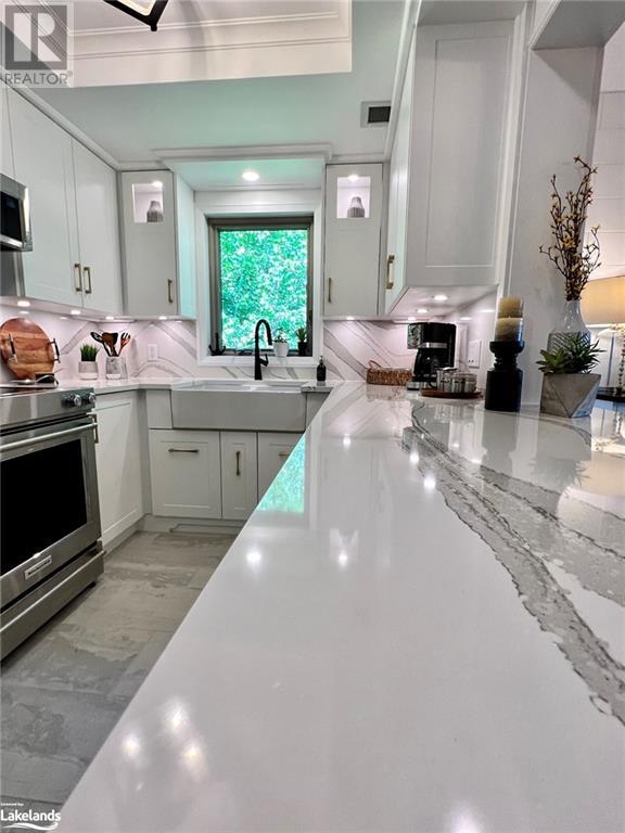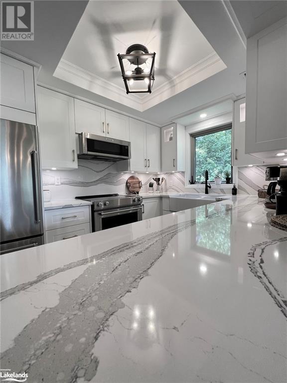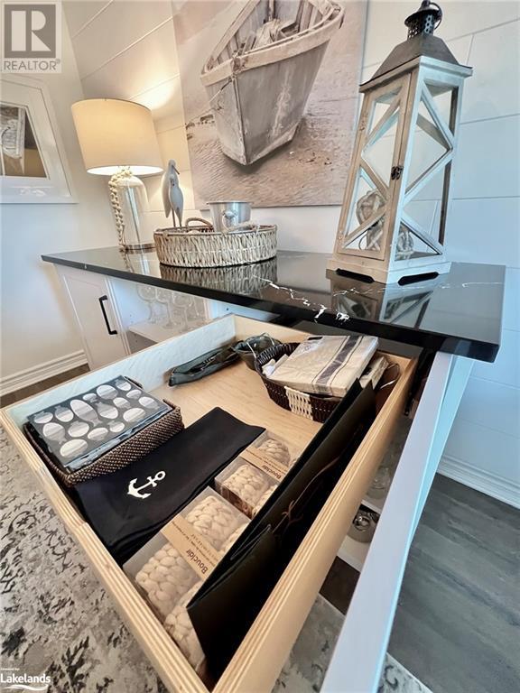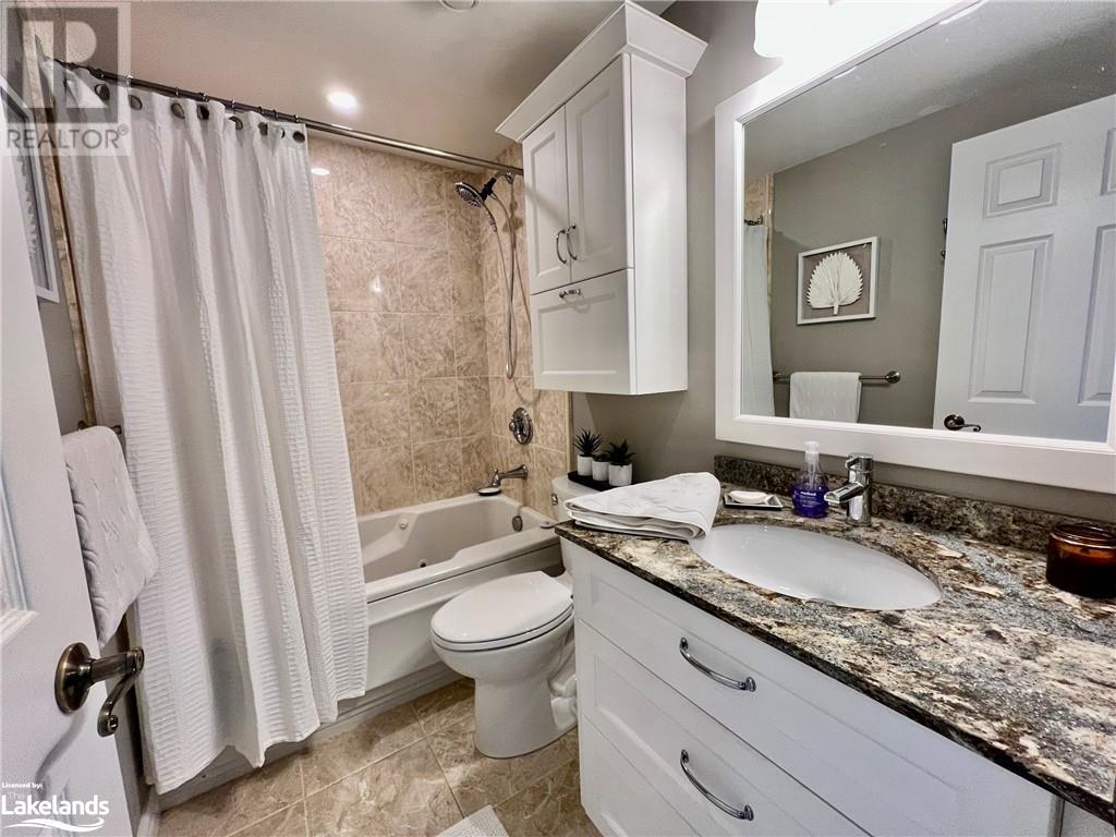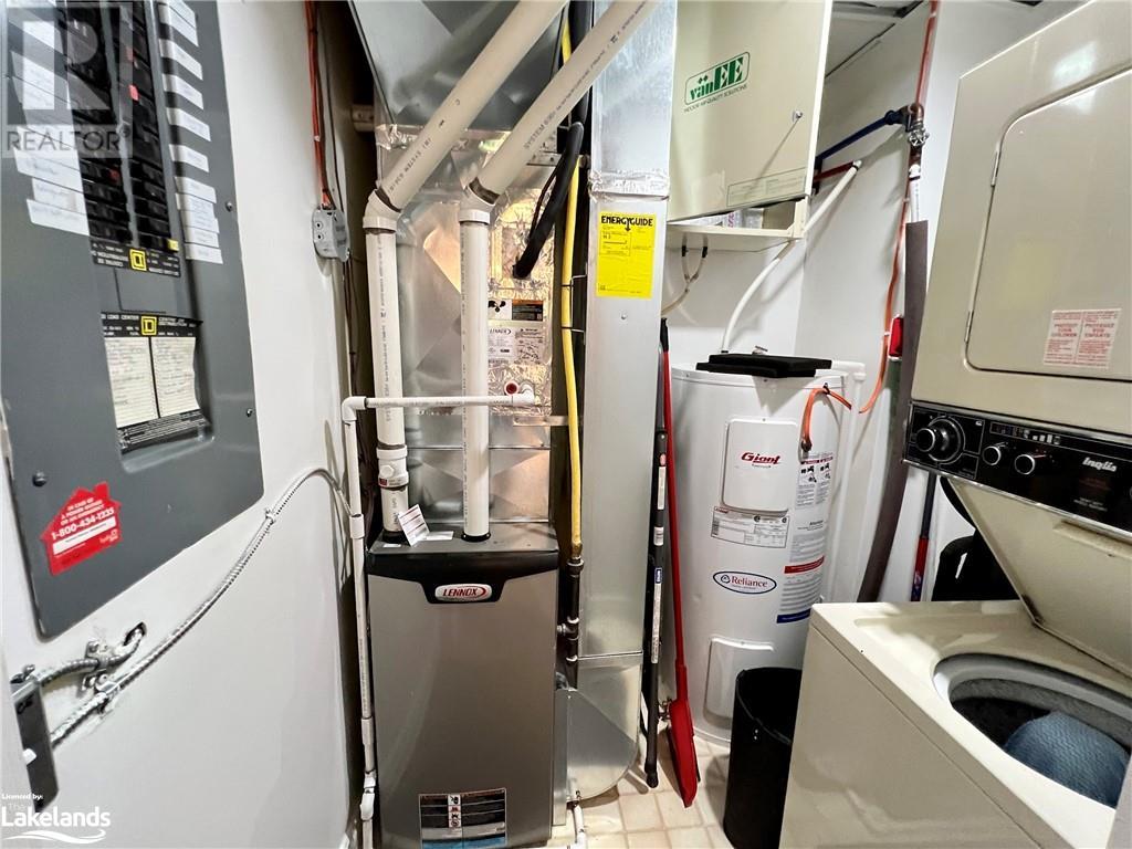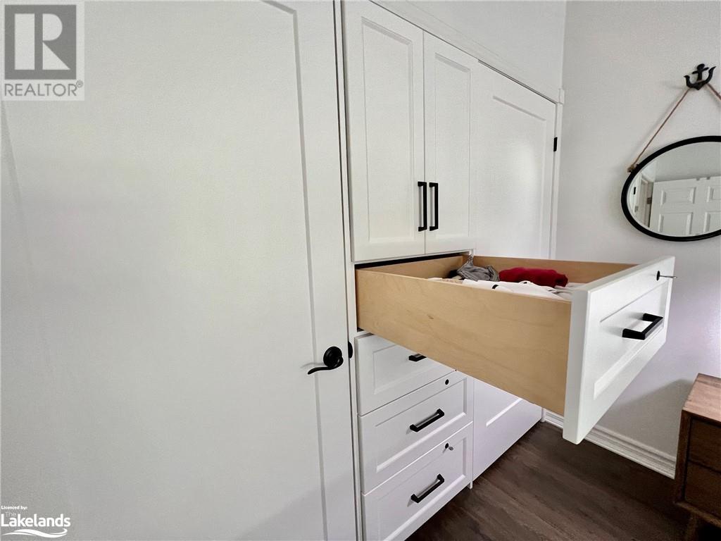 Grandview condo with NO STAIRS. Walk in ground level entrance makes this a desirable location but wait until you get inside! This is a very special condo that has been renovated sparing no expense. High end kitchen with Cambrian quartz countertops & back splash. The cabinets are extra large with all the added features of a high end gourmet kitchen. Frankie Farmhouse sink with Riobel faucets. Totally renovated with European plank flooring, built in book shelf in living room, built in bedroom closet system & cabinet in dining room with wine rack, deep drawers & quartz top. There is an bonus Bunkie style bedroom for sleepovers. Private patio with forest views & a front door sitting area. Gas furnace with warranty until 2027. Wood burning fireplace for that real Muskoka ambience. End unit with big bright windows. Just a short walk down to the swim dock. Lots of walking trails just outside your door. Close to town with all the amenities but yet far enough away to feel like country living. Pet friendly, people friendly community. Close to Algonquin Park, Arrowhead & Limberlost. 4 Season's of fun in Muskoka! No work - just enjoy. Perfect for snowbirds as a home or a get away from the city. Meticulously clean & well maintained. Low condo fees of $456/month. You gotta see this one! (id:22211)