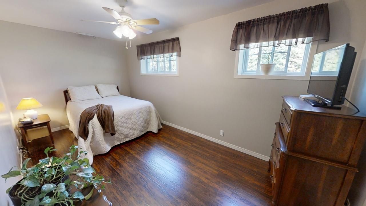 Looking for the convenience of town services but want more than a regular subdivision lot? Take a look at this immaculate bungalow on a half acre lot (101 ft X 228). Set back from the road this bungalow offers great privacy and a huge level back yard with mature trees adding to your privacy - room for a pool and more. Some of the features this home offers; ICF construction, in floor hot water radiant heat, air conditioning, access from the heated garage to the basement, large (40 ft X 10 ft) rear deck with two covered sections, formal dining area plus a large eat-in kitchen, main floor laundry, natural gas range, natural gas connection for BBQ, connection for a generator and much more. On the main floor you will find a large bright living room with a bay window overlooking the yard, off to the side of the living room is a formal dining area with plenty of room for a large gathering. From the dining room there are patio doors to the back deck and off to the side of the dining room you will find the kitchen. The kitchen features custom oak cabinetry, ceramic floors, natural gas range, separate eating area and a second set of patio doors to the back deck. From the deck you overlook the oversized fenced yard. The yard extends 90 plus feet from the back of the home and is 100 ft wide, plenty of room for a pool with still lots of room for the kids to play. The lower level offers a rec room, full bathroom and two additional bedrooms (one is currently a gym). Plus, the home is minutes from shopping, downtown Huntsville, access to a public beach & boat launch on Lake Vernon (Hutcheson Beach) and a short walk to Huntsville's McCulley-Robertson Recreational Park which includes ball diamonds and soccer fields.. A great home in a great location!