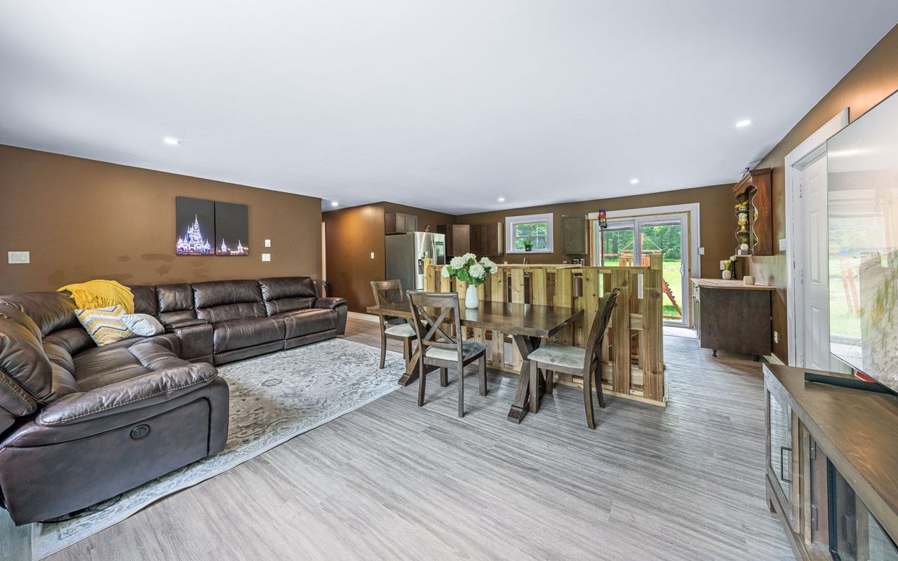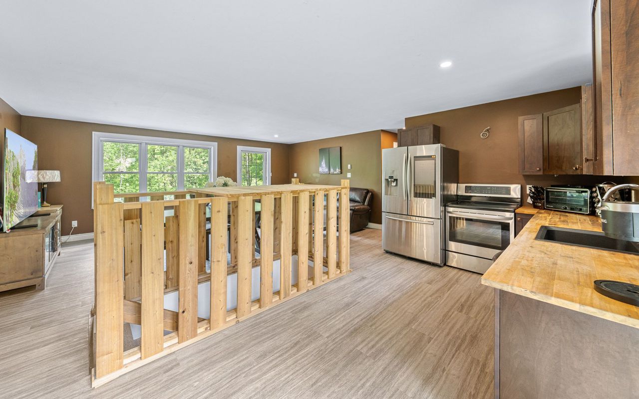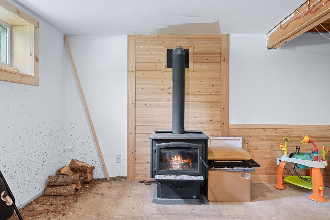 sprawling 3/4 acre lot surrounded by trees, boasting ultimate privacy. The home has high speed Fibre Optics internet, newer steel roof, 1 ½ car garage and lots of room for that growing family. There is also a generator interconnection on the hydro meter if you would like to add a generator. The airtight wood stove in the basement is a bonus on those chilly winter nights.