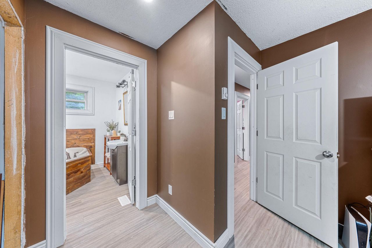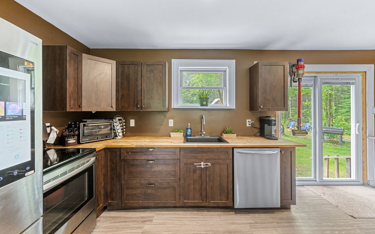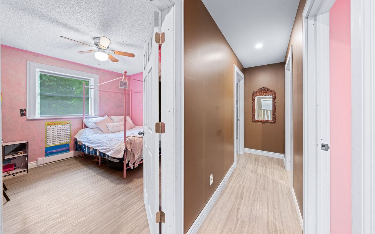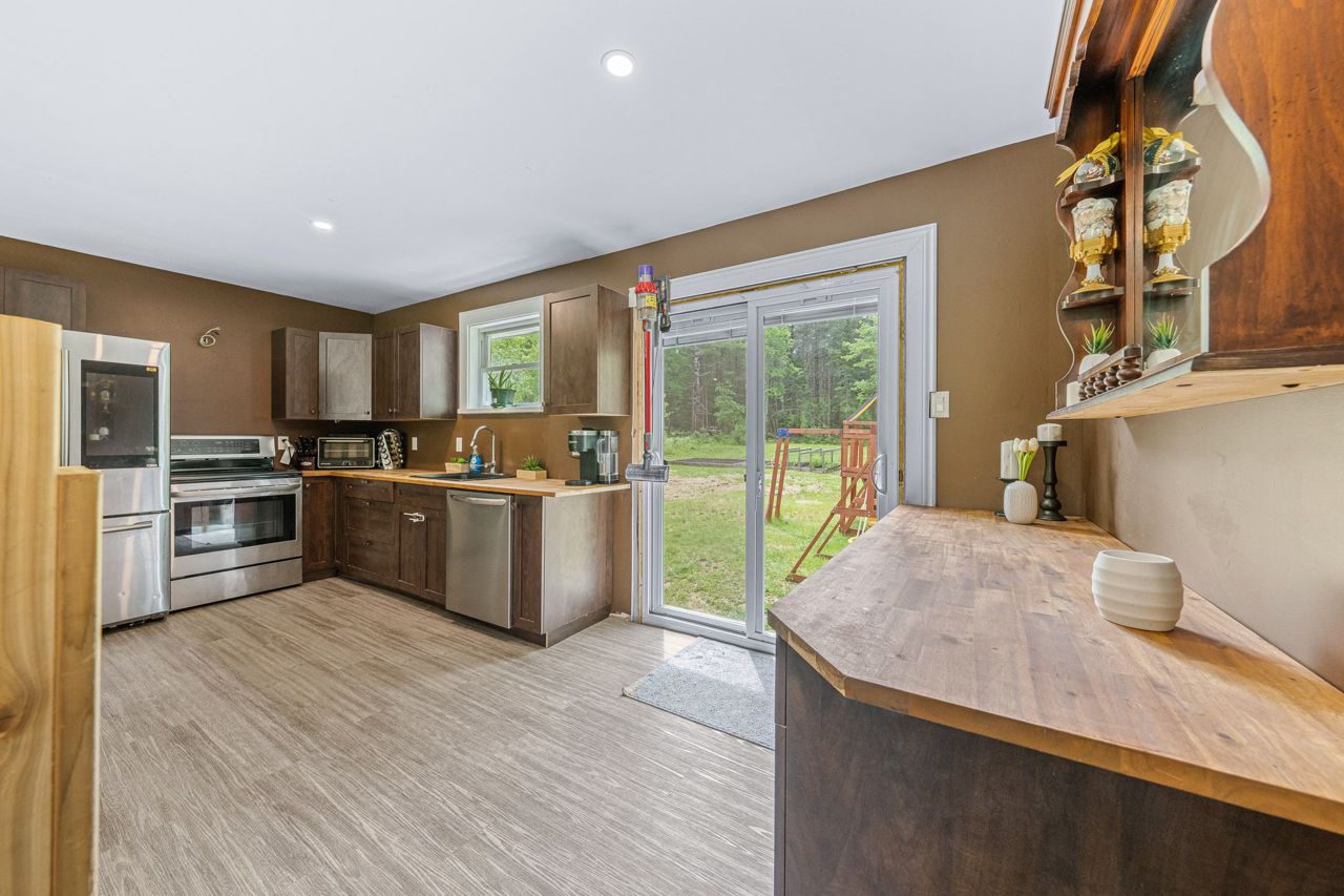 sprawling 3/4 acre lot surrounded by trees, boasting ultimate privacy. The home has high speed Fibre Optics internet, newer steel roof, 1 ½ car garage and lots of room for that growing family. There is also a generator interconnection on the hydro meter if you would like to add a generator. The airtight wood stove in the basement is a bonus on those chilly winter nights.