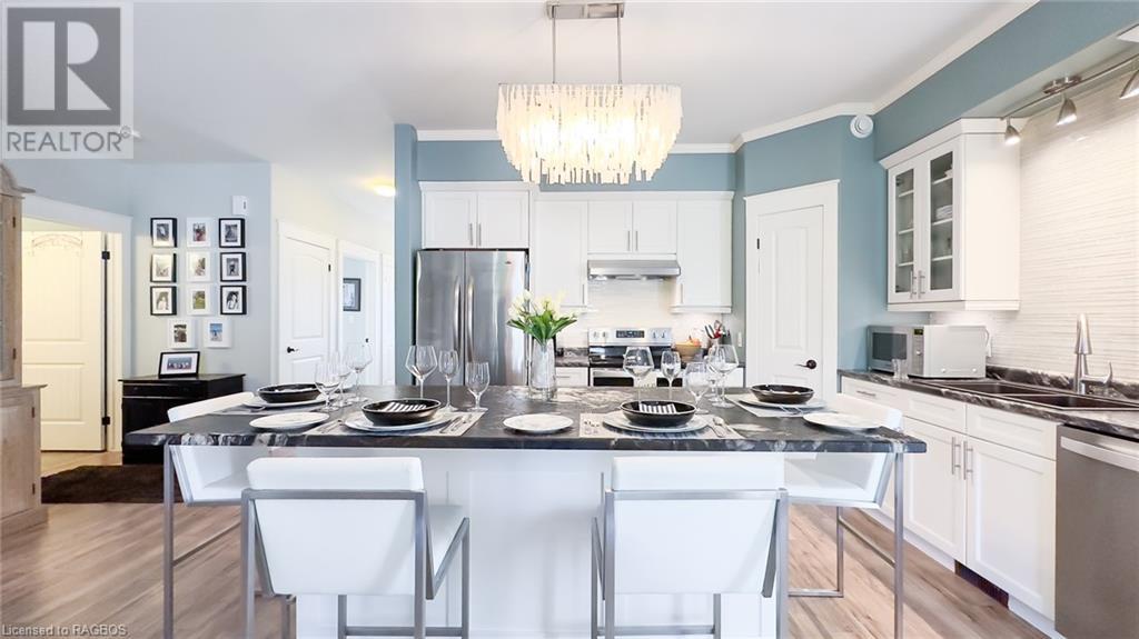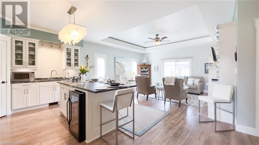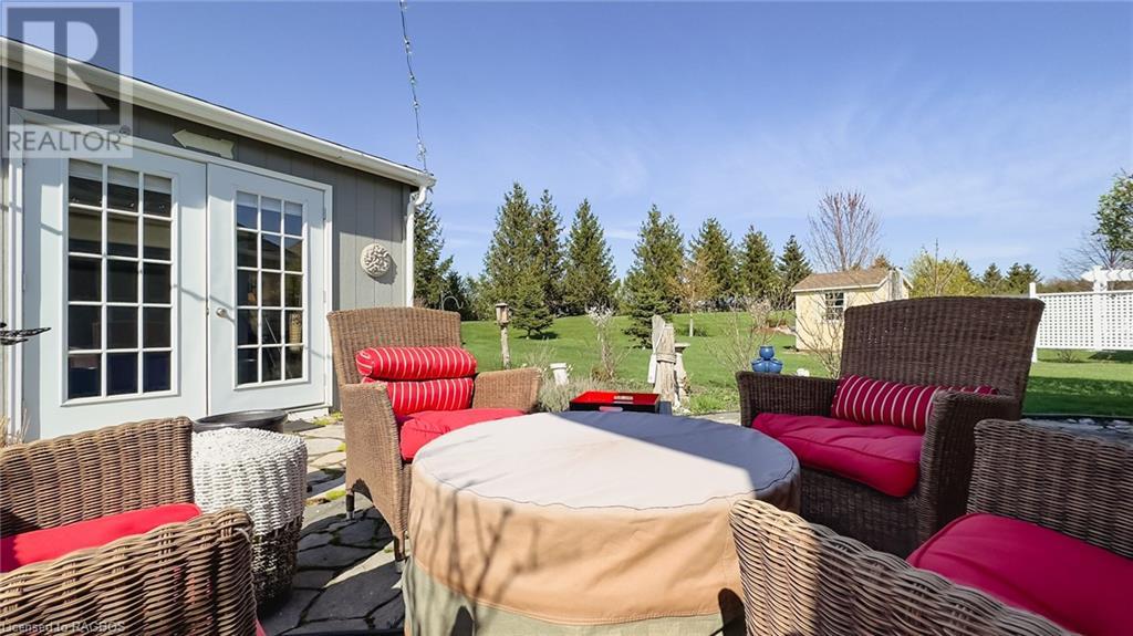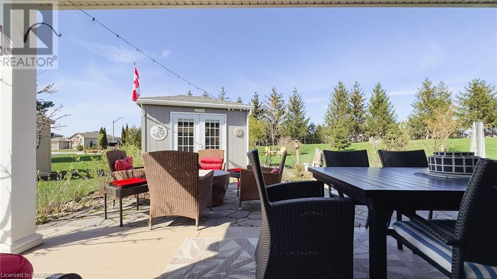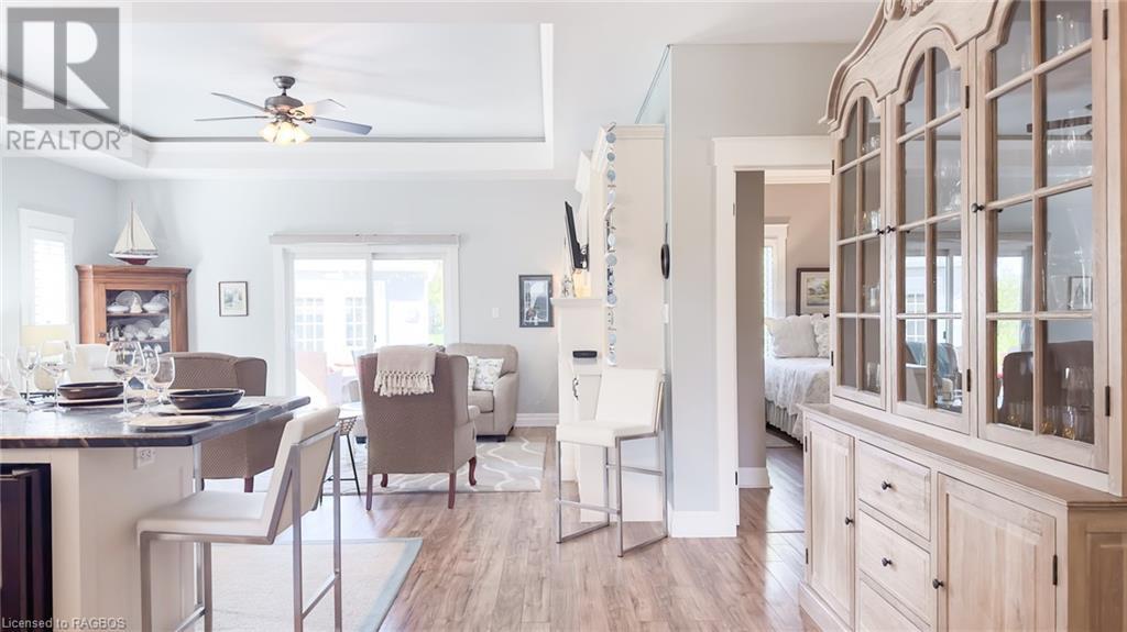 Located in the highly sought after Inverlyn Lake Estate sits this absolute pristine 2 bedroom, 1.5 bathroom bungalow. The meticulously cared for, fully accessible home offers a welcoming front foyer that flows nicely past a nice sized murphy bed/office/gym with closet and into a large inviting open concept great room. The kitchen offers a large leather finished quartz island, updated cabinets and walk in pantry. The tastefully decorated living room comes complete with a cozy Dimplex electric fireplace leading to patio doors overlooking a beautifully landscaped backyard (fully irrigated) that provides a covered deck area with a eye pleasing flagstone patio simply ideal for entertaining in all types of summer weather as well as a bunky that provides sleeping for four (queen and full beds)/ a garden shed/winter storage . This adult living community also offers a clubhouse, outdoor salt water pool, workshop, games room, exercise room, walking path around a man made lake , 90 acres of bush complete with walking trails, picnic area and RV storage with direct golf cart access to Ainsdale golf course! (id:22211)