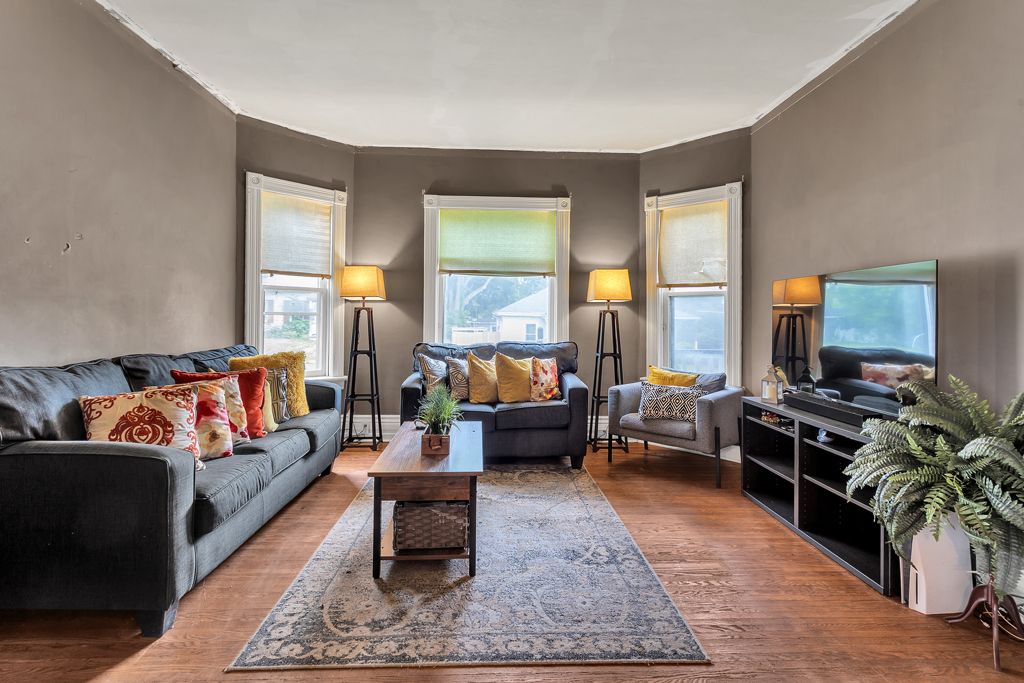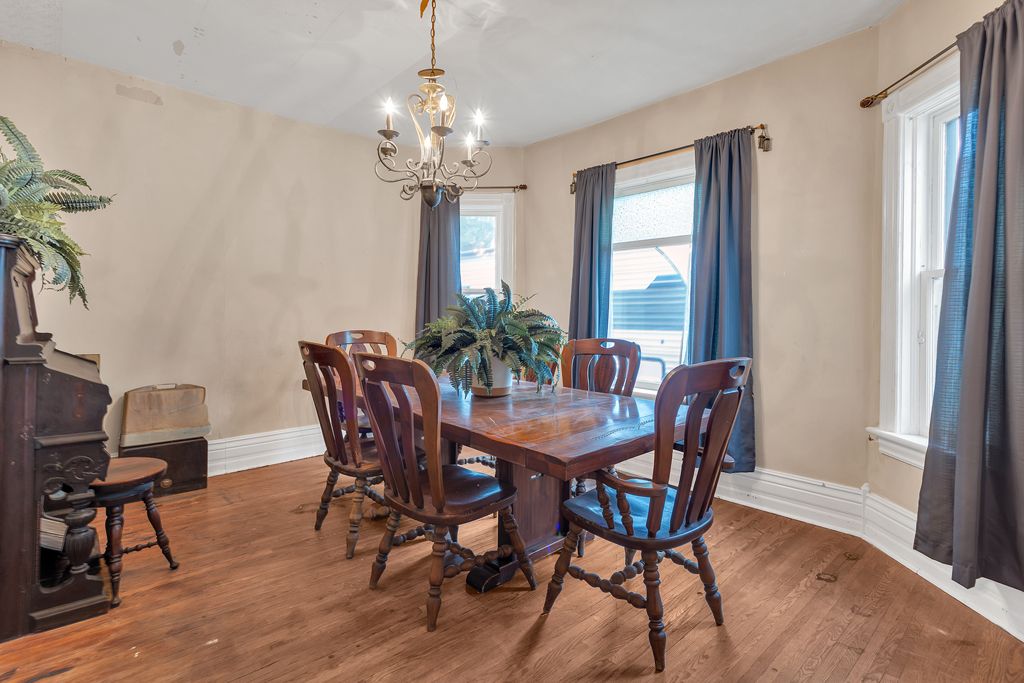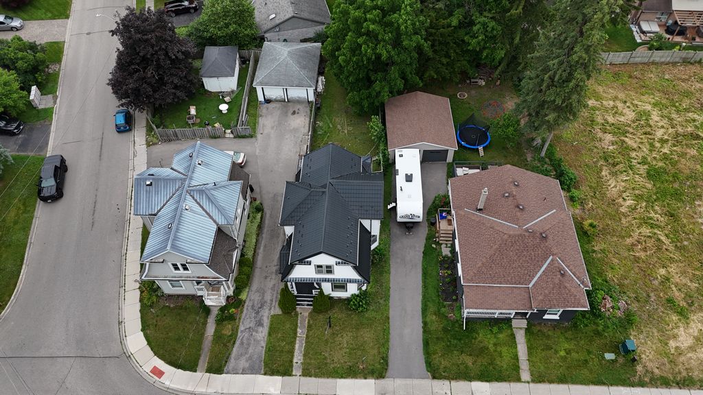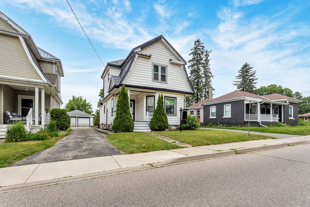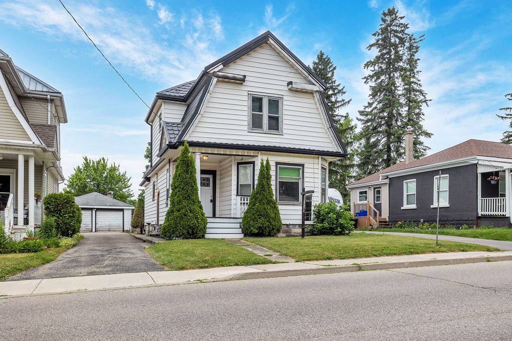 Renovations have begun-Looking for Handyman to complete! Big beautiful house layout, nice principle rooms- even a diningroom to entertain family groups. Cozy covered porch, detached garage, private secluded fenced backyard, parking for 2 vehichles in garage, 2 parking spots in front of garage doors, quick access to 401 and unique Farm House Style design- very sharp. Features are; spray foam insulated foundation, newer 100 amp electrical breaker panel, approx 10 year old furnace and central air and life time Steel roof. Main floor bath and laundry renovation has begun. Note- shared driveway. House is waitng for an adventurous family to make this house whole again.