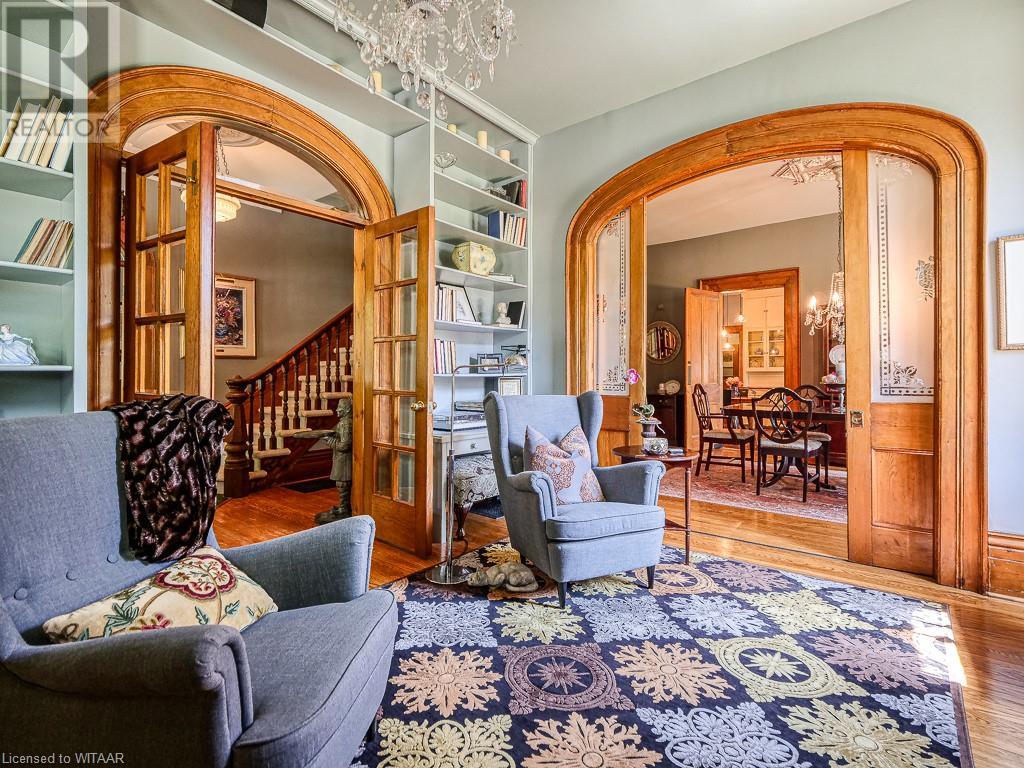 Timeless Elegance! Savvy buyers recognize when a distinct, once in a lifetime opportunity presents itself; allow us to introduce Watterworth House at 285 Oxford Street! Prominently established in Ingersoll's coveted historic south, a short stroll to: shops, eateries, parks, art & rec centers, trails & schools. Woodstock, London, KW, Cambridge, Brantford & Stratford are an easy drive. This distinguished home is a showcase of 1890’s architecture! Unparalleled style & character preserved in pristine museum-caliber condition. It spans 3,600+ sf of richly appointed space with possibilities to expand into the spacious walk-up attic & partly finished basement. Inside, you'll be captivated by impeccable craftsmanship & wrapped in warm wood tones. Original: mill work, leaded glass, pocket doors, french doors, ceiling medallions, crown/cove & ceiling moldings, 10.5' ceilings, 4 fireplaces, hardwood, arched transoms & more! Flexible main flr living spaces including a living rm large enough for your baby grand piano, family rm, office/den & a charming sunroom that opens to the deck. The kitchen combines rustic elements like exposed brick & wainscoting with the traditional appeal of full height cabinets & an island. Vintage styling in the main flr powder rm with its antique pedestal sink. Delightful laundry/mudroom with fireplace, wainscoting & a 2nd staircase up that adds functionality. Ascending the grand staircase, you’ll find a sprawling landing, 4 stately bedrooms & sitting rm/5th bdrm. Your beautiful primary bdrm has a modern ensuite! Jet tub, shower & sauna in the main bath. The exterior is equally as spectacular! Professionally landscaped grounds & multiple outdoor sitting areas await along with a gorgeous, heated inground pool, 2 water features & hot tub. The coach house with loft, has been creatively transformed into studio, pool house & garage. Seeing this extraordinary estate is believing! It's your time to become part of its history & create your own story here! (id:22211)