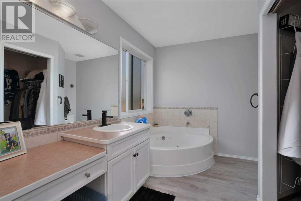 Wonderful 2 story in a family friendly neighbourhood! Welcome home to this 4 bedroom, 4 bath home. The attached garage is fully heated with a fresh coat of paint and roomy enough for 2 vehicles and kids bikes etc. The main floor living area offers a laundry room, 1/2 bath, kitchen with new dishwasher and microwave hood fan, dining room area with a garden door leading to the back deck and a living room featuring a gas fire place and new vinyl plank flooring. Moving upstairs you will find 3 freshly painted bedrooms, a 4 pc ensuite off the primary bedroom & walk in closet, and an additional 4 pc bath. Downstairs has been completely repainted and new flooring throughout. It has an family room, storage, 4th bedroom and a 4 pc bath and the utility room. Outside you find the yard is spacious, private and the uppper and lower deck provides optioins of sun exposure for those suntanning days! This home has it all with central air conditioning, heated garage, main floor laundry and more! Move in ready! (id:22211)