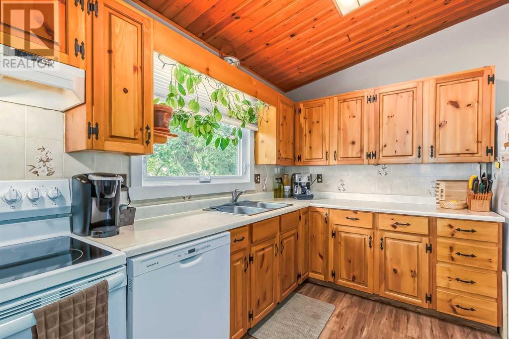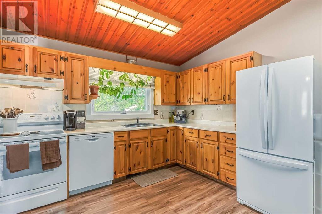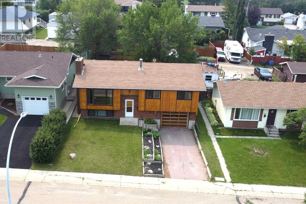 Welcome to this beautiful 4 bedroom bi-level home with a single attached garage, located on a quiet, family friendly street! This charming property boasts a fully developed interior featuring TWO cozy fireplaces and elegant cedar vaulted ceilings, providing a warm and inviting ambiance throughout. The large fenced yard is the perfect quiet retreat to enjoy ~ there is a large rear deck, a hot tub, RV parking and lots of mature trees. Main floor laundry is also a really convenient feature. This home is perfect for comfortable living and entertaining. (id:22211)