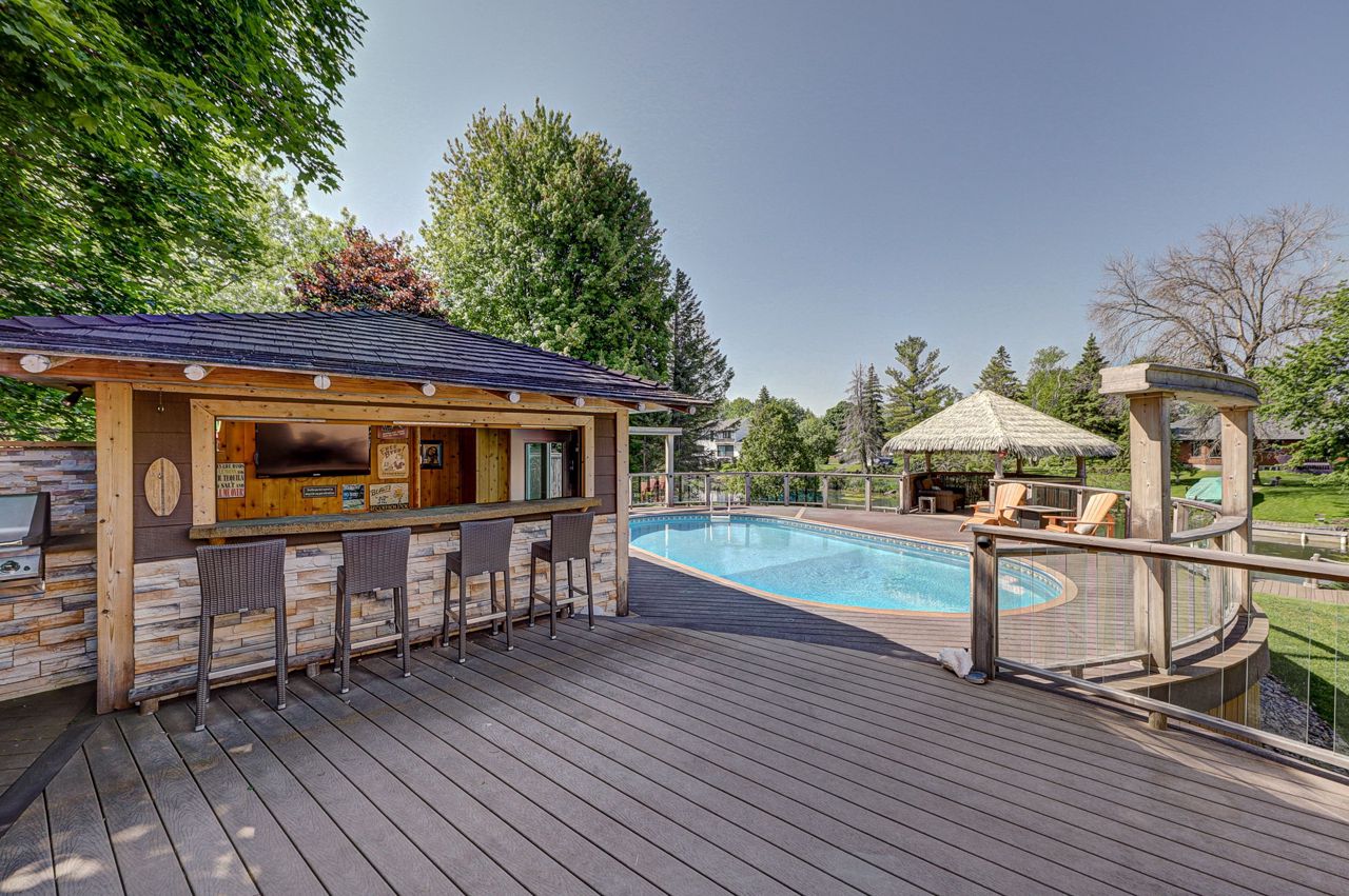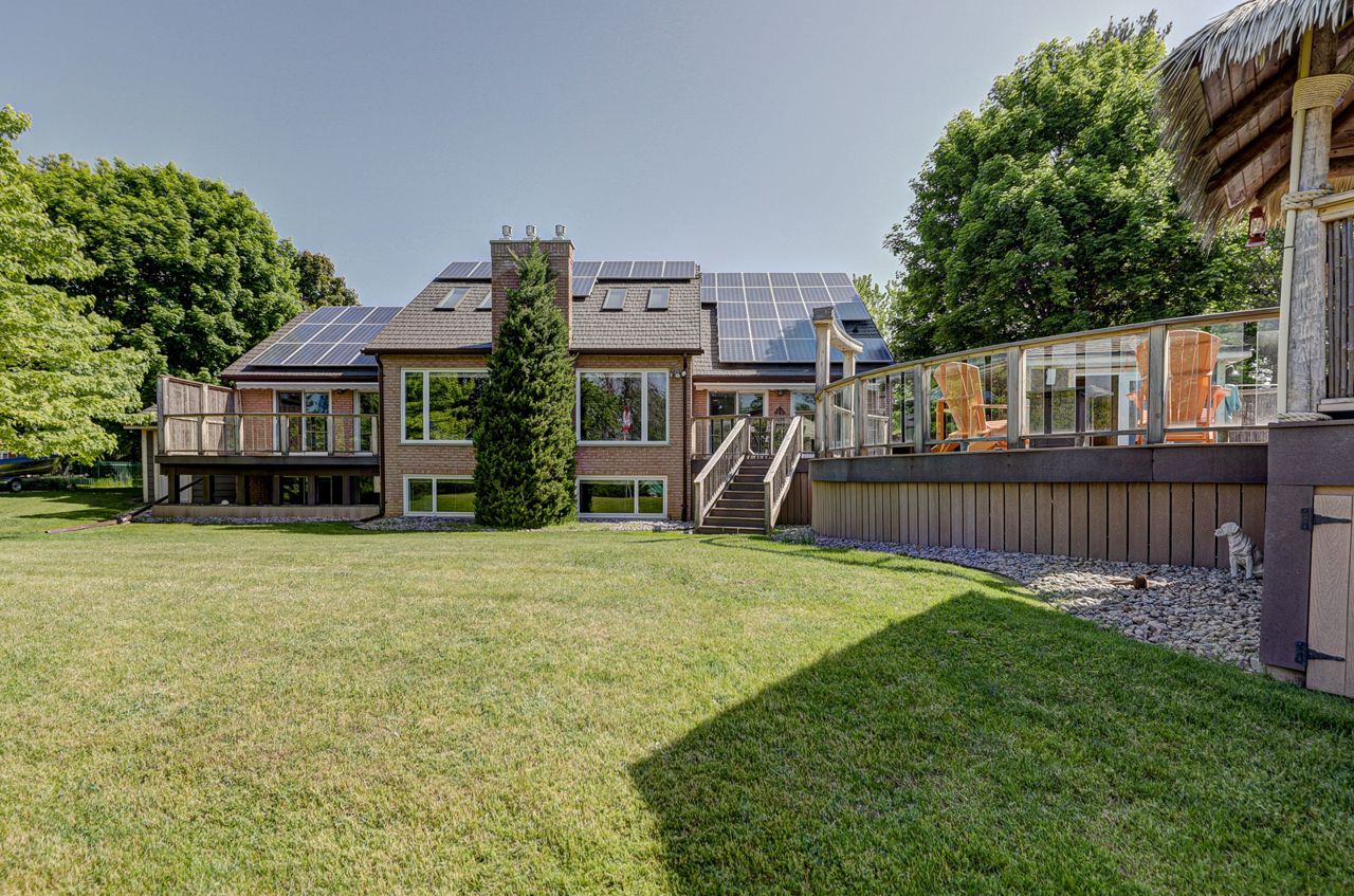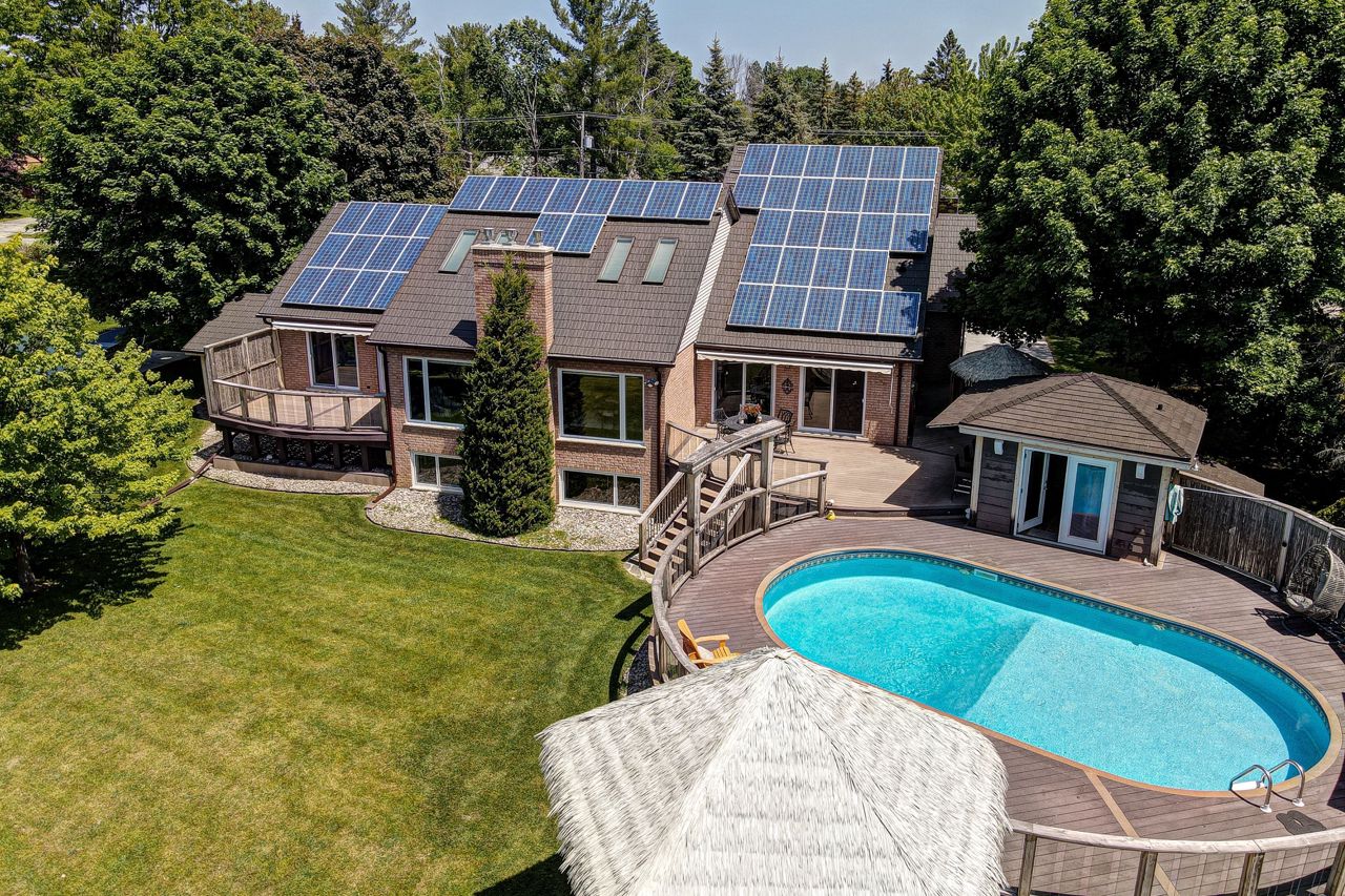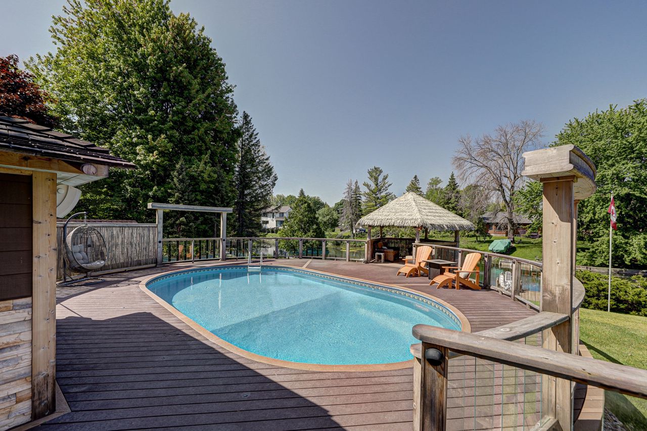 This home has been meticulously maintained and exudes pride of ownership. Quality construction and craftsmanship is evident with no expense spared to improvements or upgrades. Enjoy life on the water with 146 feet of frontage on canal with access to Cook’s Bay on Lake Simcoe. Entertain in the private backyard oasis with above ground saltwater pool, extensive composite decking, built in cedar bar with washroom including outdoor shower, covered tiki lounge area, and built/in barbeque. Inside be welcomed to a bright and airy home filled with natural light. Some fine features of this home include: vaulted ceilings in great room, hardwood floors, skylights, multiple walkouts, geothermal heating, generator, steel roof, income generating solar panels, heated and insulated garage with high ceilings to accommodate a car lift. This is a must-see home located in the fantastic quiet lakeside community of Gilford, known for its proximity to commuter routes and Bradford or Barrie Go Service.