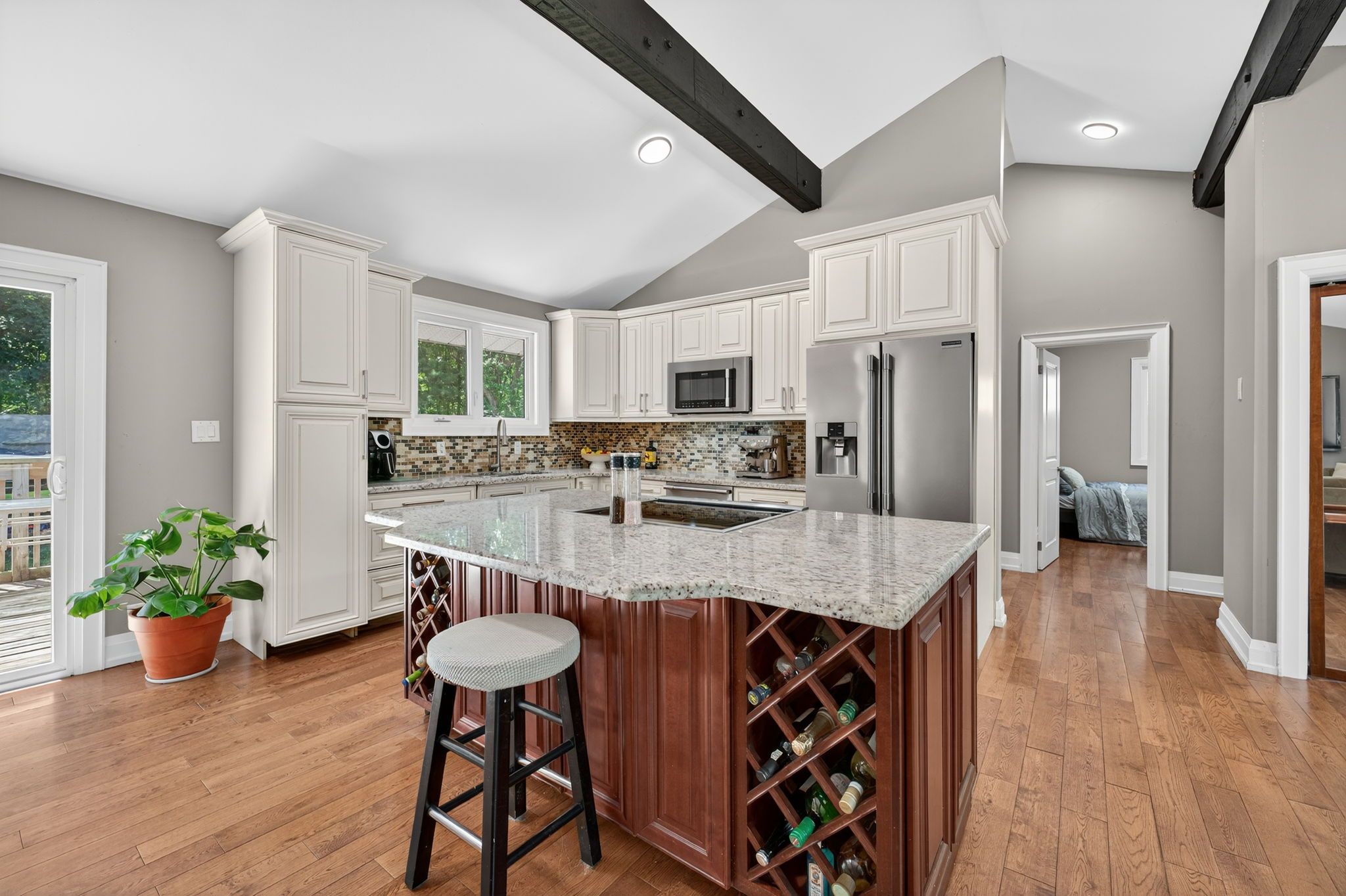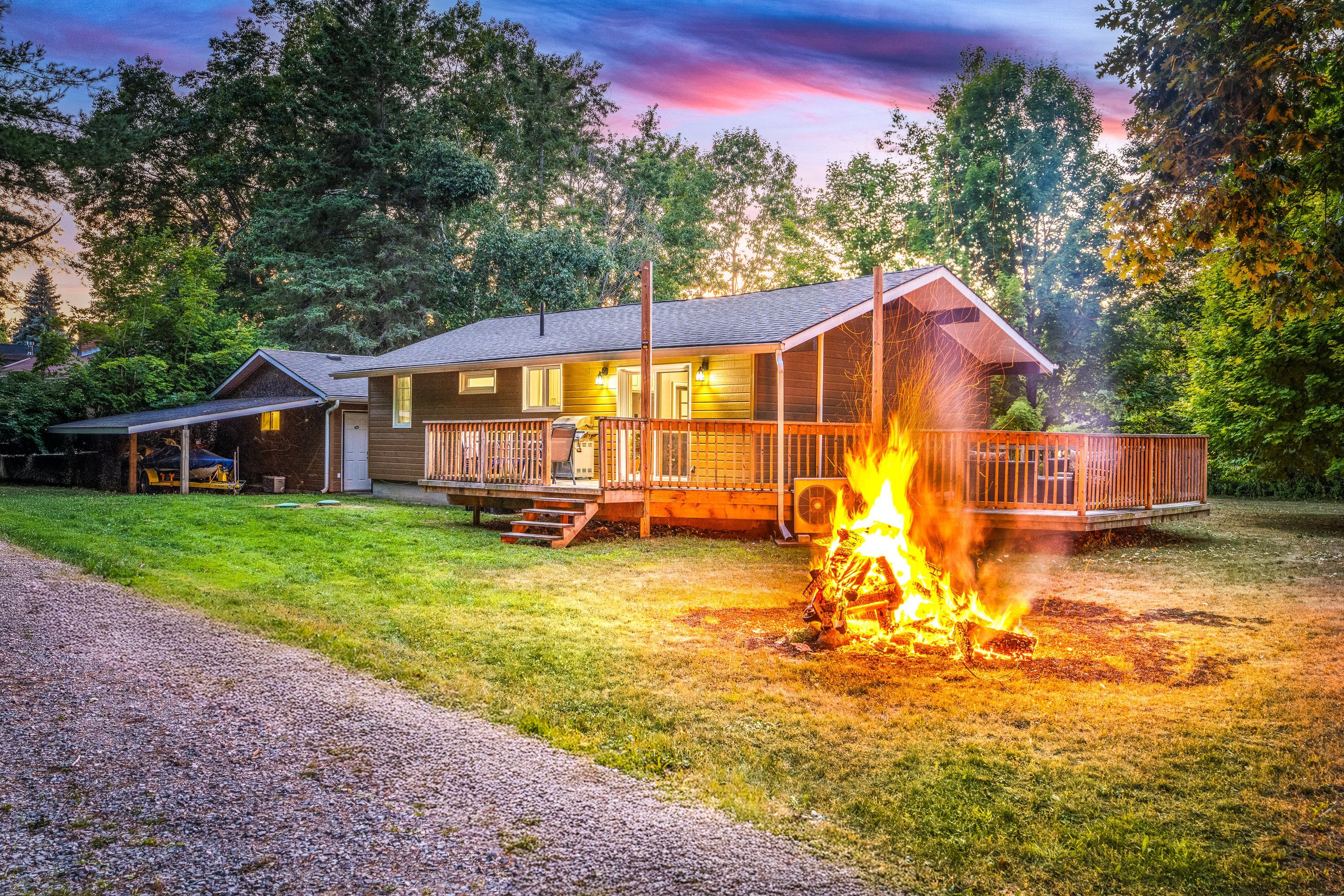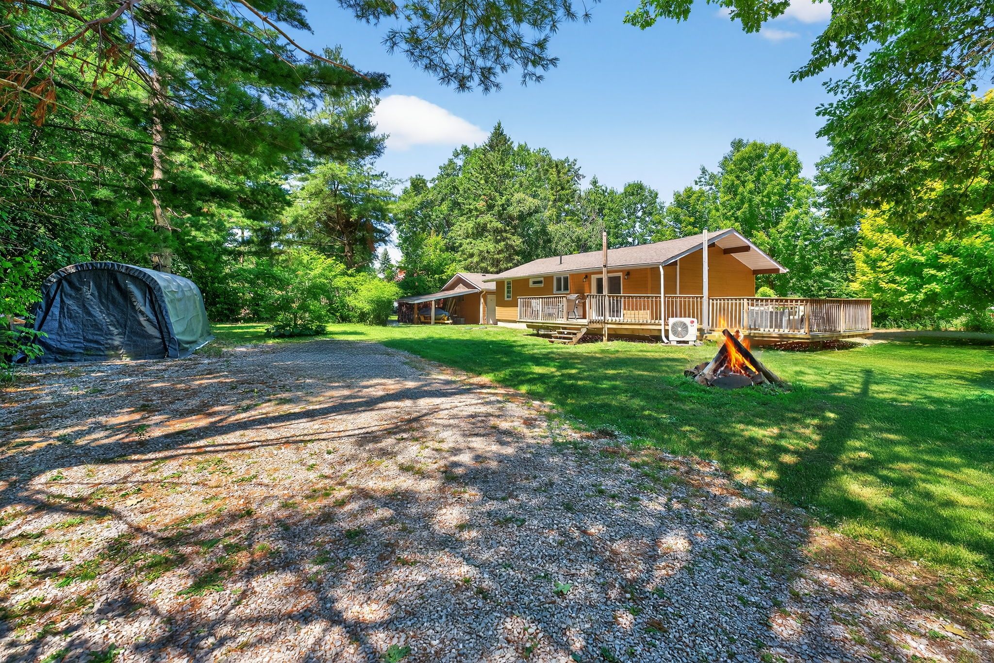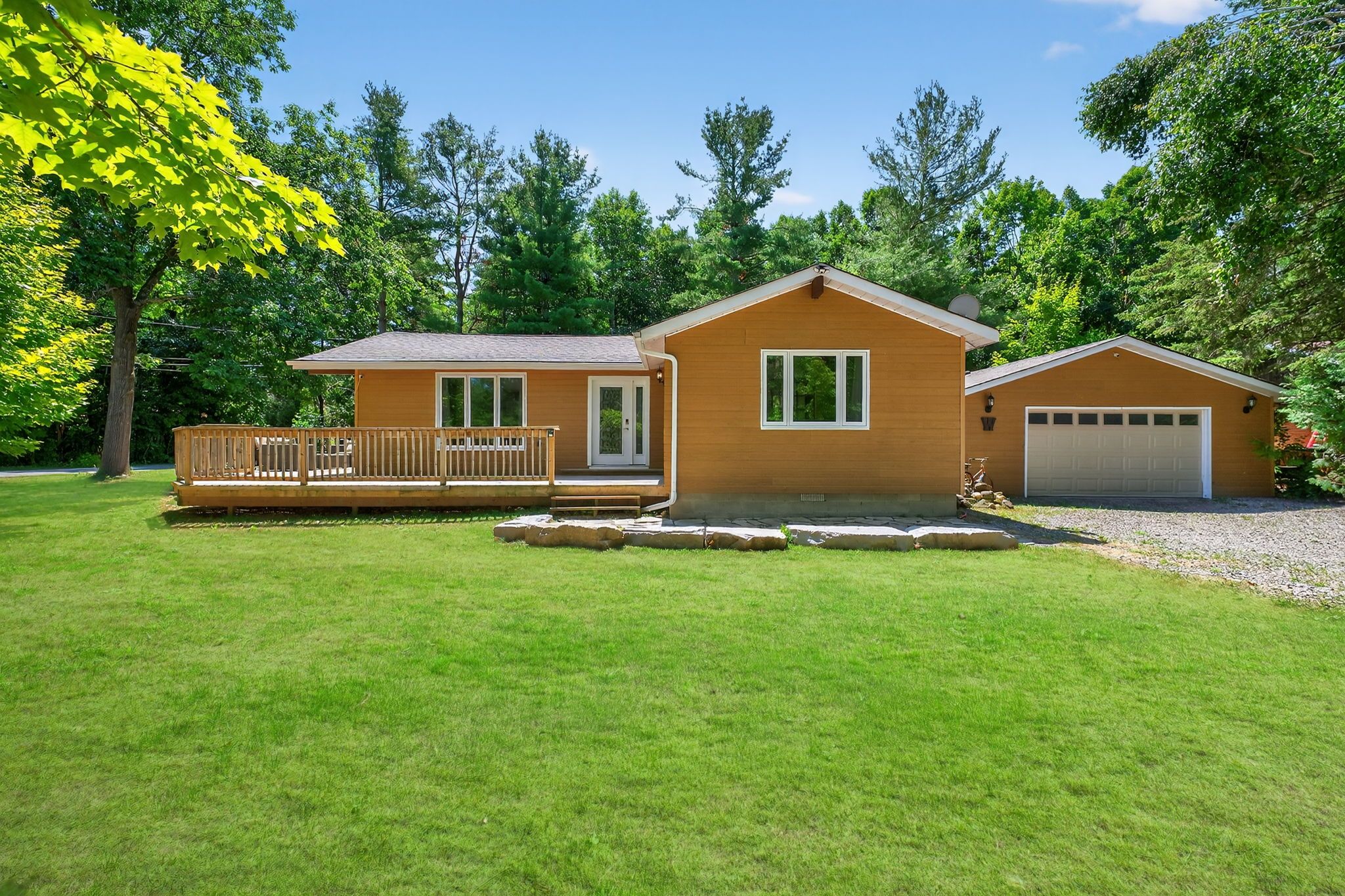 Beautifully Maintained 3 Bedroom Ranch Bungalow Nestled On Large 114 x 150 Ft Corner Lot, Surrounded By Mature Trees With Lots Of Privacy! Fully Finished & Insulated Detached 2 Car 576 SqFt Garage With Side Entrance, Gas Heating & 60 AMP Electrical Panel, Plus Additional 12 x 25Ft Carport Attached. A Mechanics Dream Or Perfect For Extra Storage! Inside Boasts An Open Concept Layout With Hardwood Flooring Throughout, Beautiful Cathedral Ceilings With Rustic Wood Beams, & Large Windows Throughout. Spacious Kitchen Features Granite Counters, Stainless Steel Appliances, Backsplash, Double Sink, & Large Centre Island, Perfect For Preparing Any Meal With Lots Of Extra Cabinet Space! Conveniently Combined With The Dining Area, Walk-Out To The Backyard Wrap Around Pressure Treated Wood Deck, Ideal For Hosting Family Summer BBQ's Or Enjoying Your Morning Coffee! Living Room With Gorgeous Stone Accent Electric Fireplace & Large Windows Overlooking The Front Yard. 3 Large Bedrooms Each With Closet Space & Vaulted Ceilings, Plus A 4 Piece Bathroom With Granite Counters. Backyard Is Surrounded By Mature Trees, Enjoy Tons Of Green Space Perfect For Children To Play Or Add Your Personal Touch! Insulted Crawl Space With Heater. Heat Pump & Ductless A/C Unit (2020). Hardwood Flooring (2018). Granite Counters (2018). 200 AMP Panel In Home + Separate 60 AMP Panel For Garage. Asphalt Shingle Roof (2018). Backyard Deck (2018). Water Filtration System (2023). Perfect Location Just 5 Minutes Drive To Friday Harbour Resort With Activities For The Whole Family To Enjoy, 4 Minute Walk To Big Bay Point Golf & Country Club, & 2 Minutes Drive To Big Bay Point's Dock! All While Still Being Just 15 Mins Away From Barrie, Park Place Plaza, Groceries, Shopping, Parks, Schools, & Highway 400!