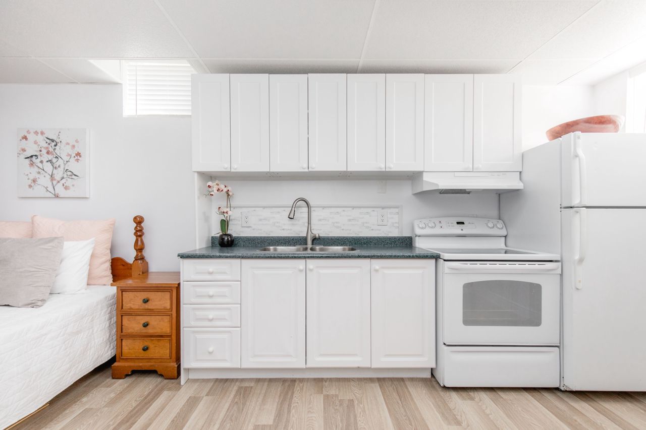 This recently renovated 4-bed, 3-bath gem offers modern comfort and style. The sun-filled galley kitchen has a charming breakfast area flowing into the cozy living room with a fireplace and walk out to the deck. The fully finished basement with a separate entrance, second kitchen, bedroom, bathroom, and laundry room offers in-law suite potential or rental income. The desirable and spacious pie-shaped lot offers a fully fenced backyard with deck for outdoor enjoyment and shed for extra storage. Conveniently located near beaches, schools, and shopping, with easy access to major commuter routes. With 1,827 sq ft of living space and ample parking, this home combines comfort, style, and versatility. Don't miss out!