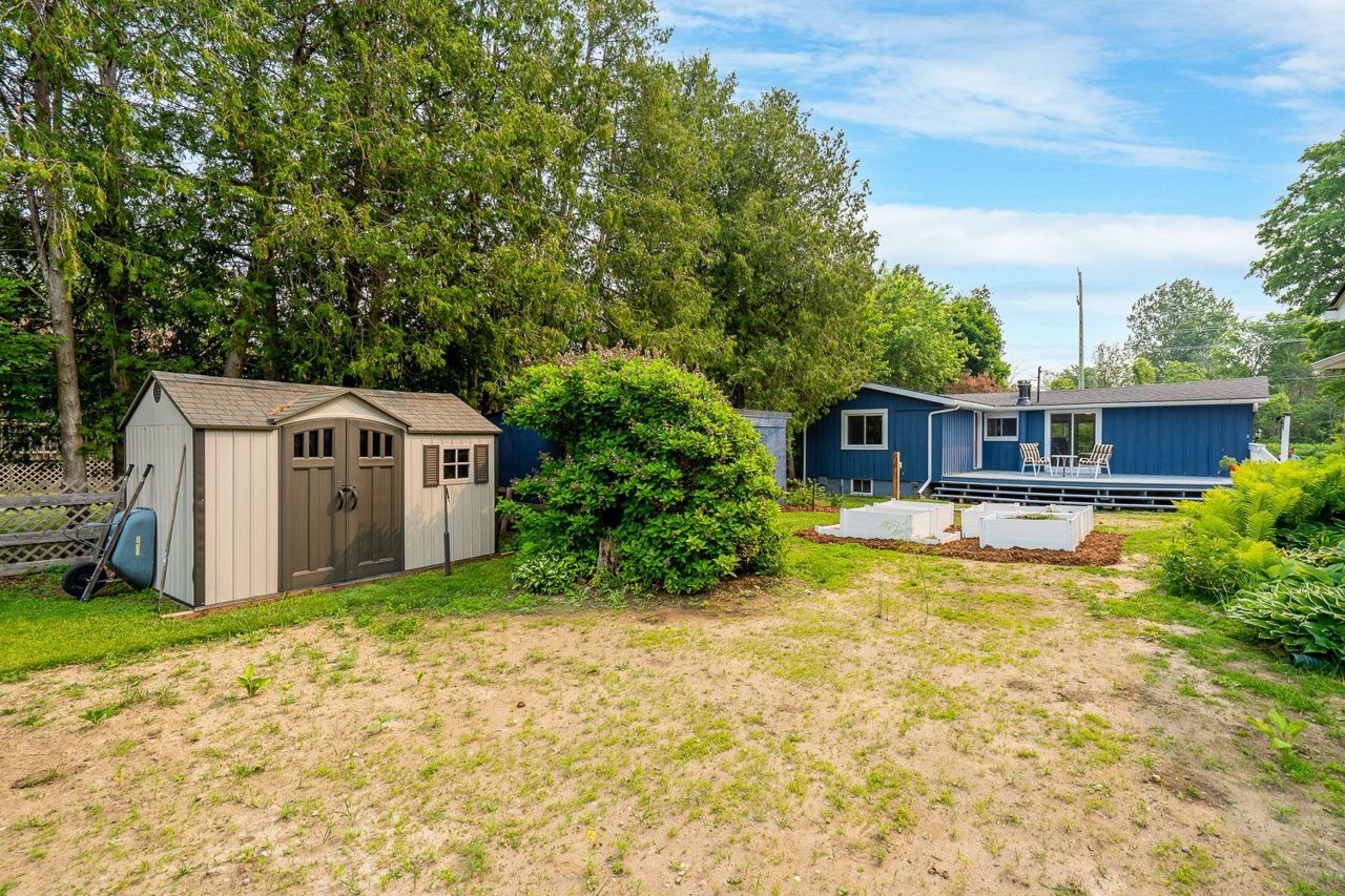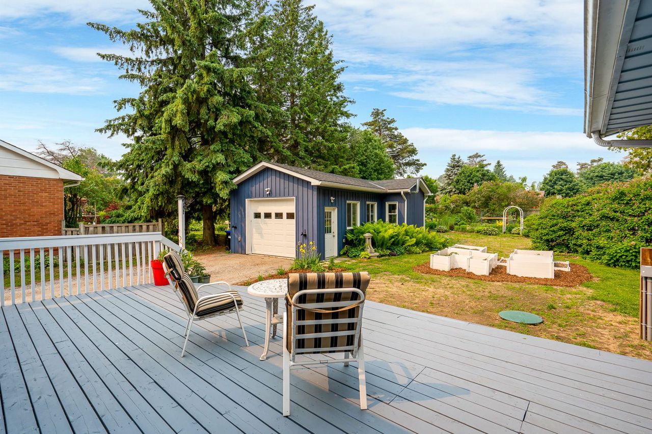 Well cared for and tastefully finished 3 bedroom bungalow on 1/3 of an acre just a minute from the beach! Well set back from the road with long paved driveway. 2 BIG VALUE ADDS HERE: A full basement with full height ceilings, which is rare in the area, and an amazing double deep, tandem, heated 15 x 30 garage/workshop with hydro, built just 6 years ago with 2 bay doors, one being a drive thru to the rear yard. Mostly fenced backyard also features a large private deck, 2 additional sheds, extensive perennial gardens, and a brand new professionally installed septic system. Main floor is very clean and has a very comfortable, bright and inviting feel with open concept layout and and lots of windows. Solid kitchen with plenty of countertop space. Updated bathroom with sliding glass shower doors. New front and rear doors, covered front porch. Gas FP in basement. If you're into working on cars or need to store a boat etc., you'll absolutely love the shop.10 mins to GO Station, close to all amenities and HWY 400. Click "View listing on realtor website" for age, sq footage, prop taxes and more.