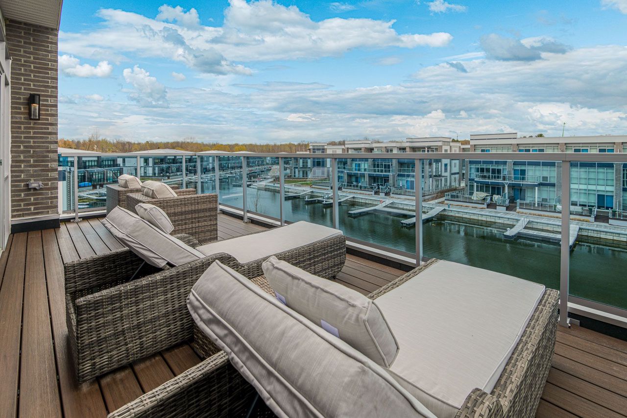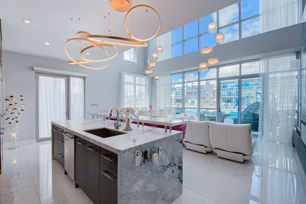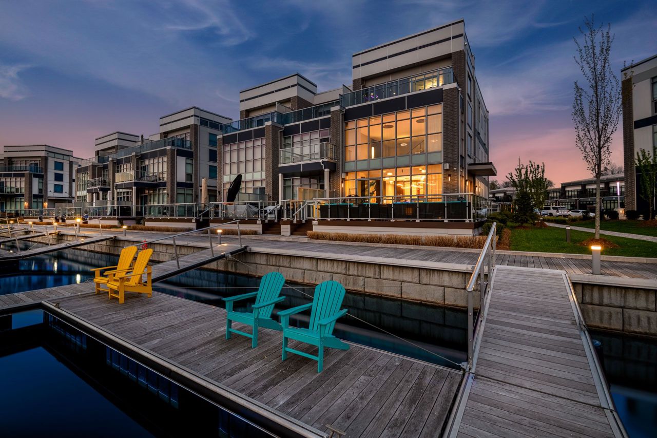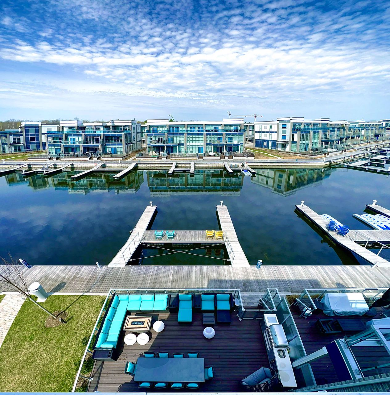 This show stopper Miami influenced town is sure to please. Located in the spectacular Friday Harbour Resort, this waterfront retreat boasts more than $750,000 in quality upgrades. The garage alone will impress! Complete with custom epoxy flooring, heat, custom LED coloured lights, fridge/freezer & T.V. with surround sound system. The lakefront deck will be the heart of your entertaining with an outdoor kitchen, custom gas fireplace, large open space for lounging, sunning, BBQing, also equipped with a sound system & your own private 40' boat dock with electricity. The interior is breath taking with 5 large bedrooms & 4 bathrooms. The primary suite is complete with a walk in closet and a luxurious spa like ensuite. The show doesn't stop here... there is an in-suite elevator, a third floor butler station, all bathrooms are custom designed with exquisite CIOT tile and tricked out with LED coloured rain showers. No detail has been missed. This home is truly something to behold.Utilities extra, Lifestyle investment: club fee $460.43/month. Resort fee $6,295.12/year. Buyer to pay 2% plus hst entry fee to Friday Harbour