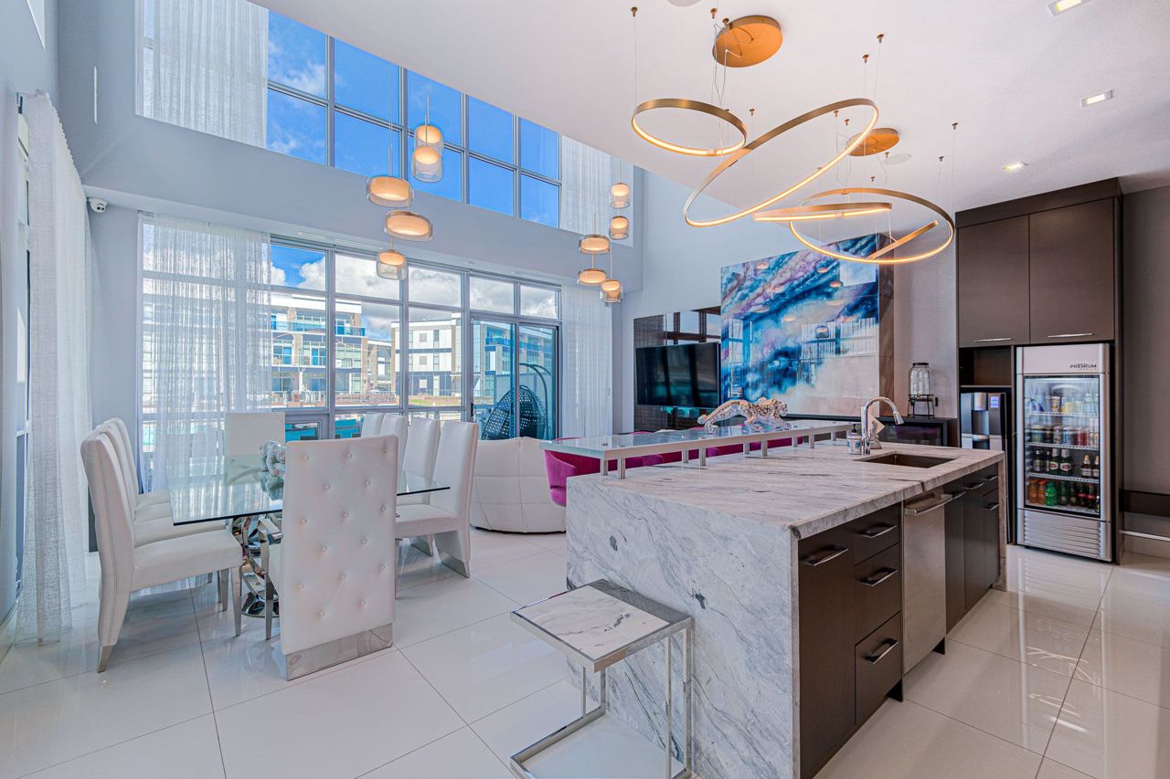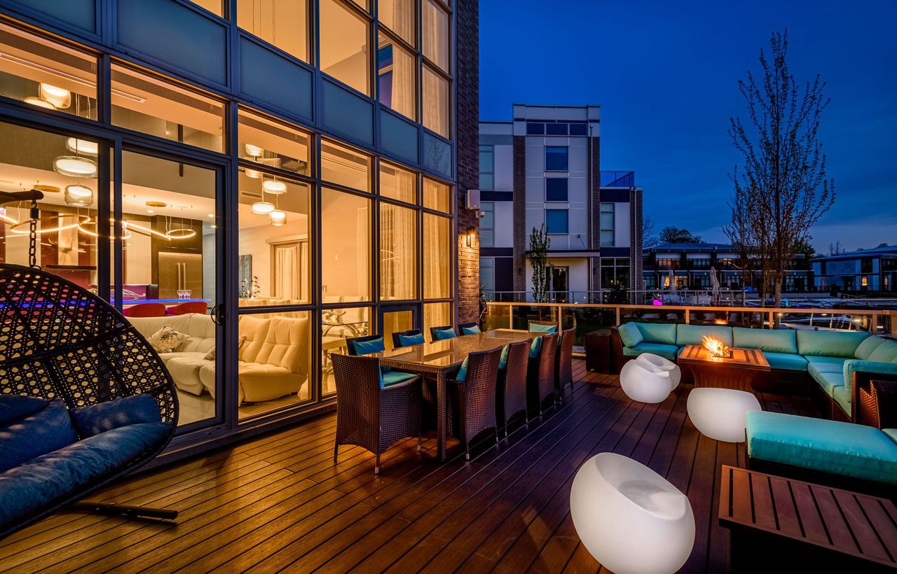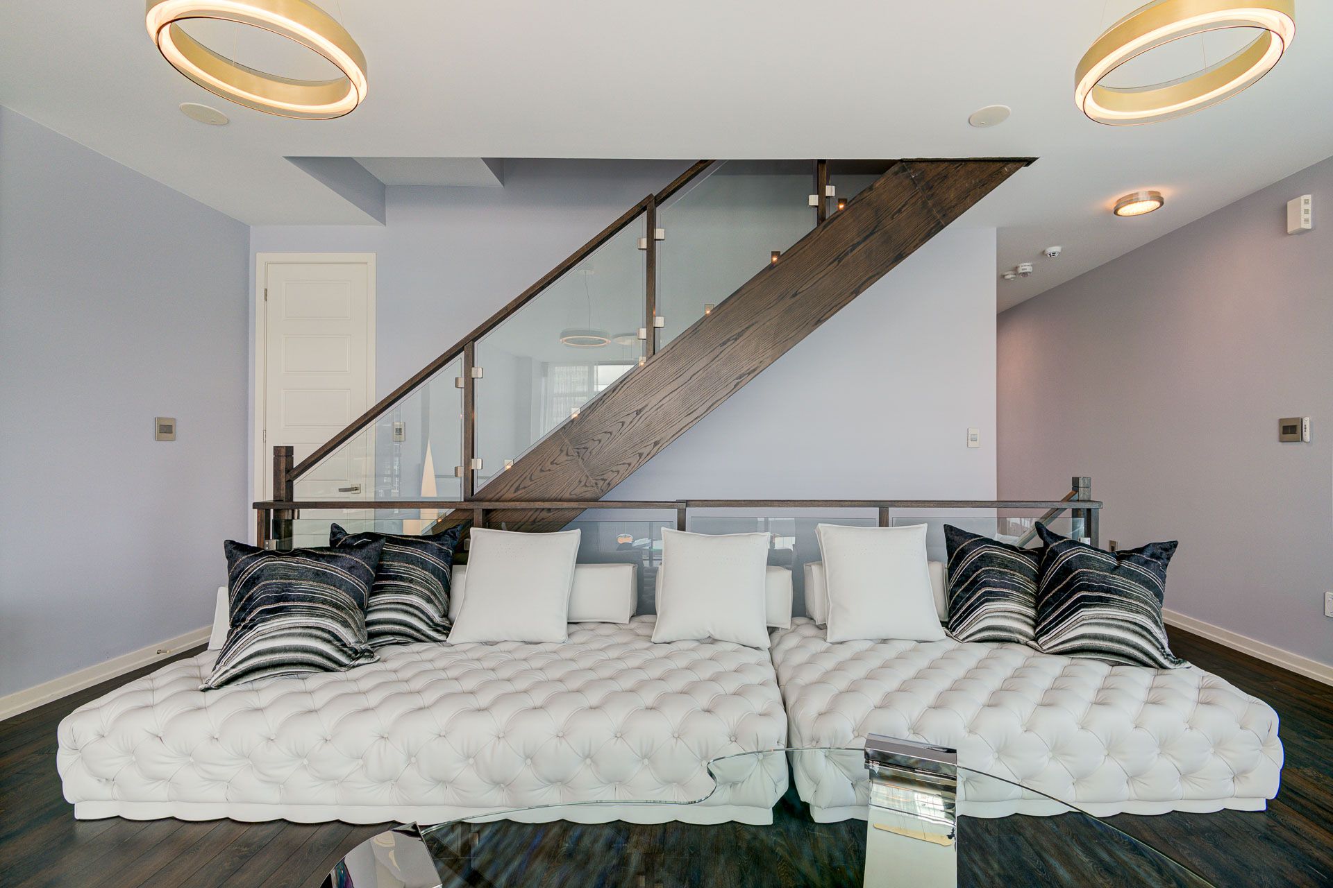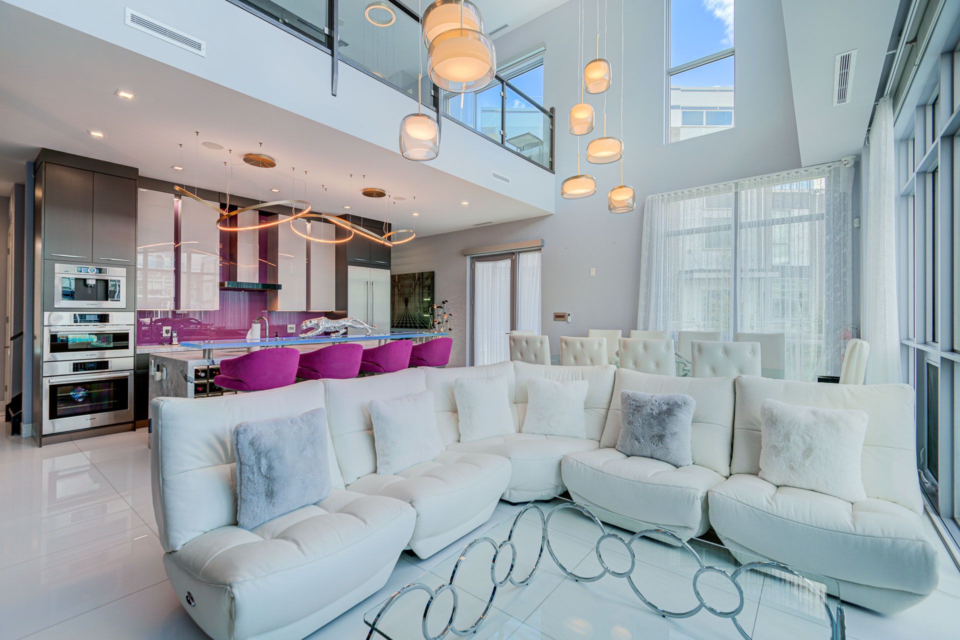 This show stopper Miami influenced town is sure to please. Located in the spectacular Friday Harbour Resort, this waterfront retreat boasts more than $750,000 in quality upgrades. The garage alone will impress! Complete with custom epoxy flooring, heat, custom LED coloured lights, fridge/freezer & T.V. with surround sound system. The lakefront deck will be the heart of your entertaining with an outdoor kitchen, custom gas fireplace, large open space for lounging, sunning, BBQing, also equipped with a sound system & your own private 40' boat dock with electricity. The interior is breath taking with 5 large bedrooms & 4 bathrooms. The primary suite is complete with a walk in closet and a luxurious spa like ensuite. The show doesn't stop here... there is an in-suite elevator, a third floor butler station, all bathrooms are custom designed with exquisite CIOT tile and tricked out with LED coloured rain showers. No detail has been missed. This home is truly something to behold.Utilities extra, Lifestyle investment: club fee $460.43/month. Resort fee $6,295.12/year. Buyer to pay 2% plus hst entry fee to Friday Harbour