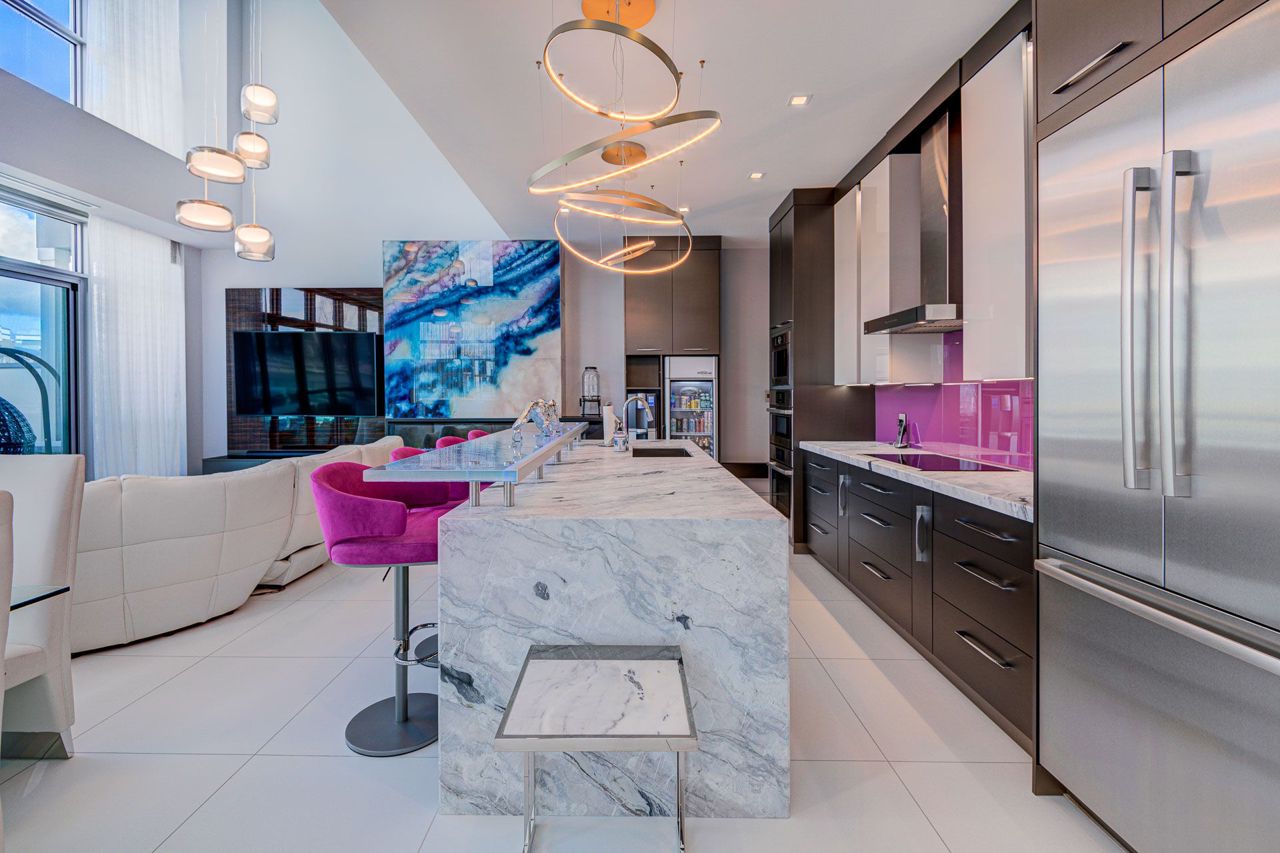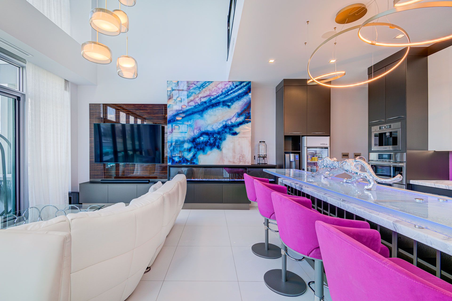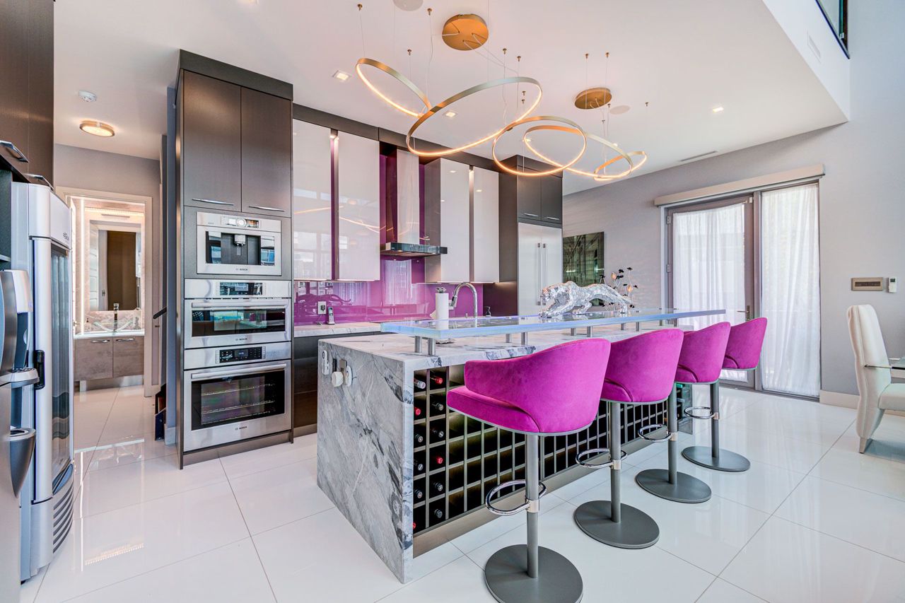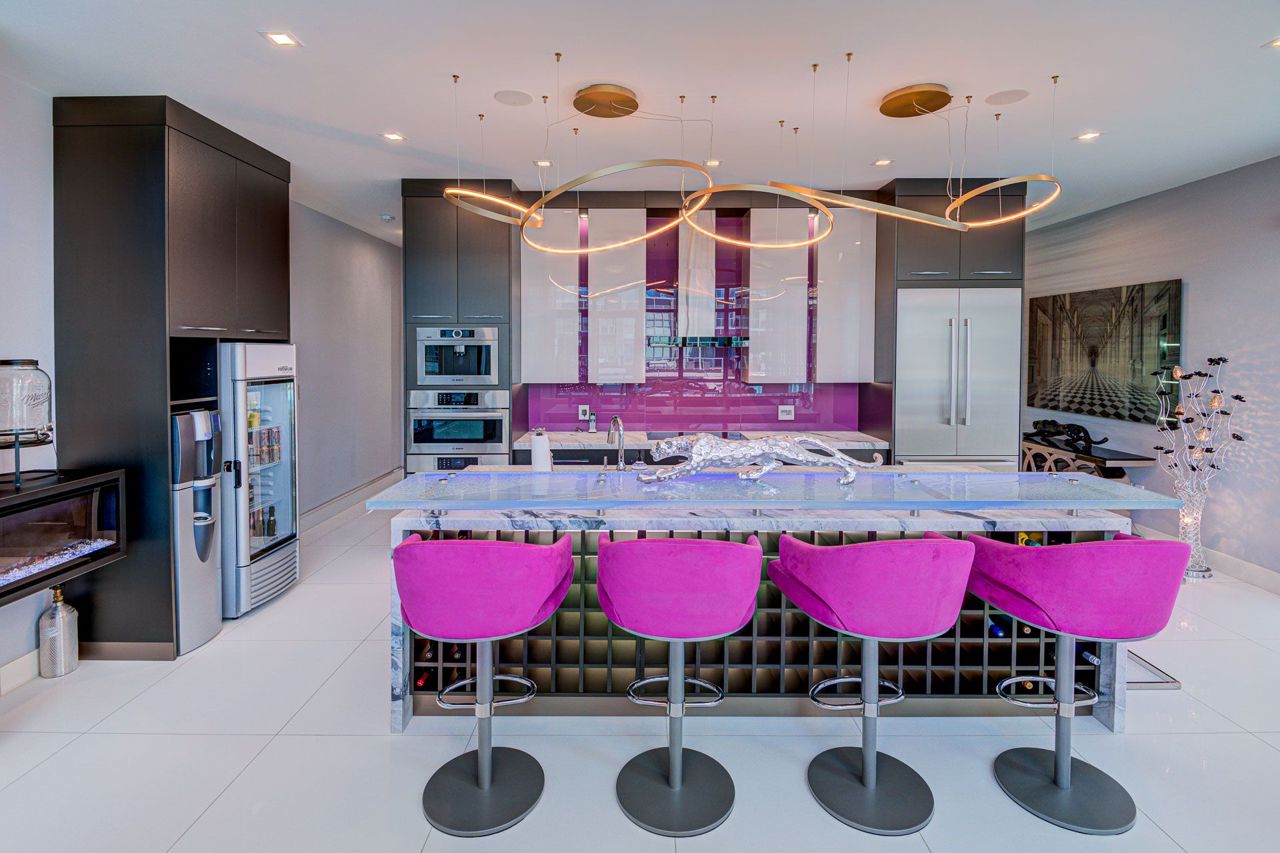 This show stopper Miami influenced town is sure to please. Located in the spectacular Friday Harbour Resort, this waterfront retreat boasts more than $750,000 in quality upgrades. The garage alone will impress! Complete with custom epoxy flooring, heat, custom LED coloured lights, fridge/freezer & T.V. with surround sound system. The lakefront deck will be the heart of your entertaining with an outdoor kitchen, custom gas fireplace, large open space for lounging, sunning, BBQing, also equipped with a sound system & your own private 40' boat dock with electricity. The interior is breath taking with 5 large bedrooms & 4 bathrooms. The primary suite is complete with a walk in closet and a luxurious spa like ensuite. The show doesn't stop here... there is an in-suite elevator, a third floor butler station, all bathrooms are custom designed with exquisite CIOT tile and tricked out with LED coloured rain showers. No detail has been missed. This home is truly something to behold.Utilities extra, Lifestyle investment: club fee $460.43/month. Resort fee $6,295.12/year. Buyer to pay 2% plus hst entry fee to Friday Harbour