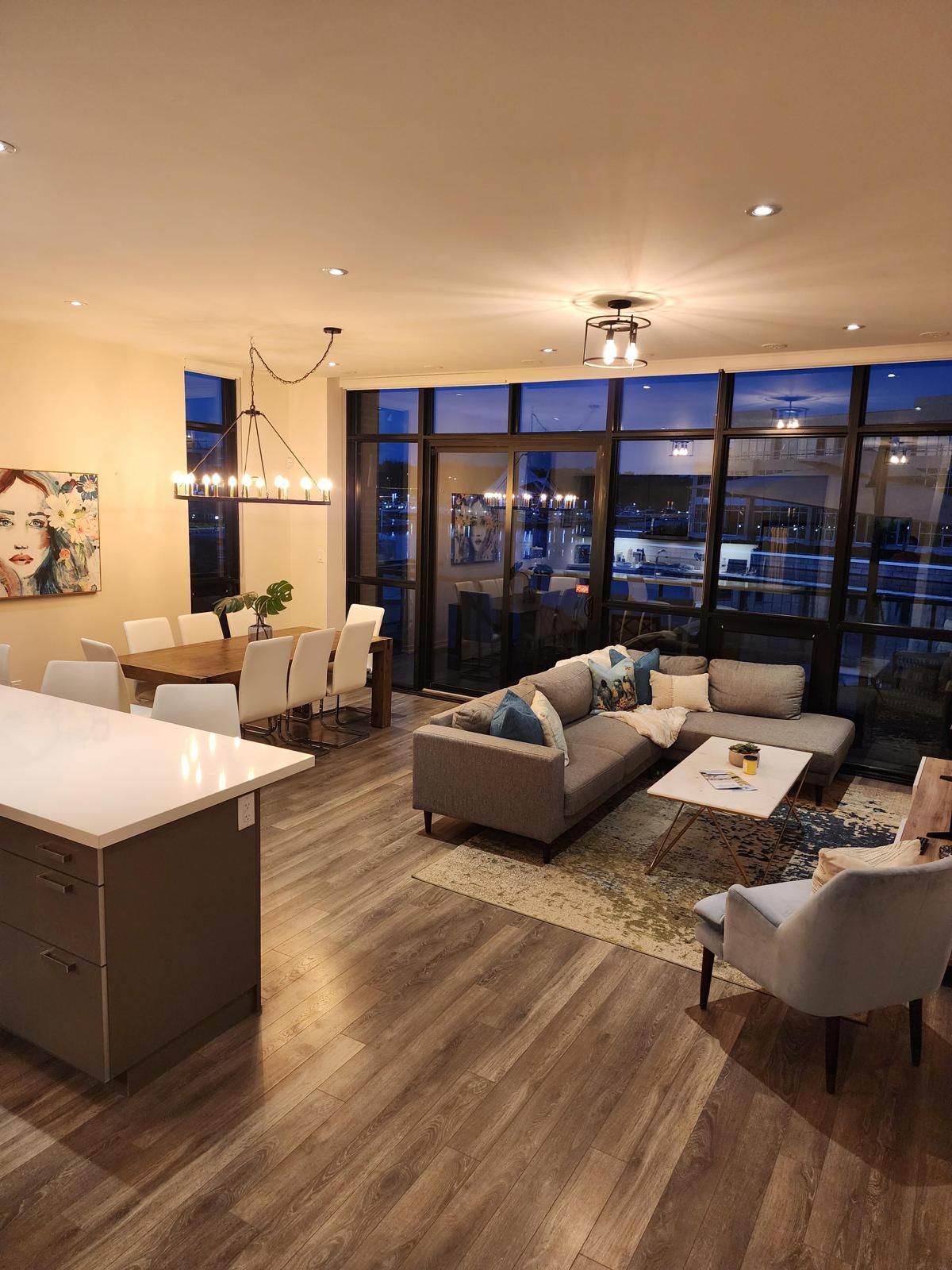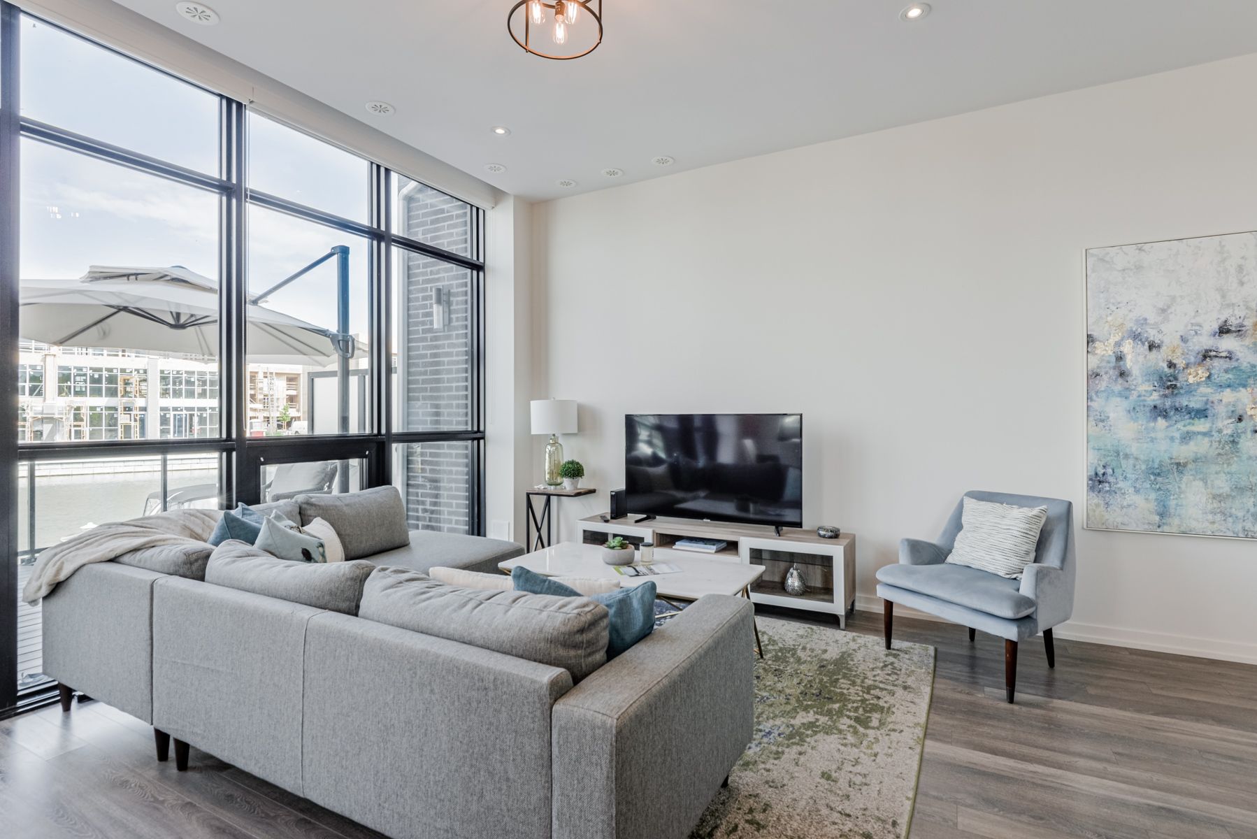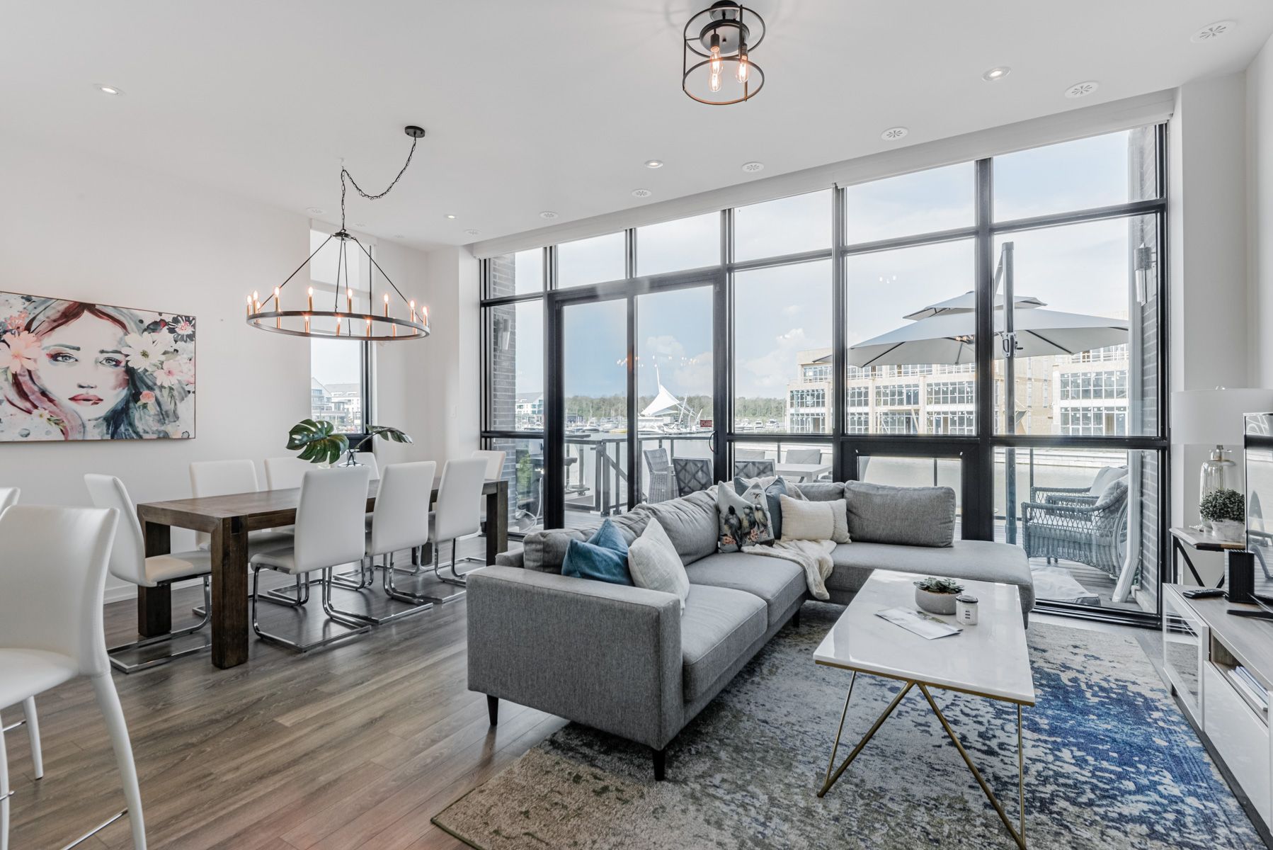 Views! Views! views! Come stay And Enjoy The Best views From This Corner Unit Townhouse At Friday Harbour Resort! Both The Main Floor And The Master Bedroom/DEN Have Floor To Celling Windows Enjoy An Unobstructed View Of The Water And Stunning Friday Harbour Boardwalk. Right Next To The Lake Club, Pool, Gym, Spa, Restaurants & Shopping! Home is Fully- Furnished & Tastefully Decorated. Over 1800 sqft (3 Bedrooms + Den), Large Deck With Available Boat Slip! 2 Levels Sitting /Area With W/O Balcony. Laundry And 2 Car- Garage. Open Water On Both sides Of The Home. Only 45 mins Drive From GTA! Be Right By The Action!Unlimited Free Internet !
