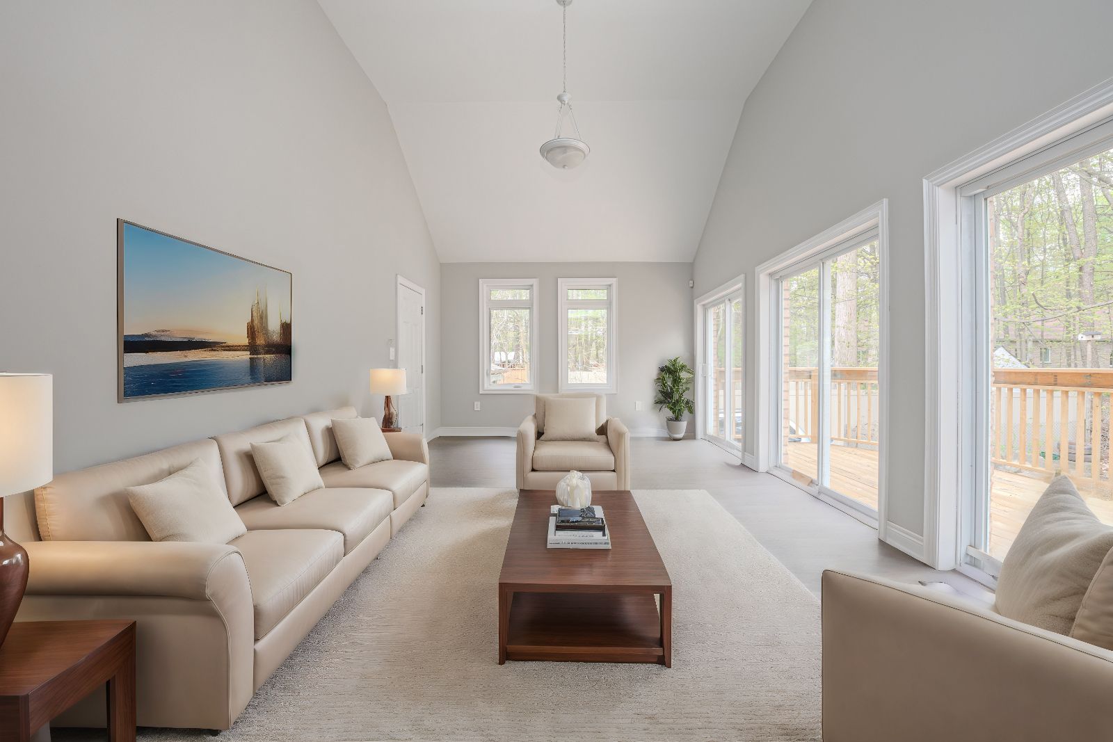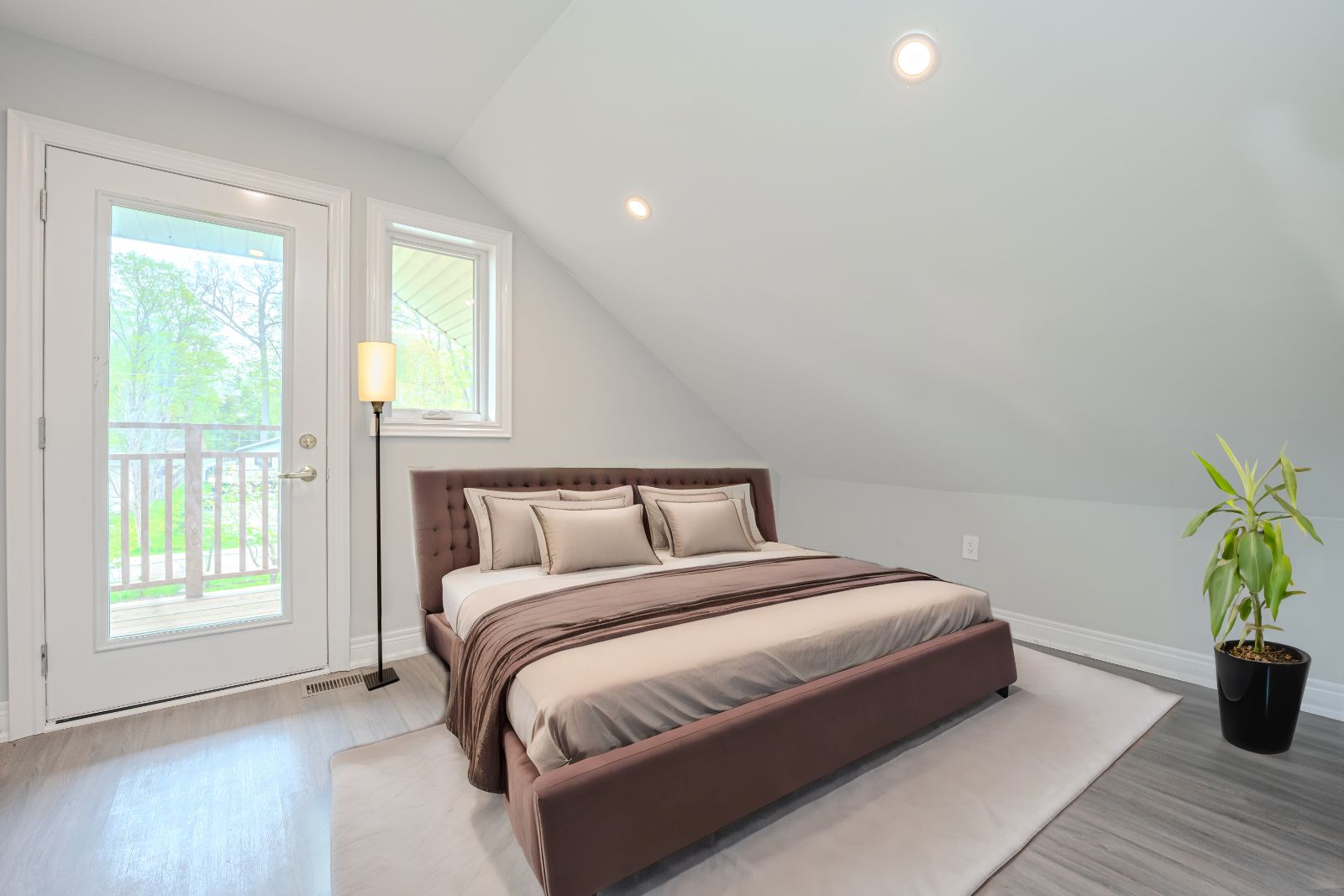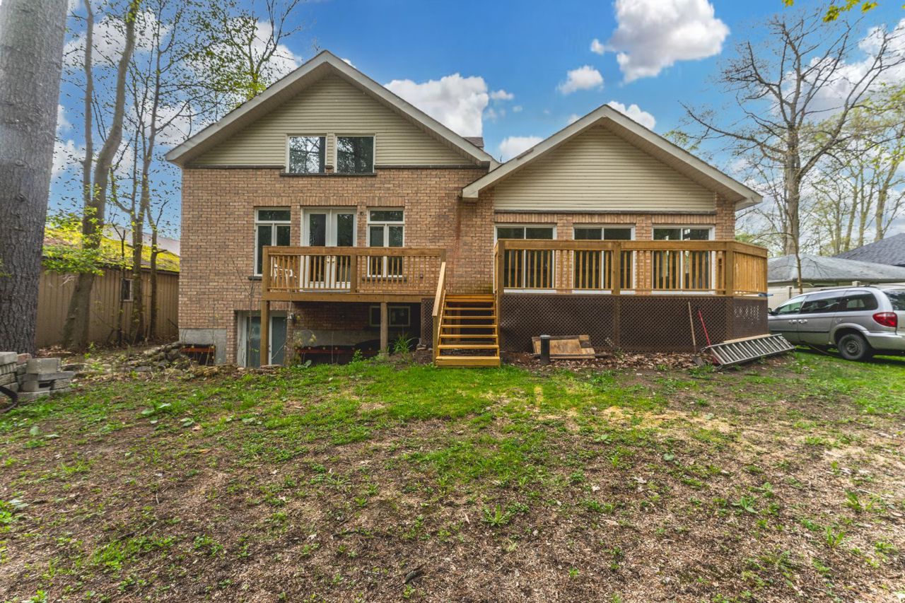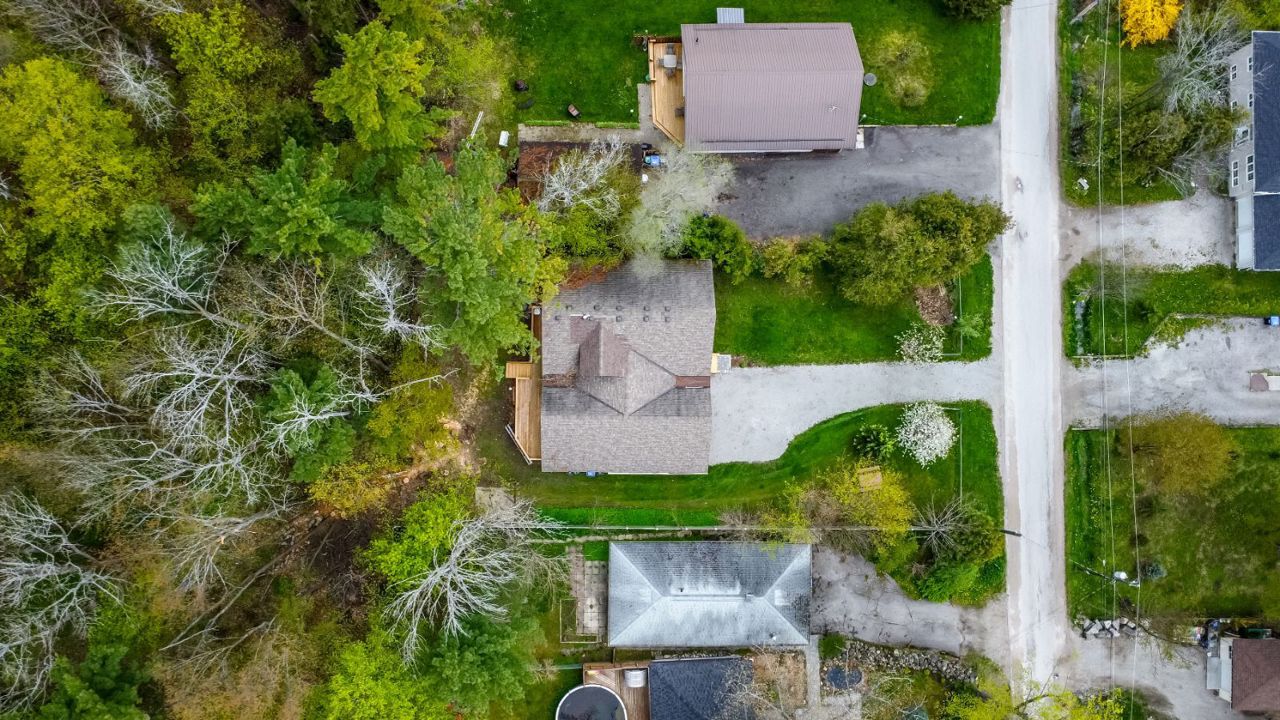 MODERNIZED CHALET-STYLE HOME ON A PRIVATE LOT IN QUIET COMMUNITY, CLOSE TO AMENITIES! Nestled within a picturesque cottage village on a tranquil, low-traffic street, this gorgeous chalet-style home offers the perfect blend of serenity and convenience. Located just steps away from the tranquil shores of Lake Simcoe, as well as a local yoga studio and diner. Barrie's amenities are in close proximity, while Friday Harbour is just a short drive, offering gourmet dining, golf, and events. Golf enthusiasts will appreciate the short drive to prestigious courses like Big Bay Point Golf & Country Club, The Nest Golf Club, and Allandale Golf Course. Families will appreciate the fully fenced front yard, while the private backyard, with its lush forest backdrop, offers a serene retreat. Parking is plentiful with an ample driveway and a spacious insulated and drywalled double car garage featuring high ceilings and both outside and inside entry points. The stunning kitchen boasts elegant quartz countertops, white cabinets, and stainless steel appliances. The living room features high ceilings and a triple sliding door walkout. Additional highlights include a charming front covered porch, a functional and spacious front foyer, and a convenient main-floor bedroom. The unspoiled basement with a walk-out and rough-in for laundry offers endless possibilities for customization. The well and septic system is located in the front yard, with the potential to add a pool in the backyard. Don't miss the opportunity to own this stunning #HomeToStay in a peaceful location just minutes from all amenities!