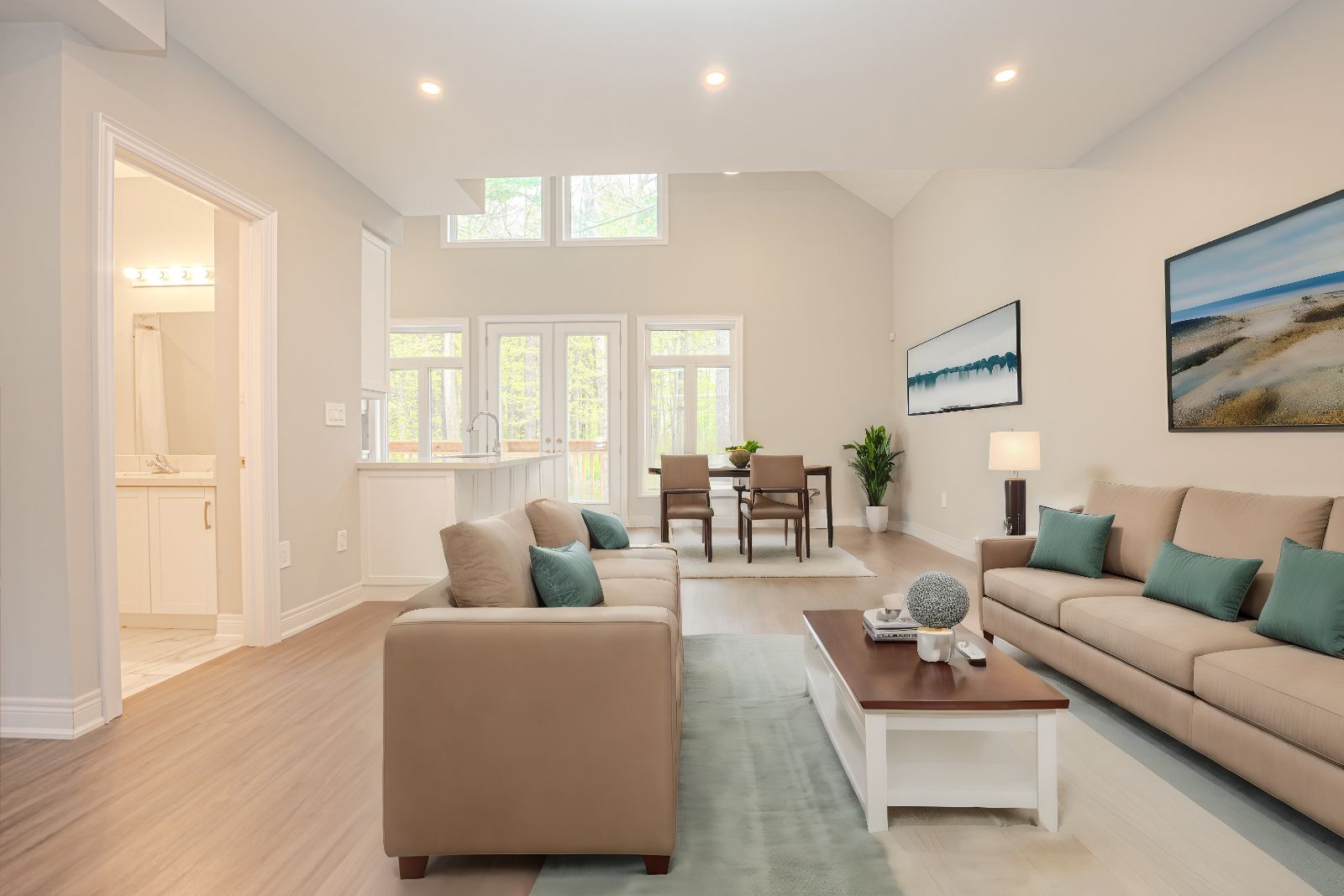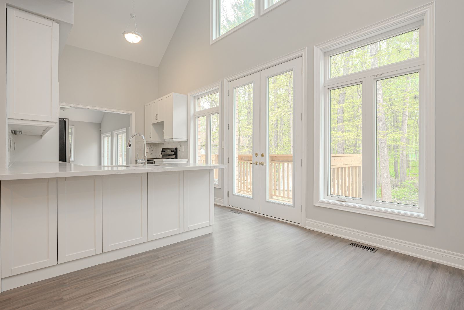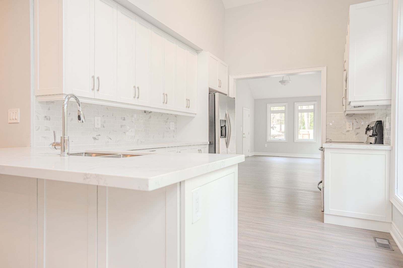 MODERNIZED CHALET-STYLE HOME ON A PRIVATE LOT IN QUIET COMMUNITY, CLOSE TO AMENITIES! Nestled within a picturesque cottage village on a tranquil, low-traffic street, this gorgeous chalet-style home offers the perfect blend of serenity and convenience. Located just steps away from the tranquil shores of Lake Simcoe, as well as a local yoga studio and diner. Barrie's amenities are in close proximity, while Friday Harbour is just a short drive, offering gourmet dining, golf, and events. Golf enthusiasts will appreciate the short drive to prestigious courses like Big Bay Point Golf & Country Club, The Nest Golf Club, and Allandale Golf Course. Families will appreciate the fully fenced front yard, while the private backyard, with its lush forest backdrop, offers a serene retreat. Parking is plentiful with an ample driveway and a spacious insulated and drywalled double car garage featuring high ceilings and both outside and inside entry points. The stunning kitchen boasts elegant quartz countertops, white cabinets, and stainless steel appliances. The living room features high ceilings and a triple sliding door walkout. Additional highlights include a charming front covered porch, a functional and spacious front foyer, and a convenient main-floor bedroom. The unspoiled basement with a walk-out and rough-in for laundry offers endless possibilities for customization. The well and septic system is located in the front yard, with the potential to add a pool in the backyard. Don't miss the opportunity to own this stunning #HomeToStay in a peaceful location just minutes from all amenities!