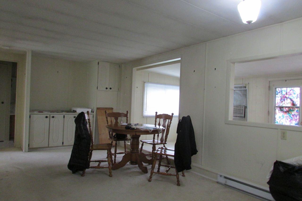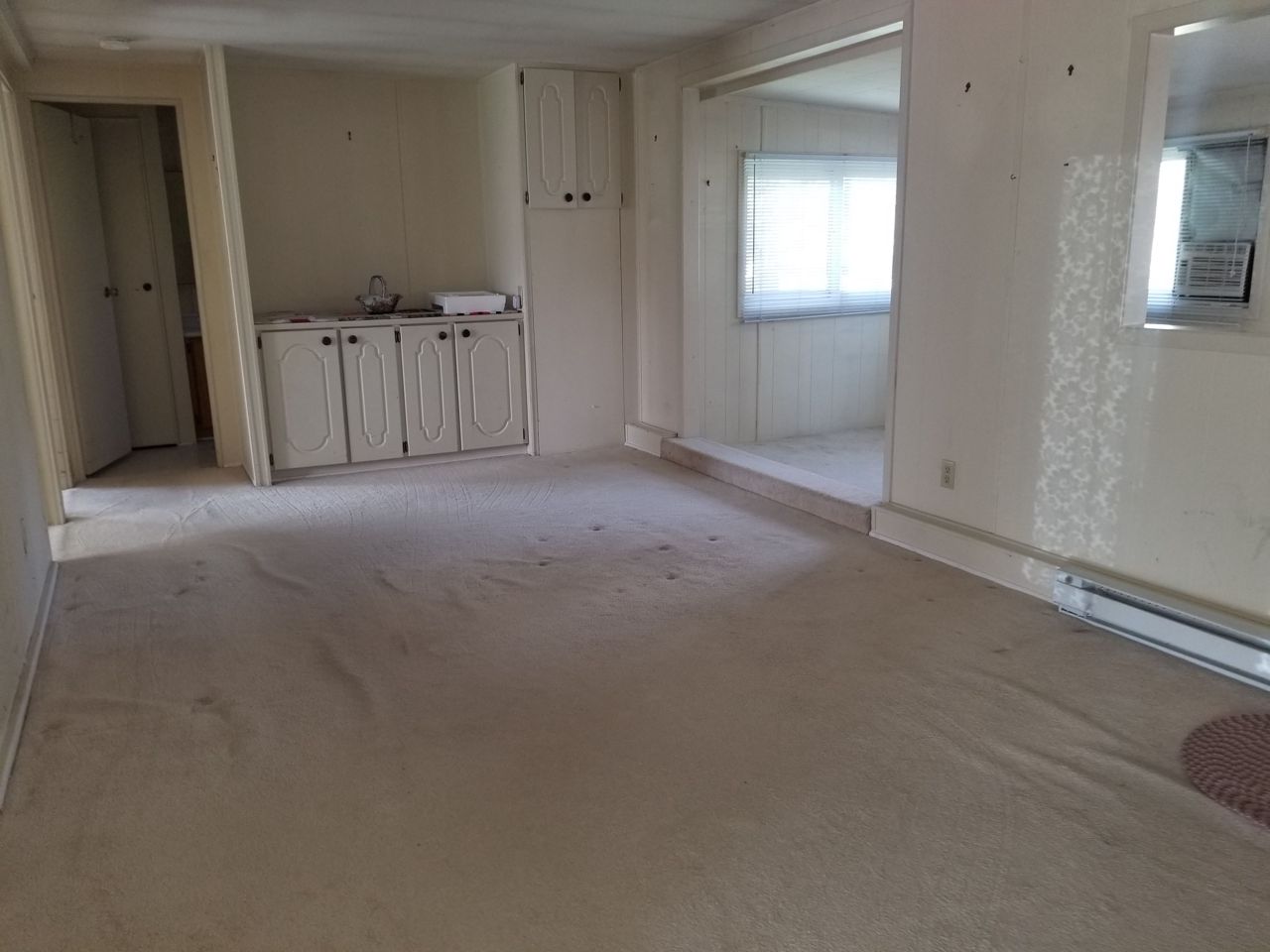 Home has a large living room with large bright windows looking out at the large front yard.Easy to replace the electric fireplace with a gas fireplace (gas at the road) Large dining room for those family formal visits or change into office and dining. Many pluses with the family room w/o to the green space for privacy Shingles 2015 Low fees to buyer $511.85 for the land rent per month. Large covered front deck Vinyl siding and windows
