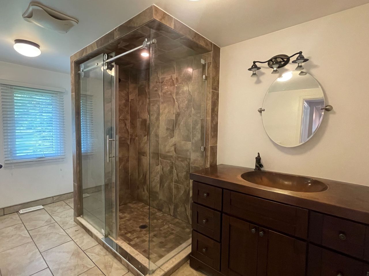 Enjoy the newer bathroom with a glass shower and custom-built copper vanity, adding elegance and luxury. Convenience is enhanced by the laundry room, making daily chores effortless.