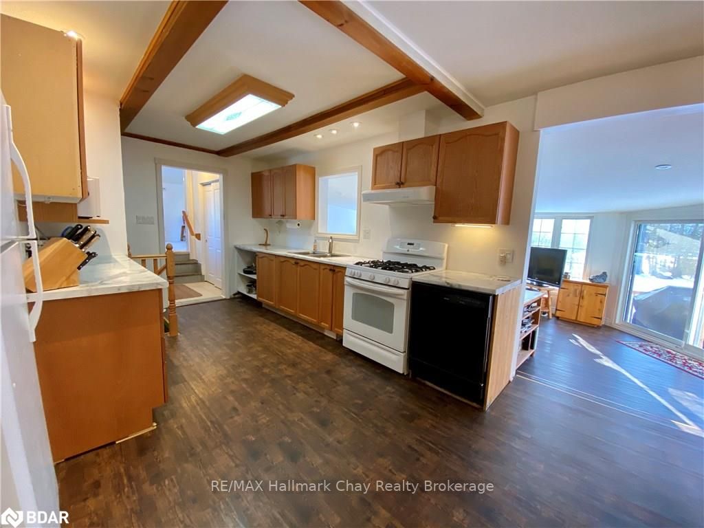 Great Space & Location. Sprawling Lakeside Bungalow On 130ft Wide Lot! Big Country Kitchen w/Gas Stove. Formal Dining Rm. Huge Sunken Family Rm w/Gas Fireplace & W/O To Deck. Private Master w/Sloped Ceilings & Gas Fireplace. Newer Vinyl Plank Flooring. Newer 8ft Patio Door. Some Newer Windows. Pot Lights. Freshly Painted. Partially Finished LL Rec Rm & Bath. Tons Of Parking & Storage. Quiet Dead-End Street. Just Minutes To Golfing, Marinas, Highway & The Lake. Excellent Opportunity!