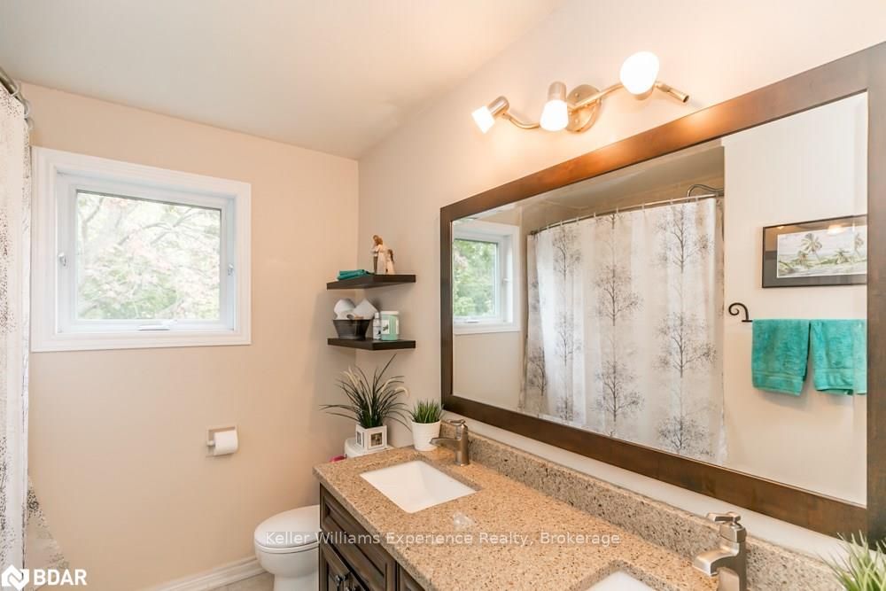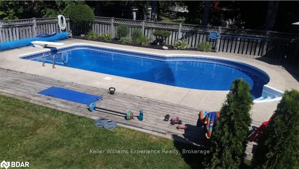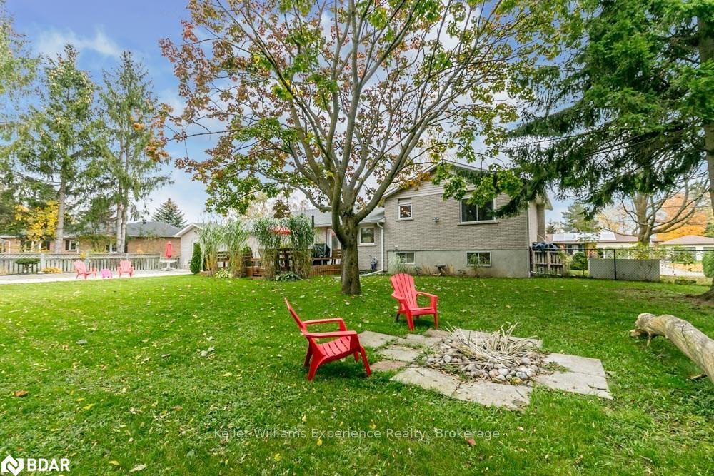 Welcome home to this stunning family home located on a quiet sought after cres. in Stroud . Large estate lots with parks and schools steps away . Fantastic curb appeal . Open concept ,updated split level . Large eat in Kitchen ,with updated cabinets and counters .Main floor Master with walkin ,gas fireplace and adjoining room as additional closet or office /gym . Family room with wood fireplace . Recent Wett inspection done . Backyard oasis with large in ground salt water pool , Decking and firept area . Perfect back yard to entertain or just relax by the pool . Country living in small town 5 min to all shopping and amenities. Great commuter location . Appliances included . New roof 2014 . Gas line to bbq ,stove and dryer .Total sq ft is aprox 2389. Pride of ownership shows !!!