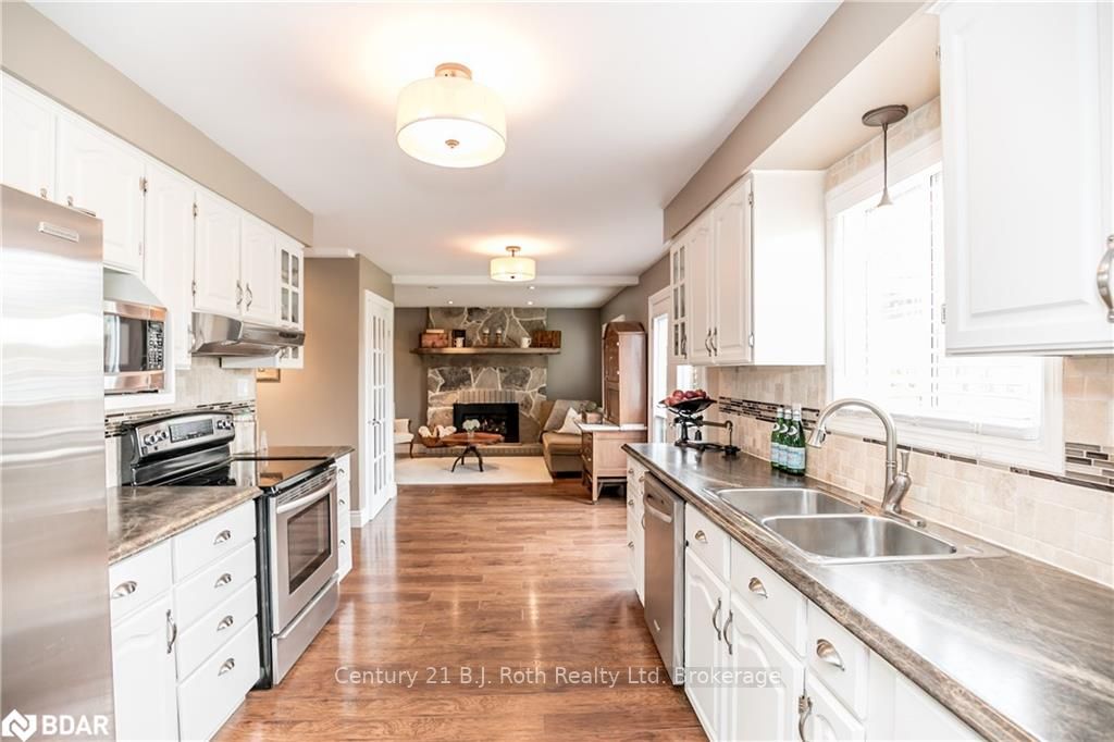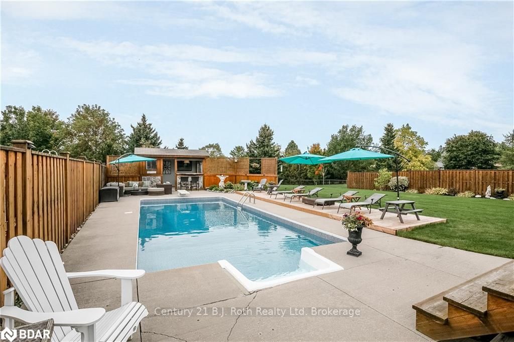 This beautifully updated and maintained home sits on a private 78 X 252ft lot in the desirable community of Stroud. The backyard is fully fenced and is an entertainers dream with a 14 x 32ft in-ground pool, large deck with gazebo, pool bar w/power, large garden shed, fire pit and horse shoe pits. The inside has been updated from top to bottom featuring, stone floors, pot lights, main floor laundry, 2 gas fireplaces, stainless steel appliances, master en-suite with glass shower and soaker jet tub. The rec room offers a modern live edge bar, plenty of room for a home theater and separate games area. Eavestrough and fascia 2018, pool liner 2019, garden shed 2018, inside entry from garage. Nothing left to do here except move in!
