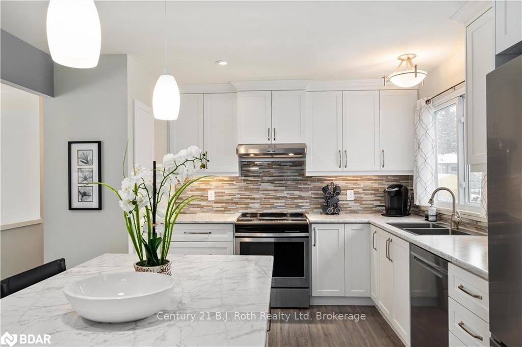 Welcome to the quaint town of Stroud! This one-owner home, has been impeccably cared for. Located on an impressive corner lot lined with trees, hedges and fencing. Tons of upgrades include: new kitchen, new appliances, stairs with panel moulding, new laminate flooring on main floor, updated main bathroom, new fixtures, ceilings re-done and new drop ceiling in basement. Other previous upgrades include: high efficiency furnace (2017), roof (2016), windows in kitchen and bedrooms (2013) and front door (2011). Situated across from walking path to brand new park with pickle ball and new gym equipment. Walking distance to fantastic public school and Montessori day care. Great commuter location, close to Go Train & Hwy 400, minutes from Innisfil Beach park. The perfect home and neighbourhood for raising your family!